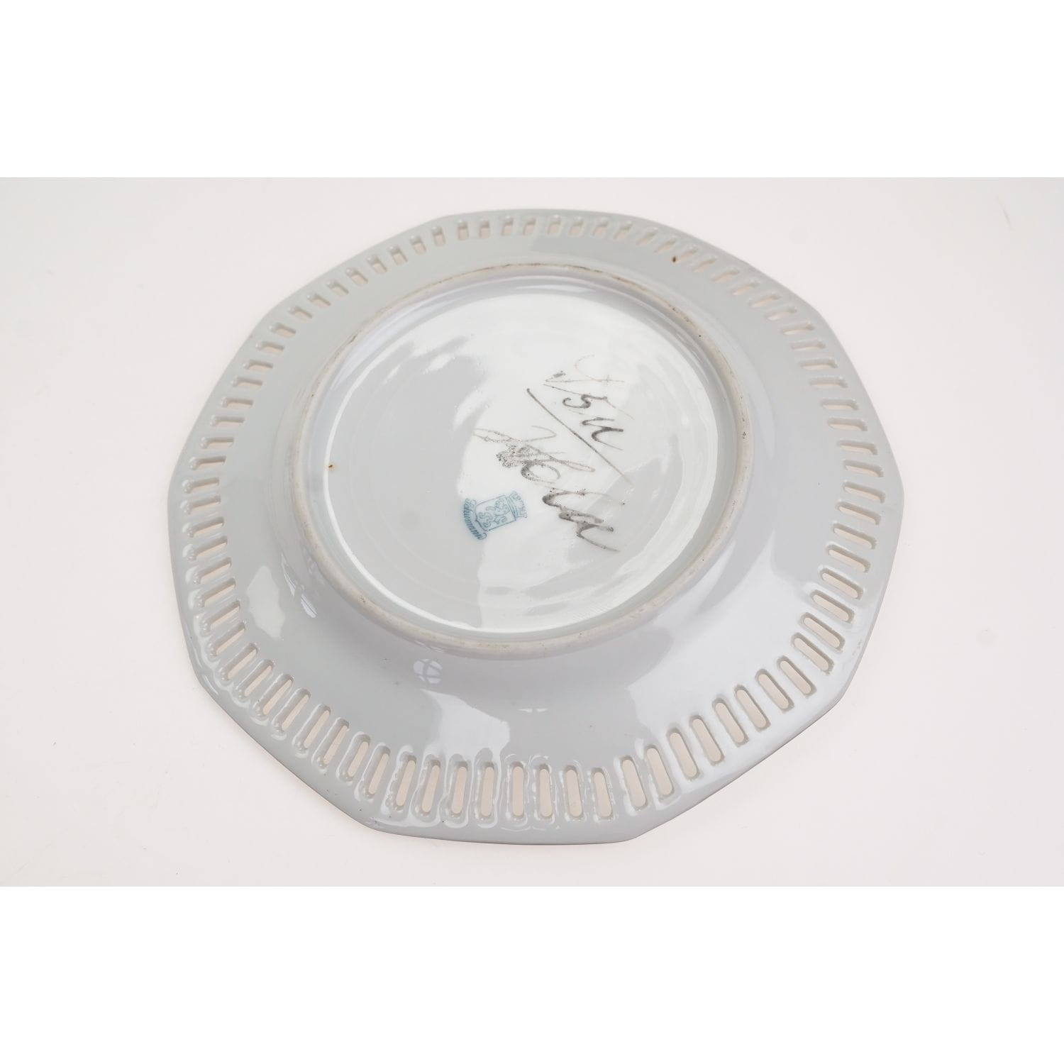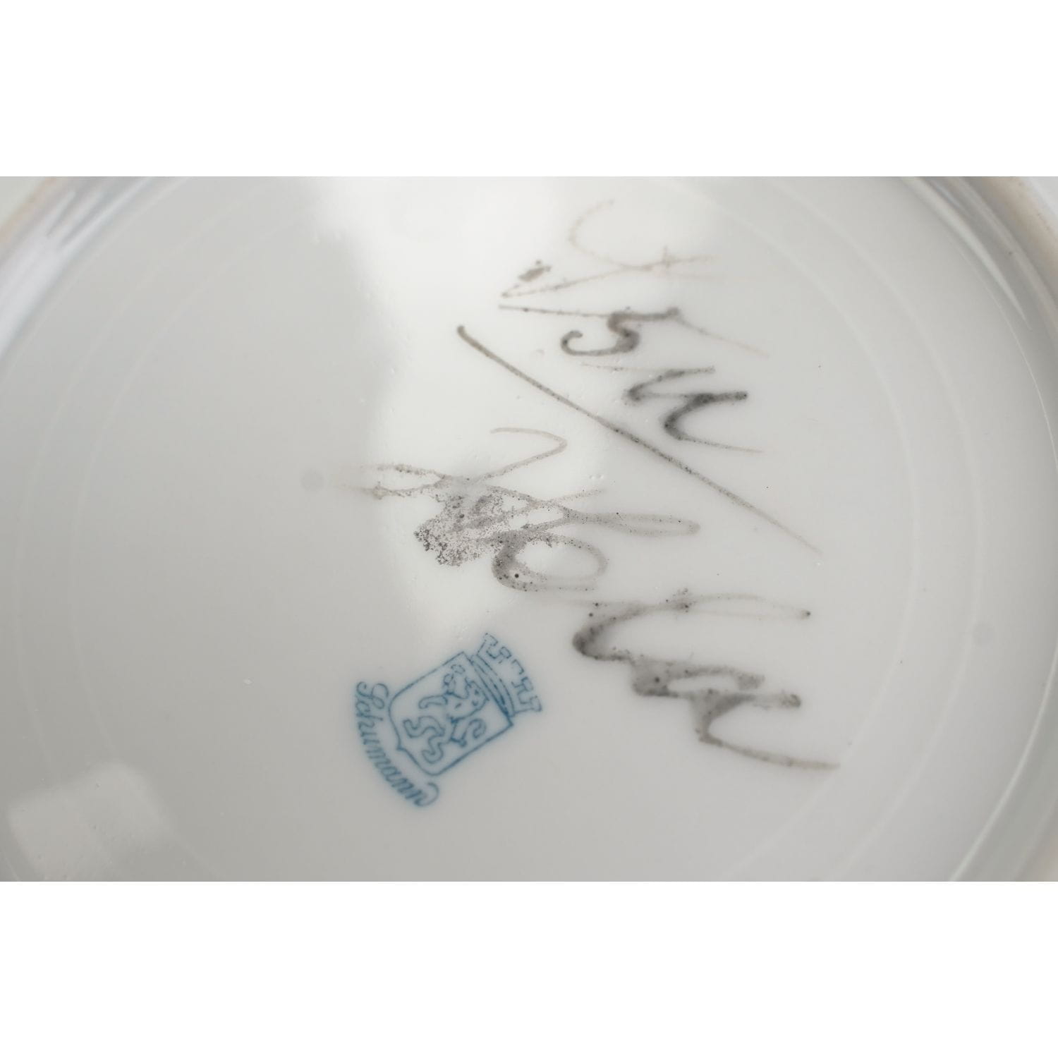 Pochodzą z Arzberg z Carl Schumann Porzellanfabrik. Sygnowane znakiem stosowanym od 1932 roku. Porcelana biała, dekorowana girlandami kwiatów i barwnym bukietem na środku lustra i ażurkami na kołnierzu, które podkreślono złoceniami.