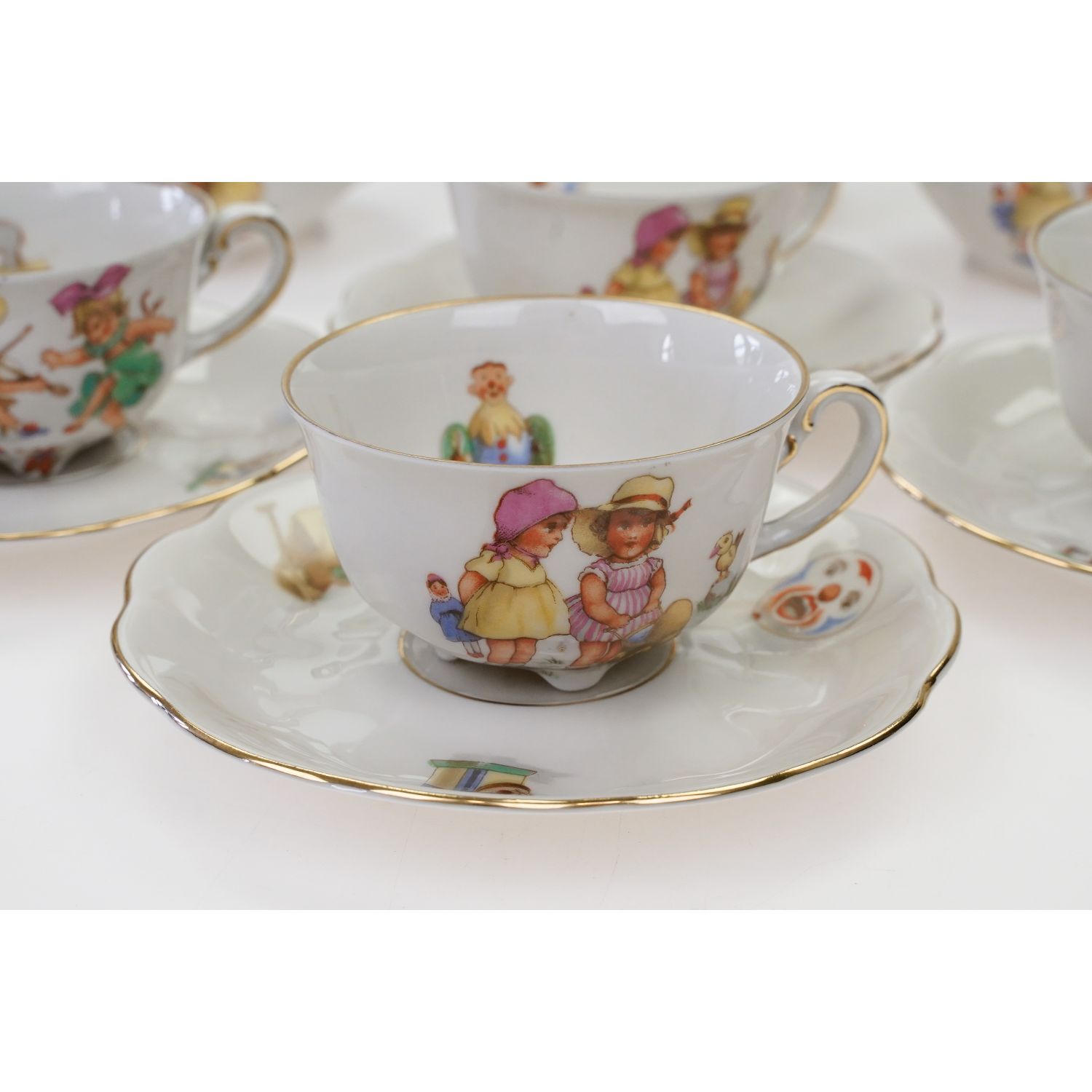 Pochodzi z Schwarzenhammer z Schumann & Schreider Porzellanfabrik Schwarzenhammer. Z nazwą fasonu Charlotte, który jest identyczny jak sztandarowy wyrób z Jaworzyny Śląskiej (niem. Königszelt), z Porzellanfabrik Königszelt A.G. Nawet nazwa fasonu jest taka sama! Porcelana w odcieniu złamanej bieli. Naczynia osadzone na maleńkich, zgrabniutkich nóżkach z ładnymi uszkami, o ponadczasowej, eleganckiej formie. Wszystkie elementy ślicznie udekorowane dziecięcymi motywami. Nostalgiczne i słodkie równocześnie. Przy krawędziach i na uszkach bogate złocenia.