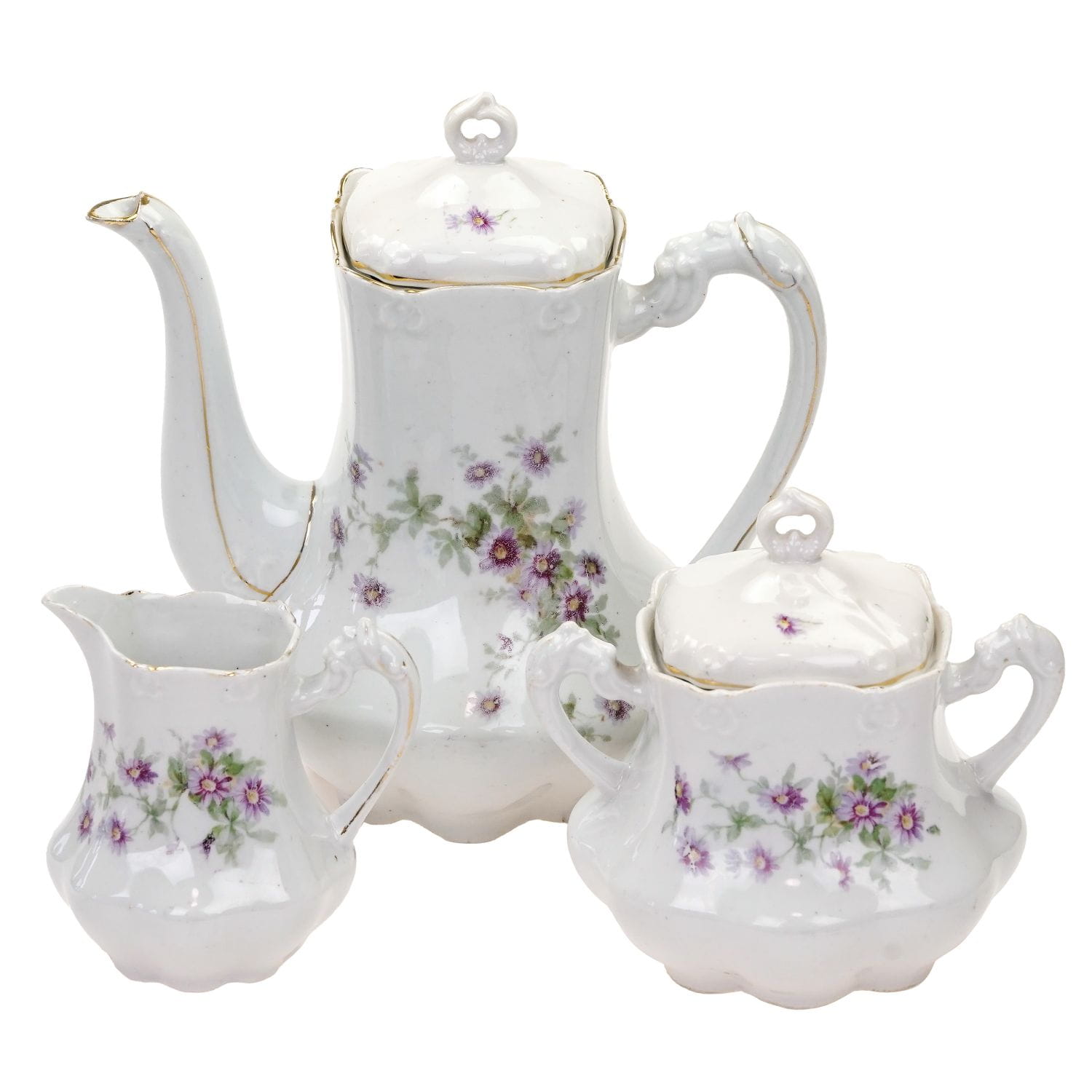 SECESJA GARNITUR DO KAWY FIOLETOWE KWIATUSZKI