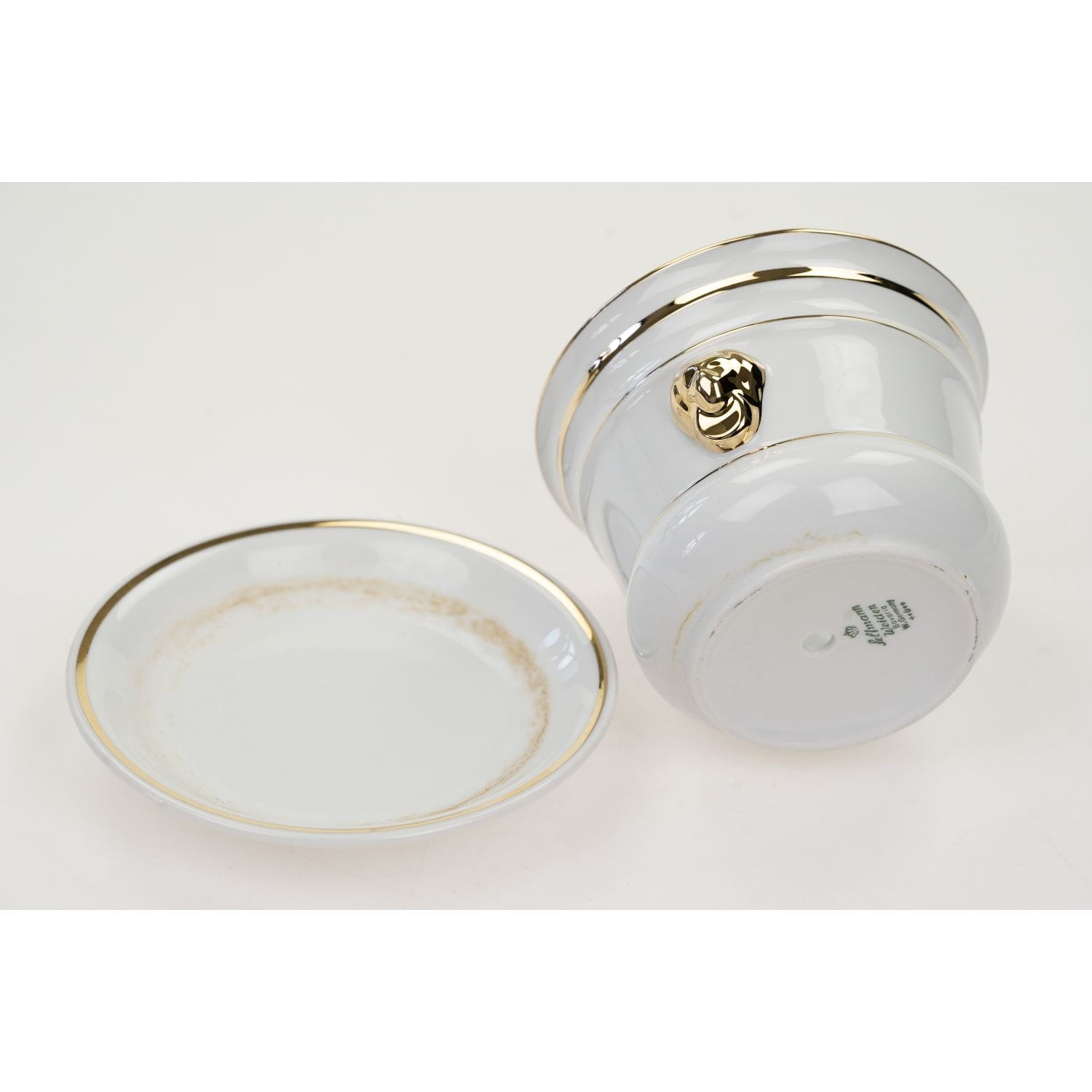 Stan oceniam na bardzo dobry=, spodek w troszkę gorszej kondycji, ma osad na szkliwie wynikające z normalnego użytkowania.