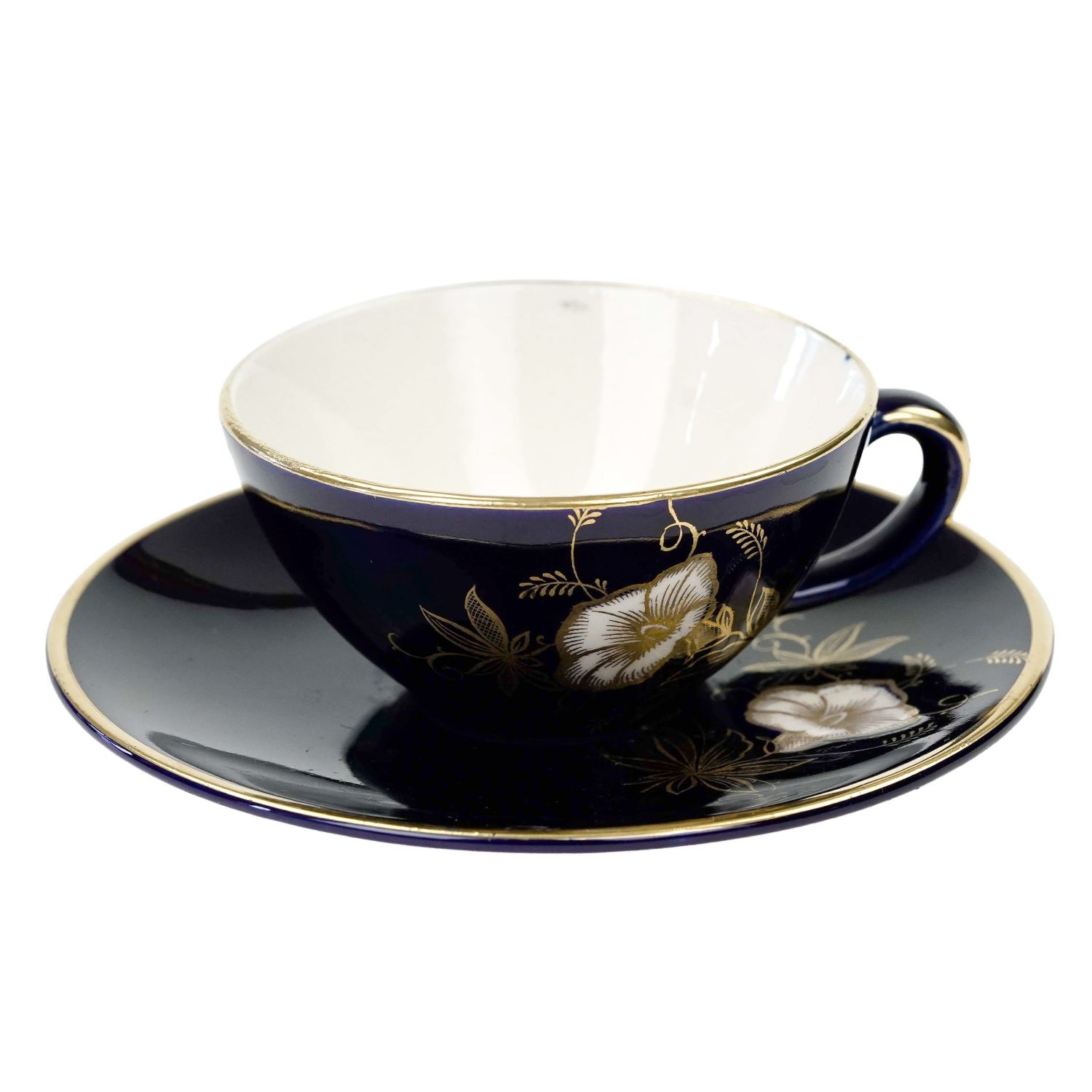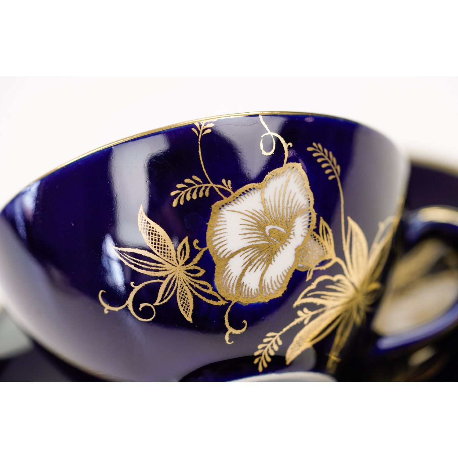 ŚLICZNA KOBALTOWA FILIŻANKA ZE SPODKIEM ZE ZŁOCENIAMI POWOJE
