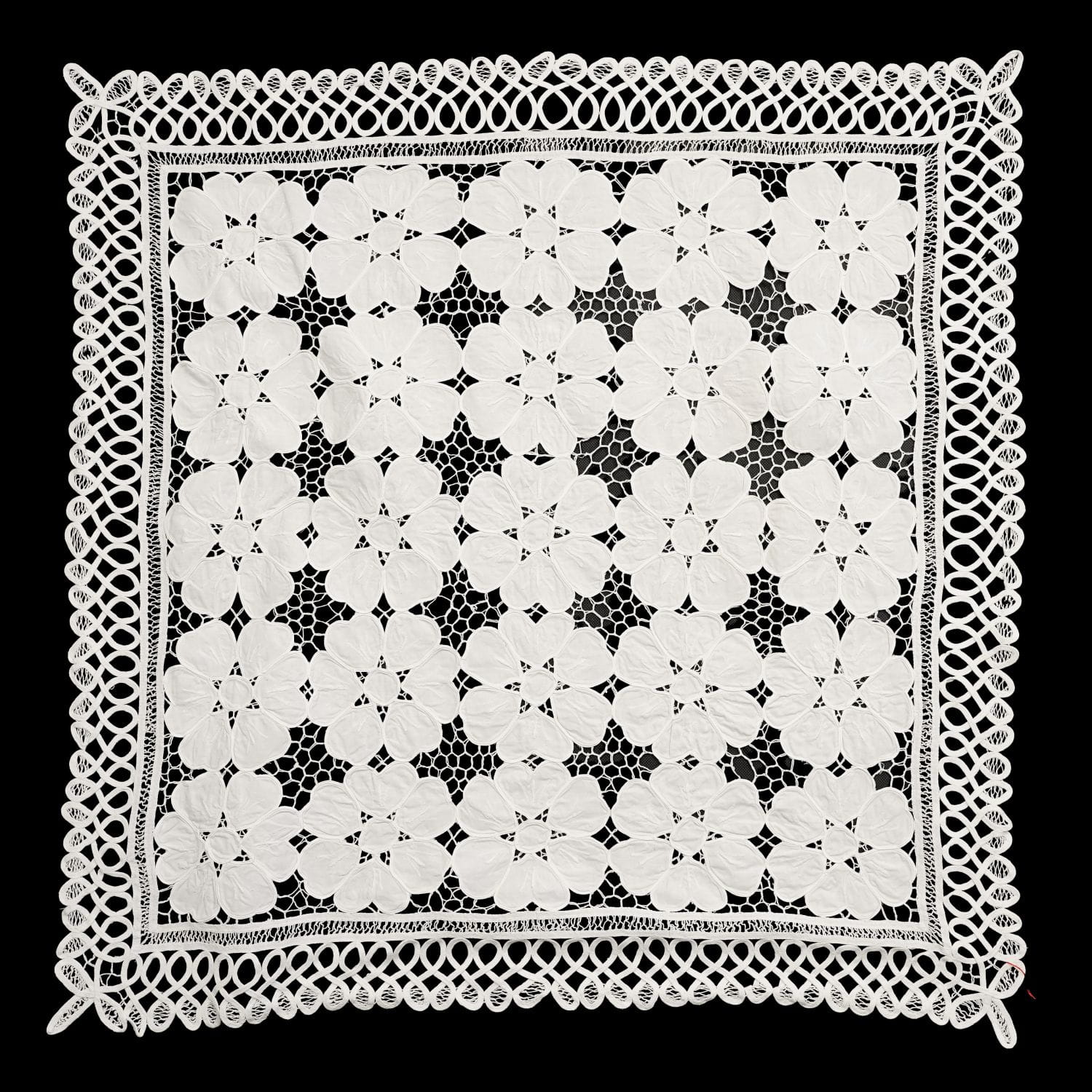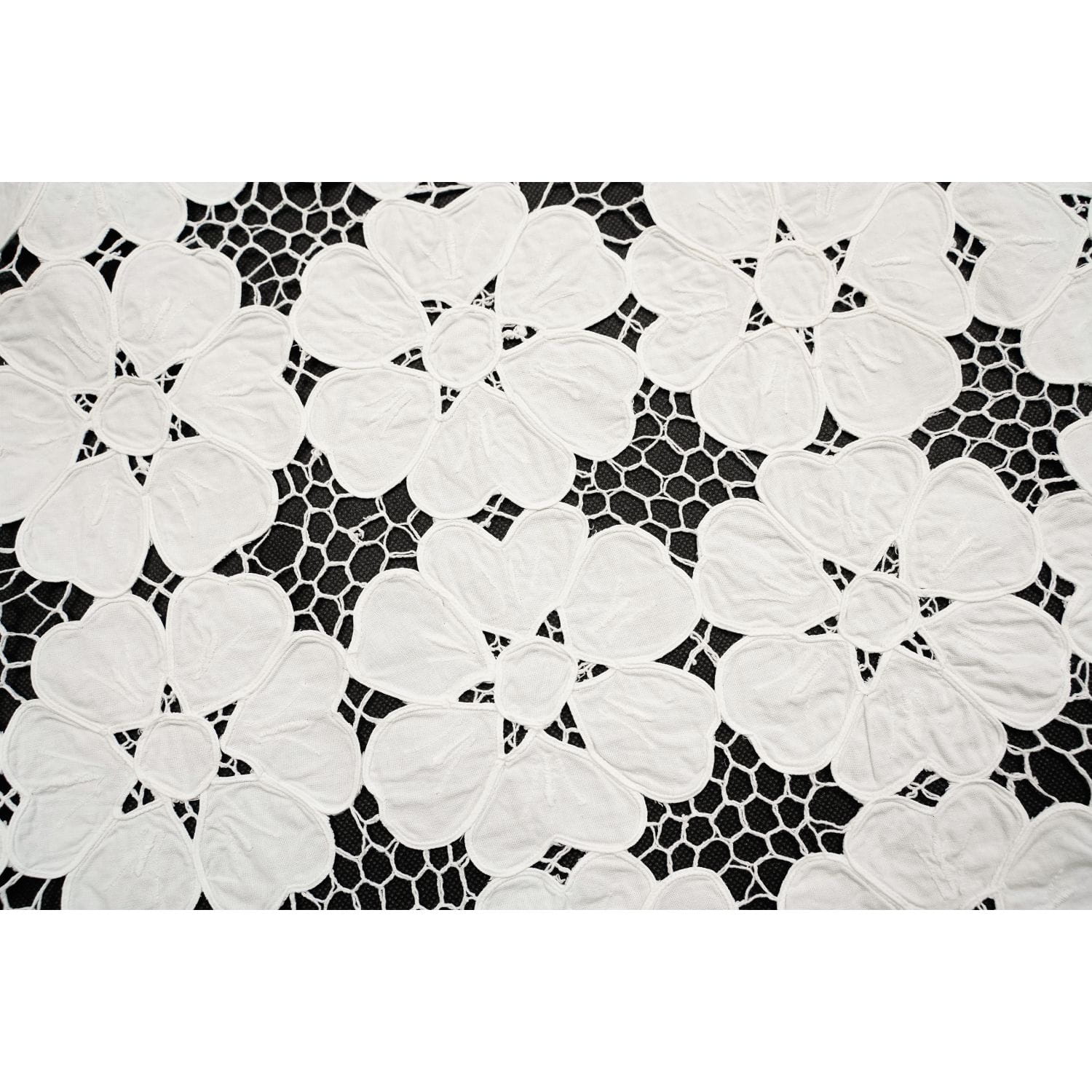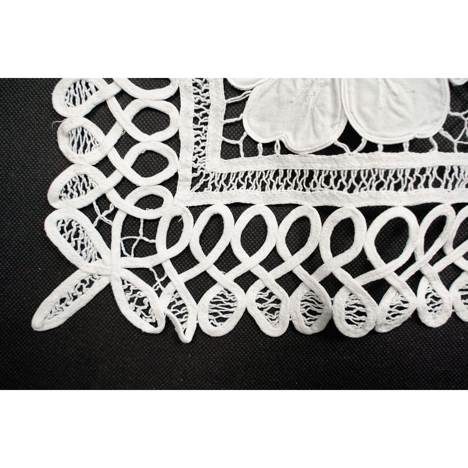 ŚLICZNY BIAŁY OBRUS DUŻE KWIATY I AŻURKI 74 X 74 CM