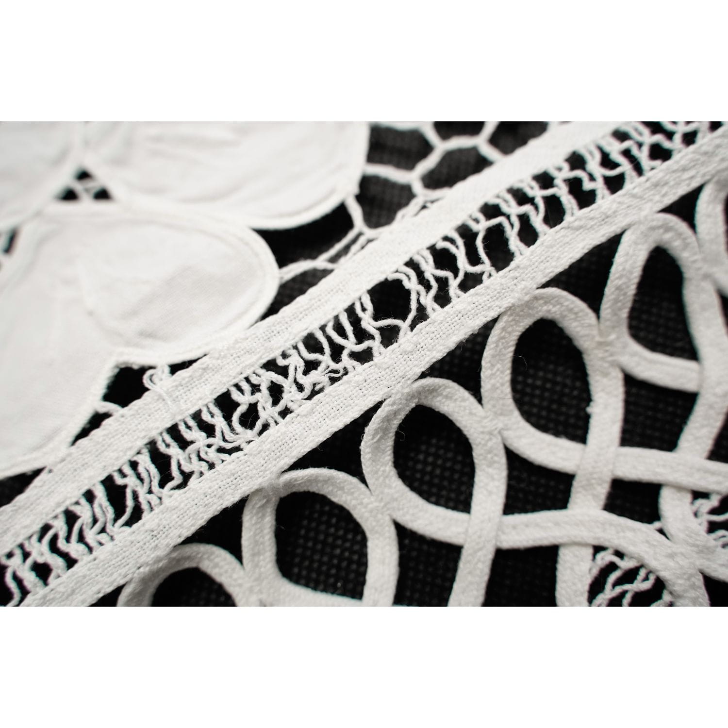 Biały, elegancki obrus w duże kwiaty z całą masą ażurków.