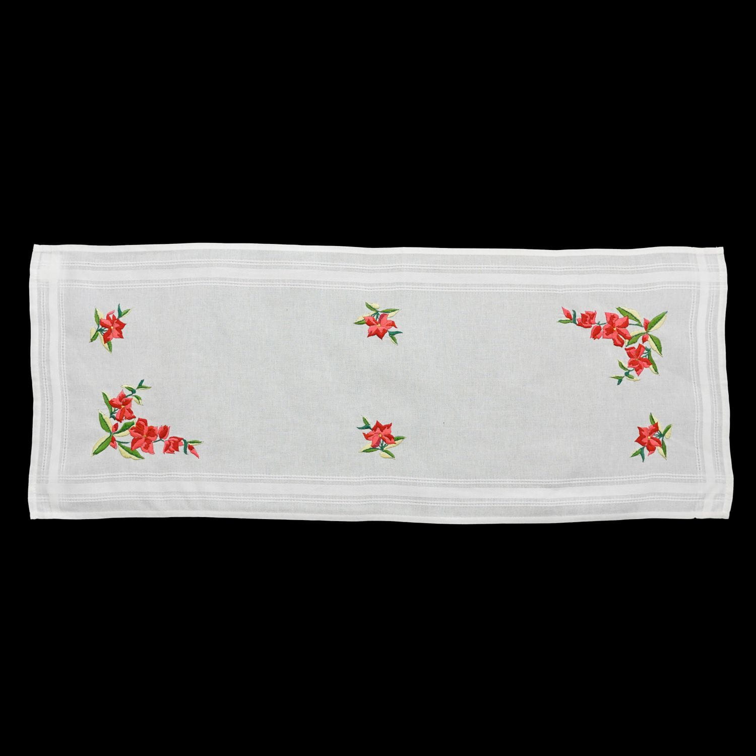 ŚLICZNY LAUFER BIEŻNIK SERWETA HAFT WYPUKŁY CZERWONE KWIATY 96 X 38 CM