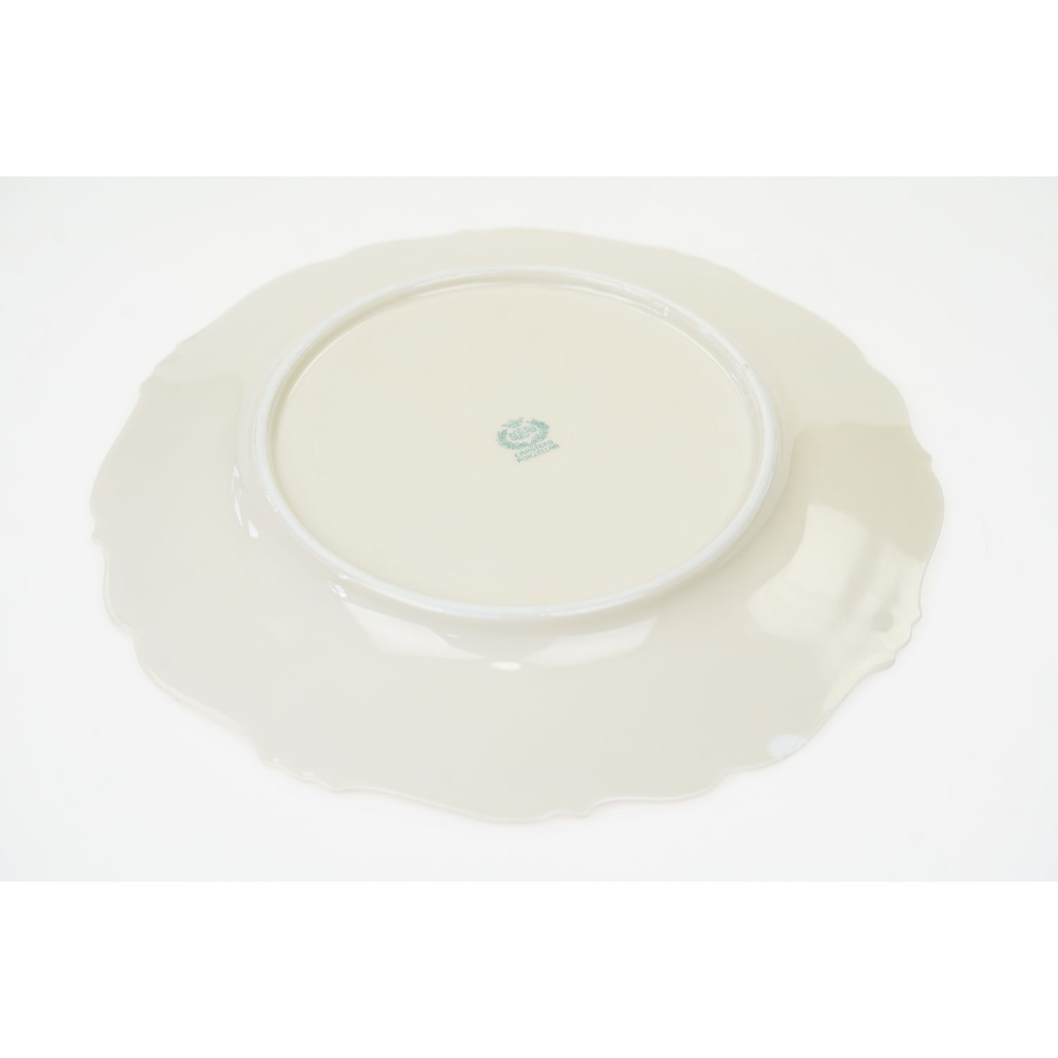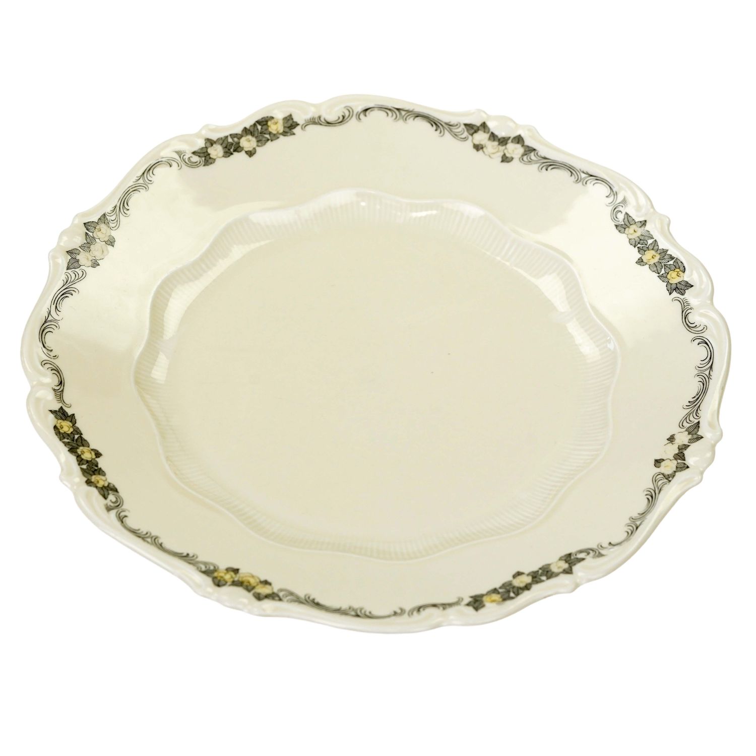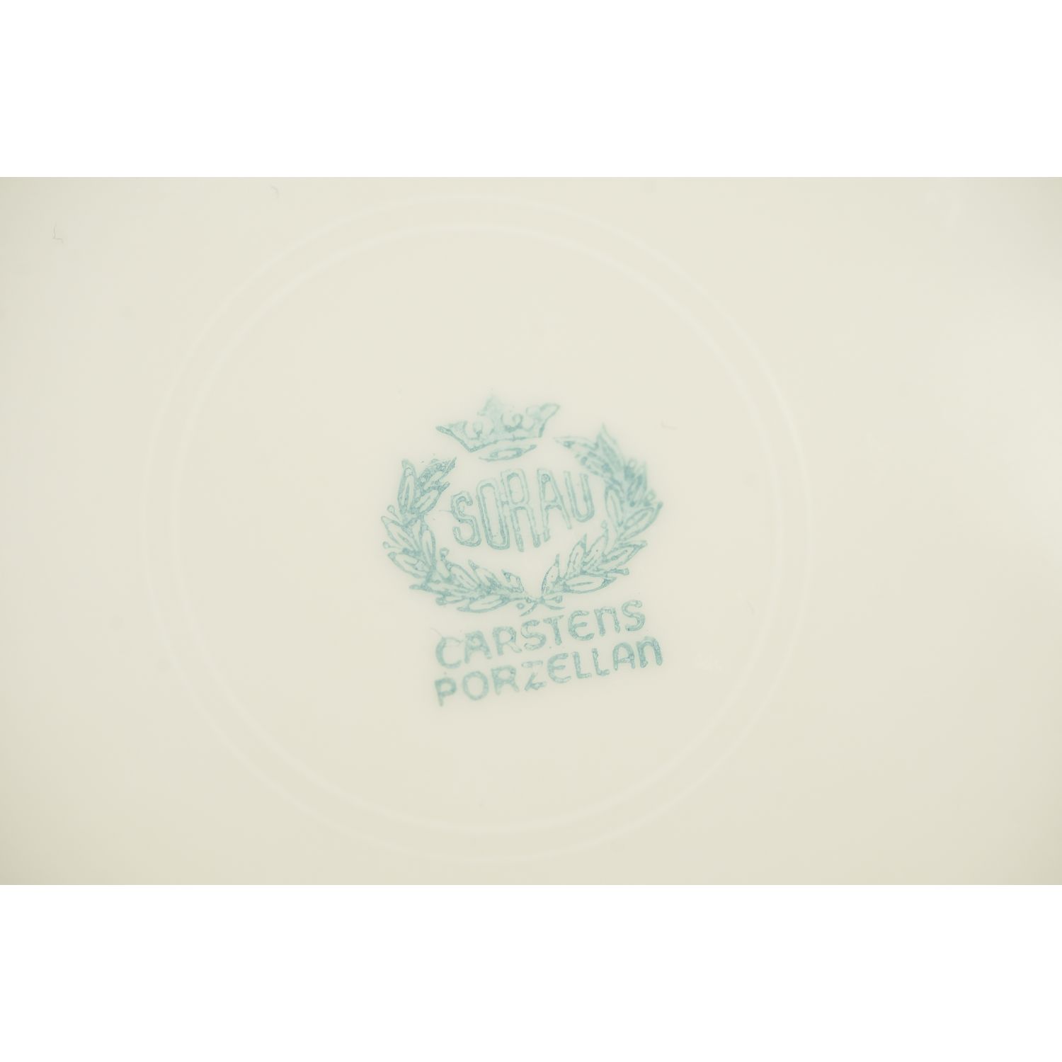 Pochodzi z C. & E. Carstens, Porzellanfabrik Sorau (Żary). Sygnowany znakiem stosowanym od 1925 roku, forma Kavalier. Porcelana w kolorze kości słoniowej, szkliwiona zdobiona reliefami typowymi dla tego modelu. Na kołnierzyku uroczy szlaczek żółtych różyczek z czarnymi listeczkami.
