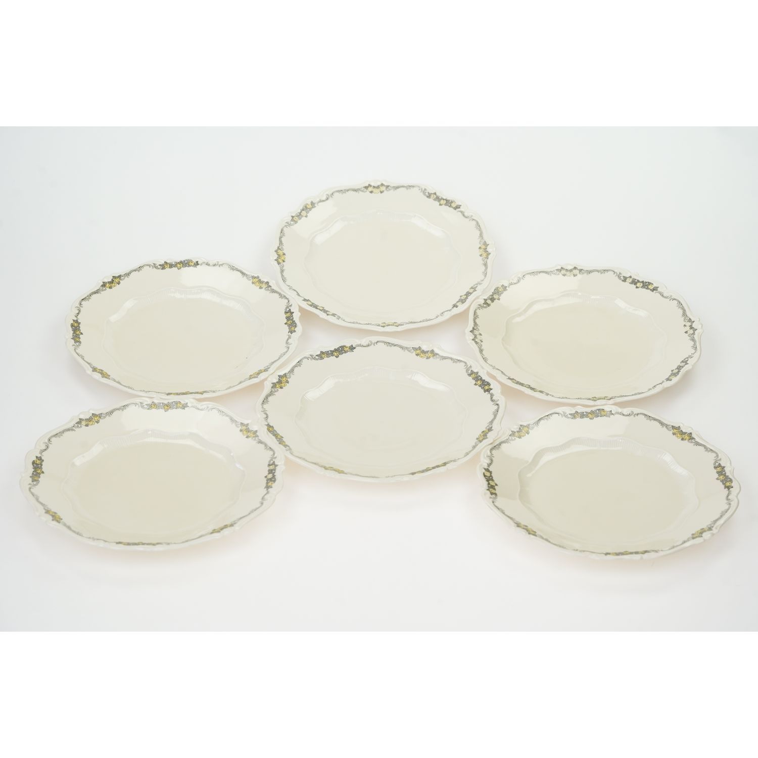 Komplet sześciu ślicznych talerzy obiadowych, płaskich, fason Kavalier.