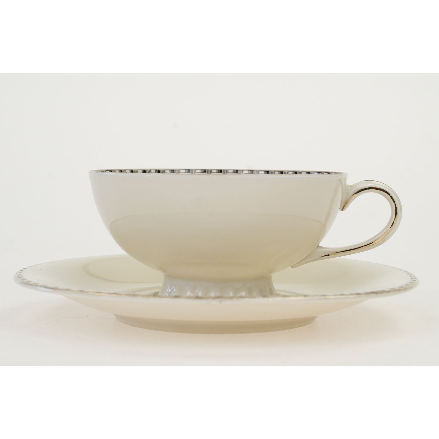 Urocza i elegancka, śląska filiżanka ze spodkiem w kolorze kości słoniowej.