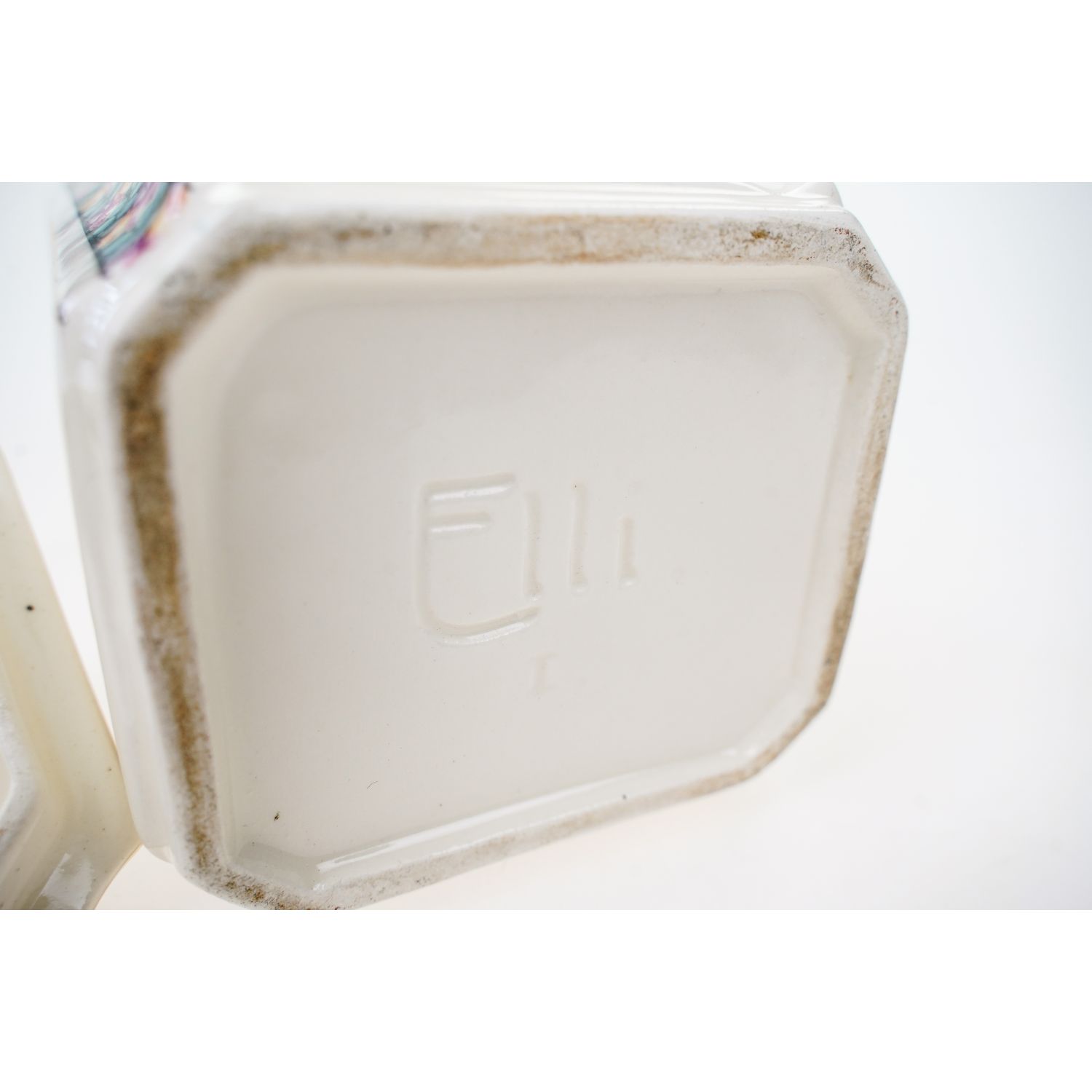Sygnowany wyciskiem w masie z napisem "Elli". Porcelana w kolorze kremowym. Od frontu czarny napis w języku niemieckim z napisem "Gries". Całości dopełnia bukiet pięknych róż i złocenia na konturach.