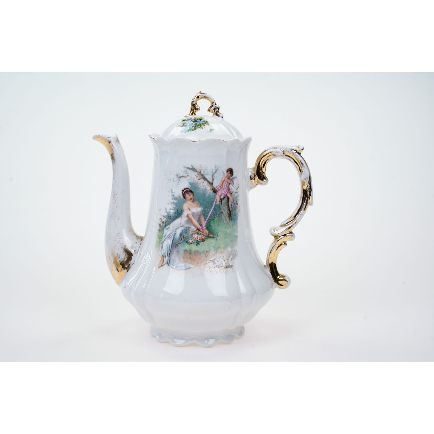 STARY SECESYJNY DZBAN DO KAWY Z NINFĄ I AMORKIEM