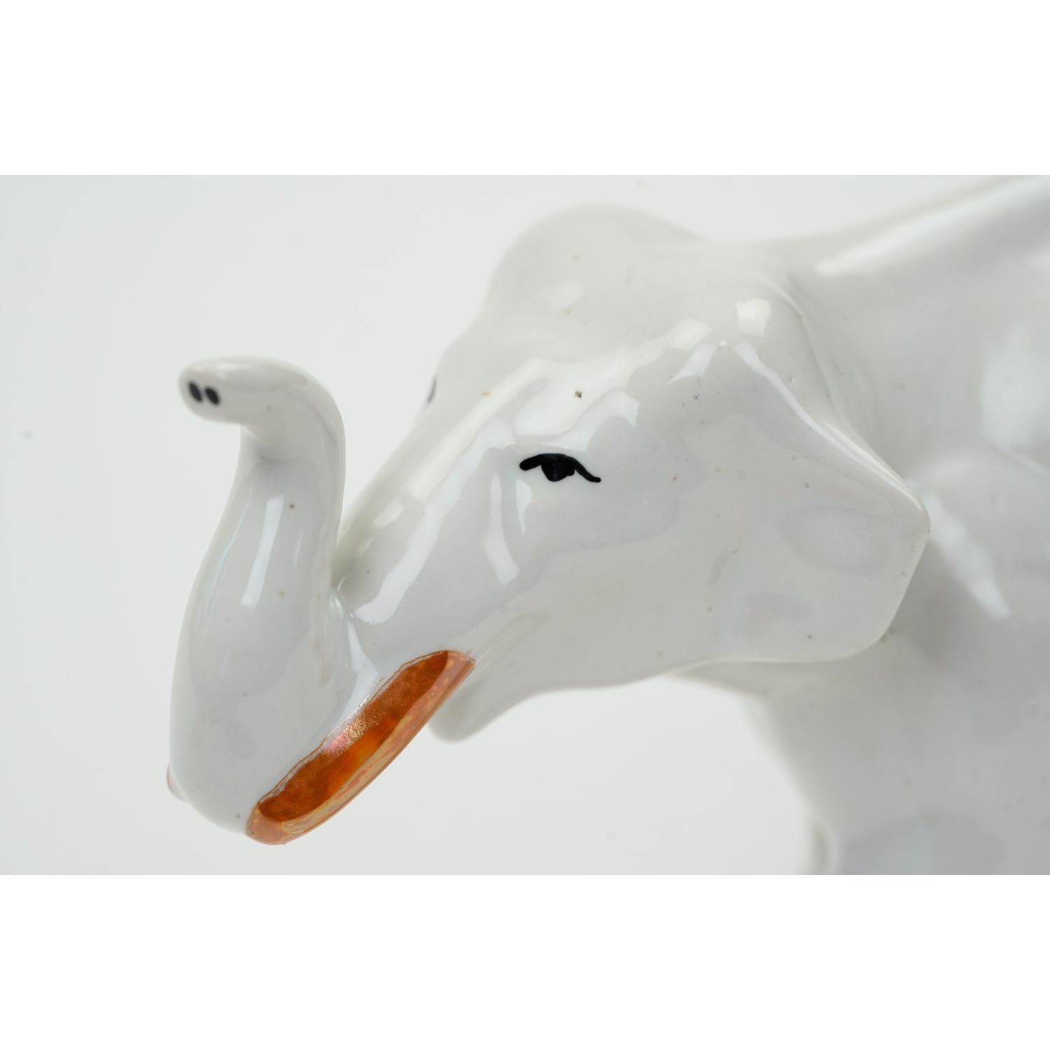 Pochodzi ze śląskiej manufaktury Zygmunta Buksowicza STEATYT z Katowic. Pochodzi z lat 50-tych XX wieku. Egzemplarz kolekcjonerski. Nie posiada sygnatury. Słoń ma pomalowane kły, nogi i oczy opalizowaną, pomarańczową i czarną malaturą na szkliwie.