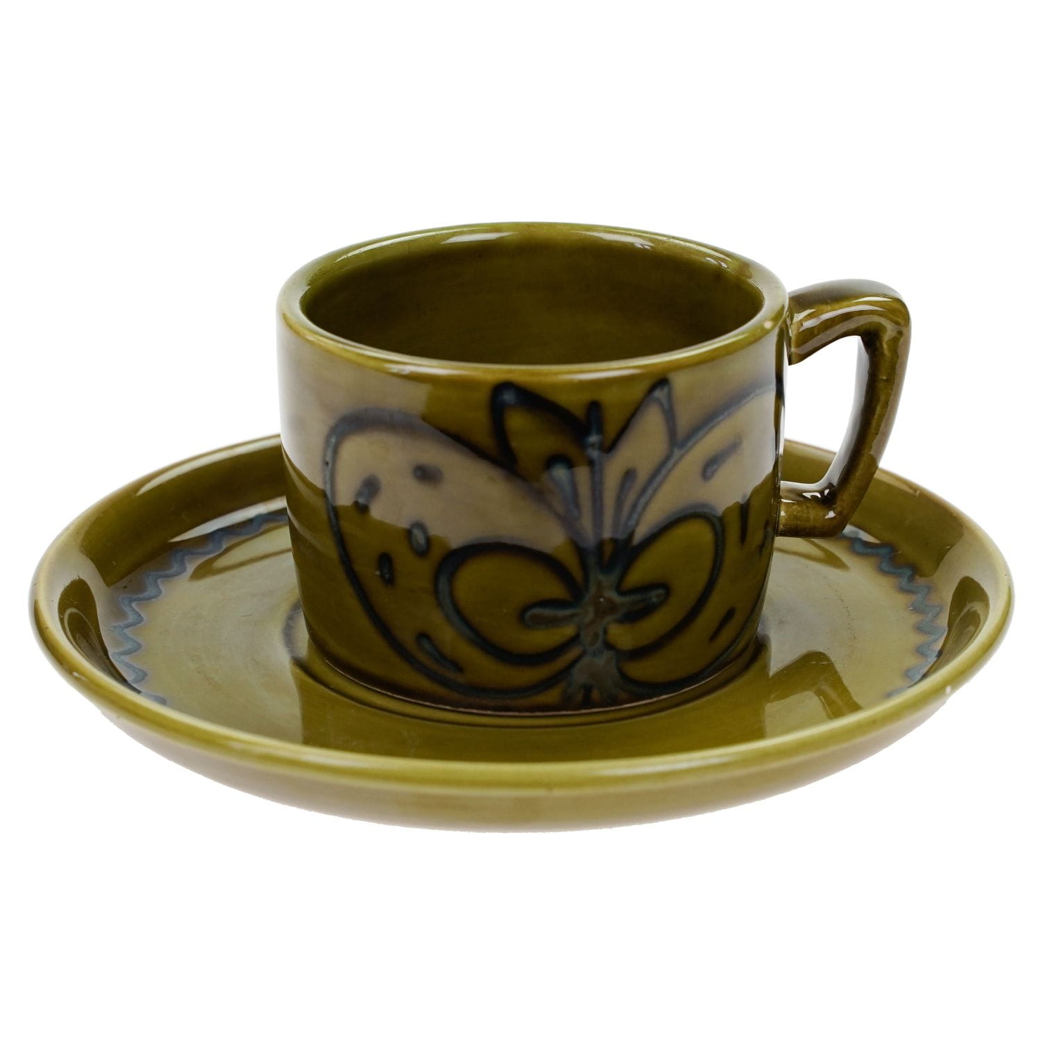 ŚWIETNA CERAMICZNA ZIELONA FILIŻANKA ZE SPODKIEM