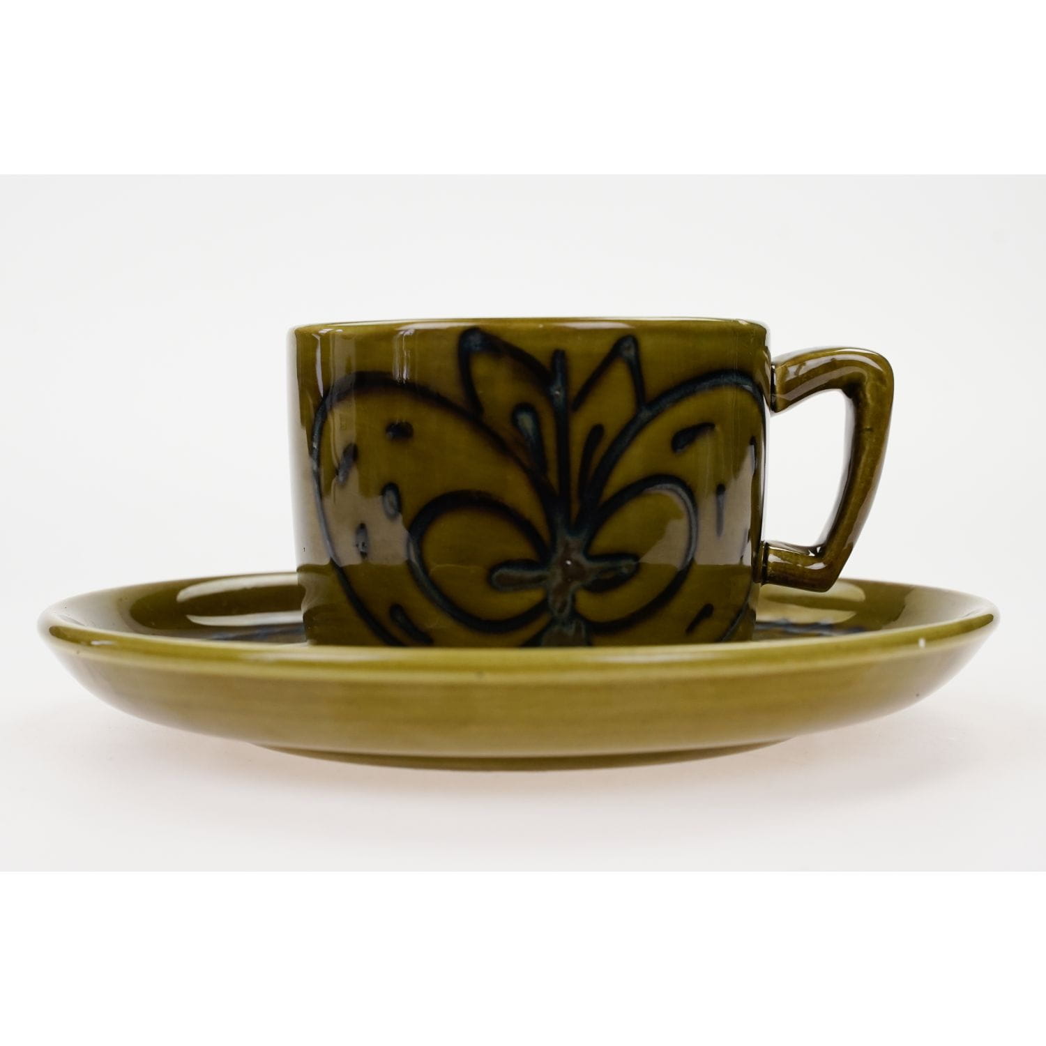 Bardzo ładna, zielona filiżanka ze spodkiem z lat 70-tych.