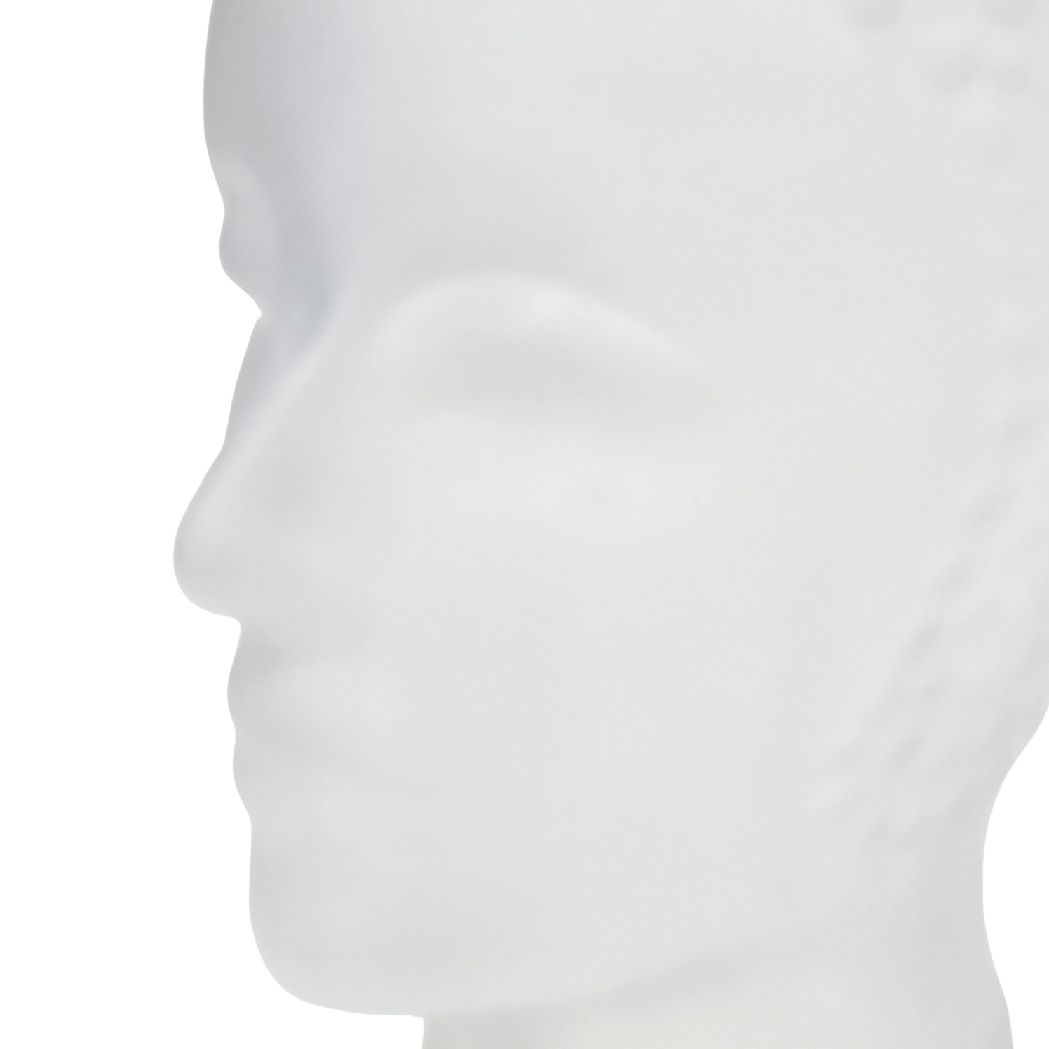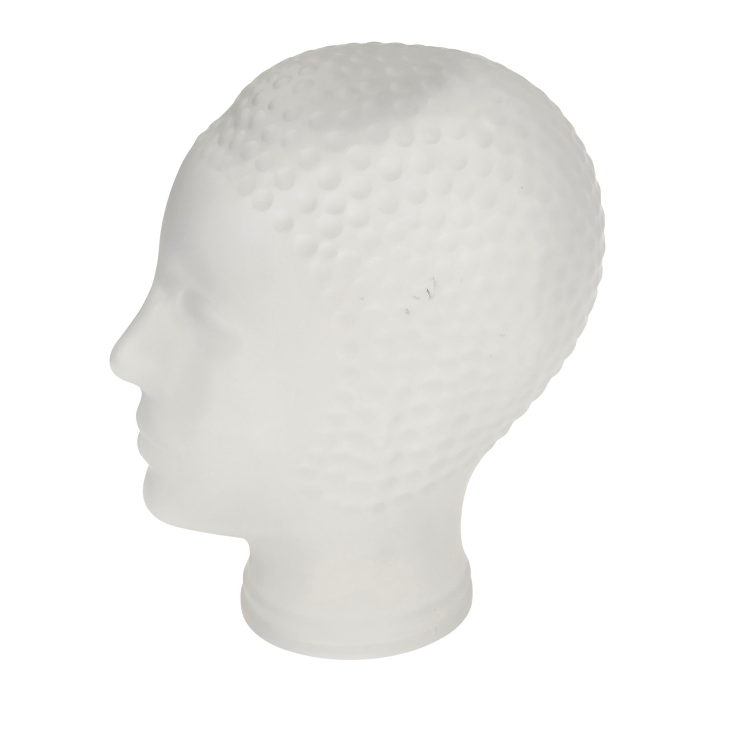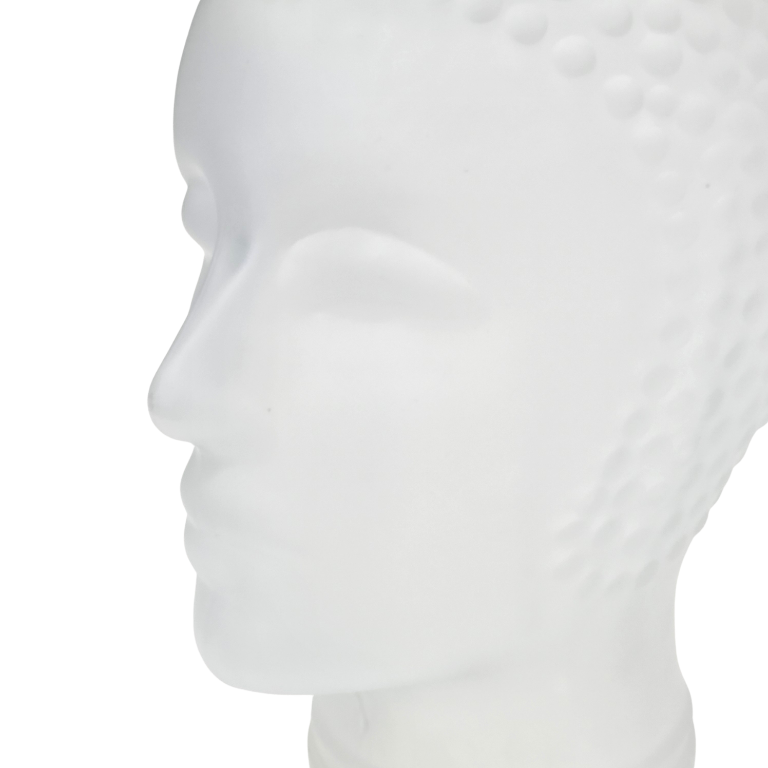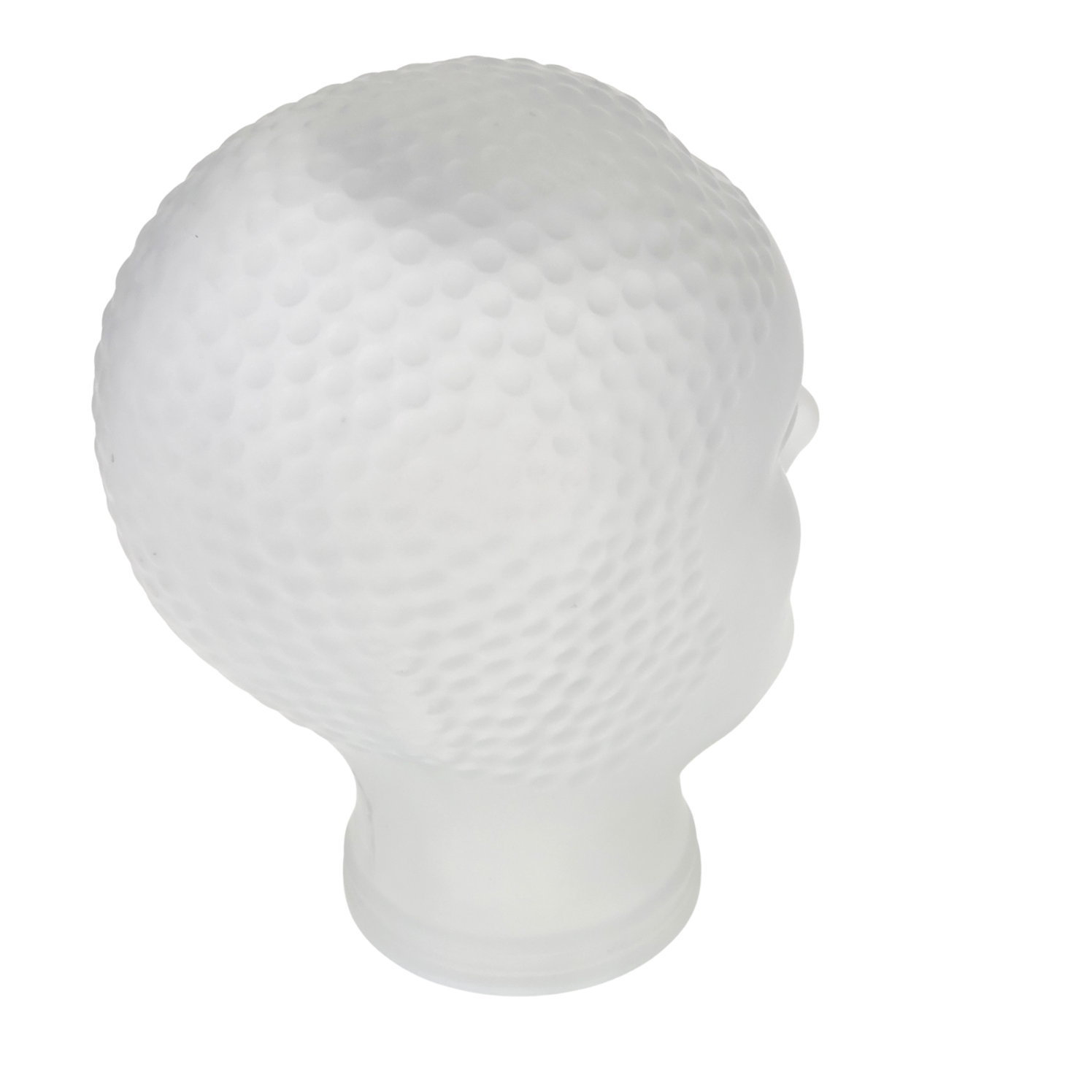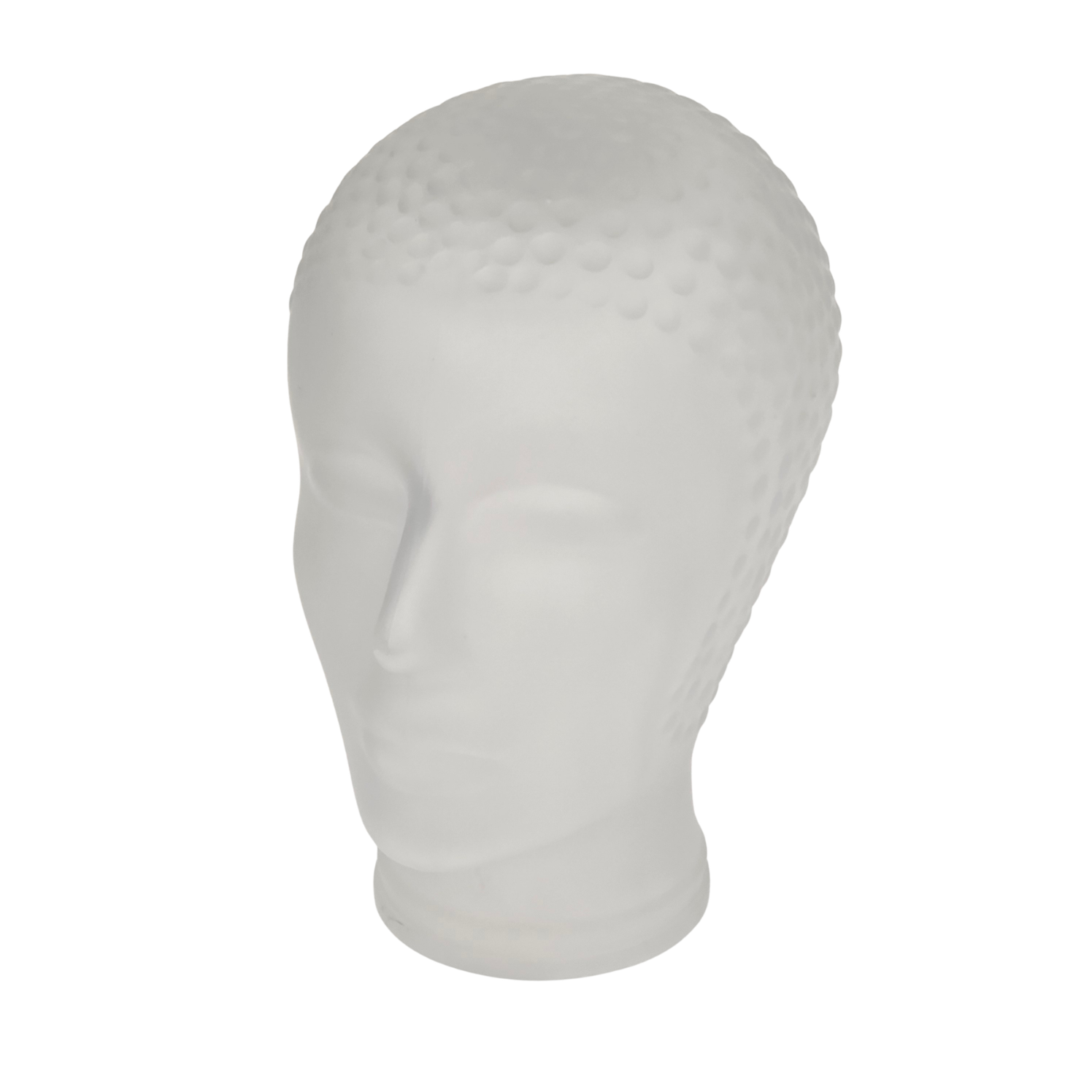 Szkło prasowane, bezbarwne, matowe, satynowe. Ta szklana głowa manekina lub szklana rzeźba w stylu włoskiej awangardy z lat 60-tych XX wieku stopniowo przekształciła się w obiekt pop-artu, projekt przypisywany Piero Fornasettiemu. Piero Fornasetti (1913–1988) był włoskim projektantem, malarzem, grafikiem, ale także rzeźbiarzem. Jest jednym z najbardziej płodnych artystów XX wieku, stworzył ponad 11 000 projektów.