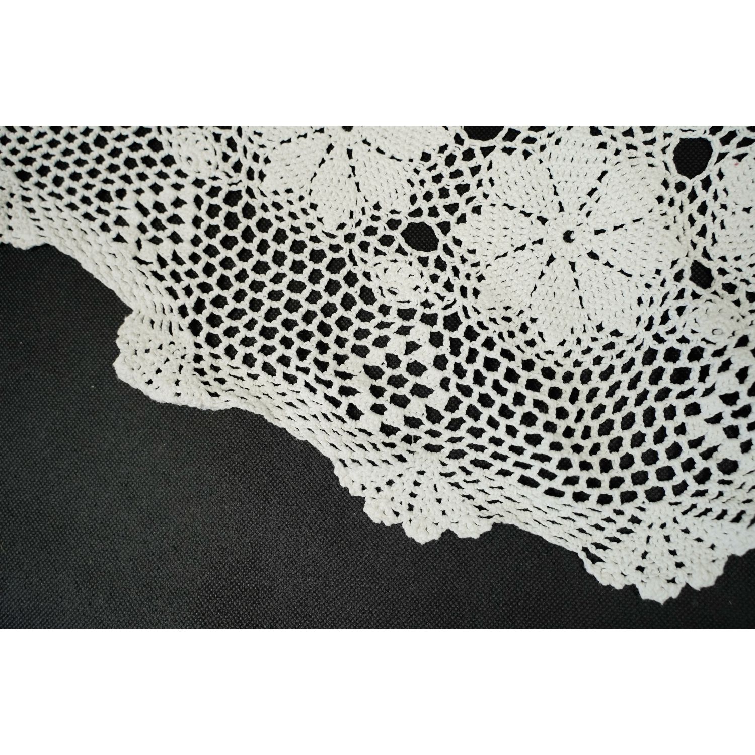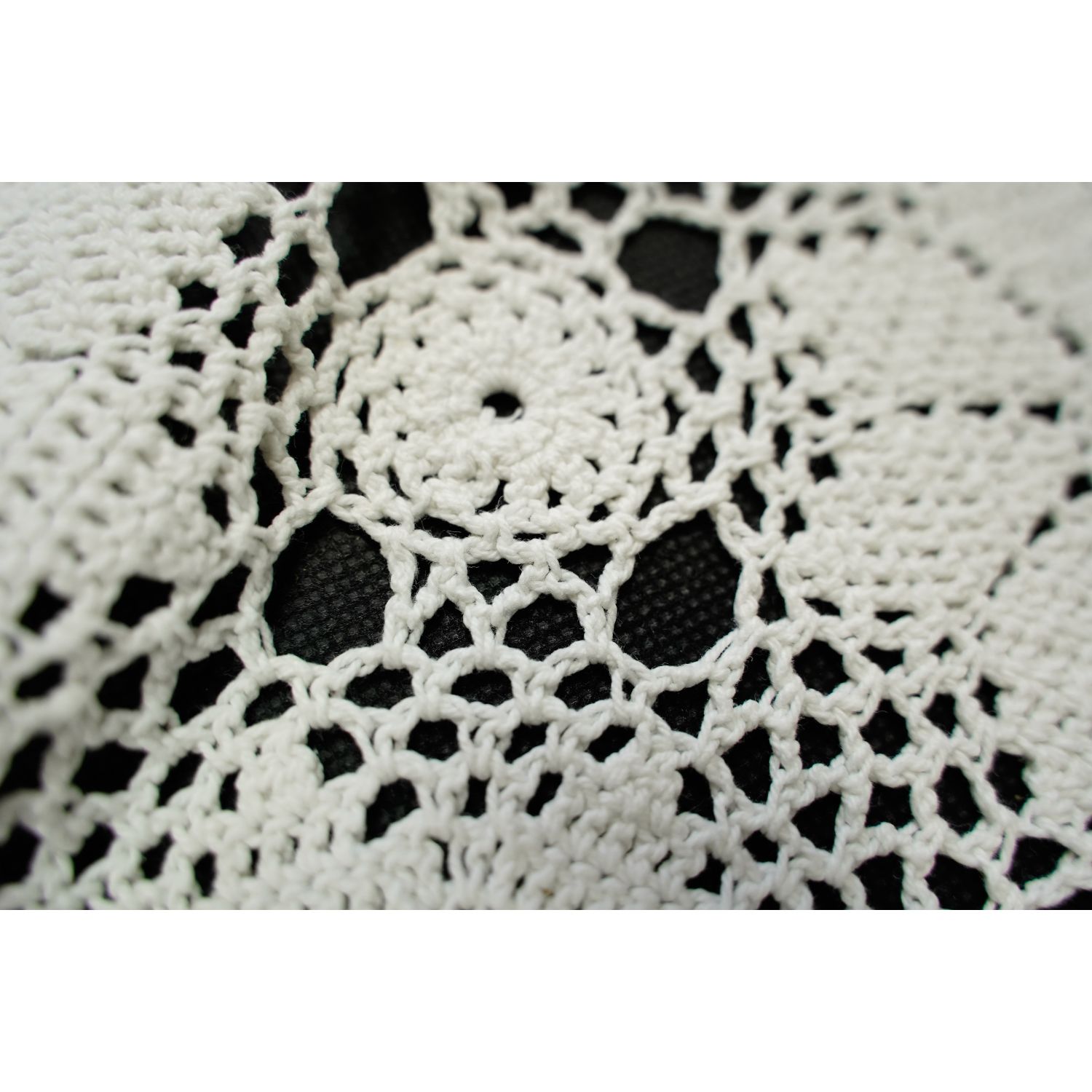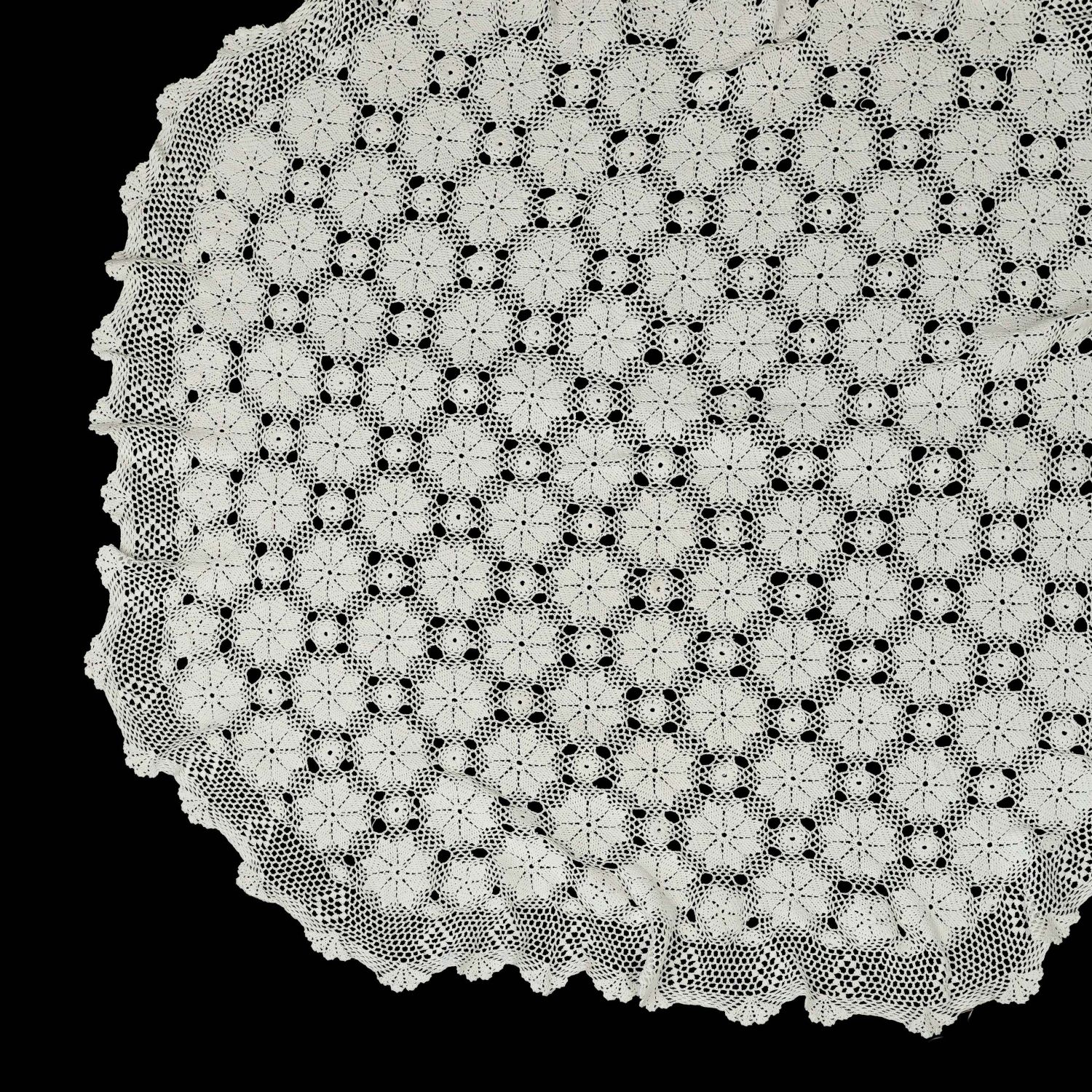 Duży, biały, lekko owalny obrus rozetki.