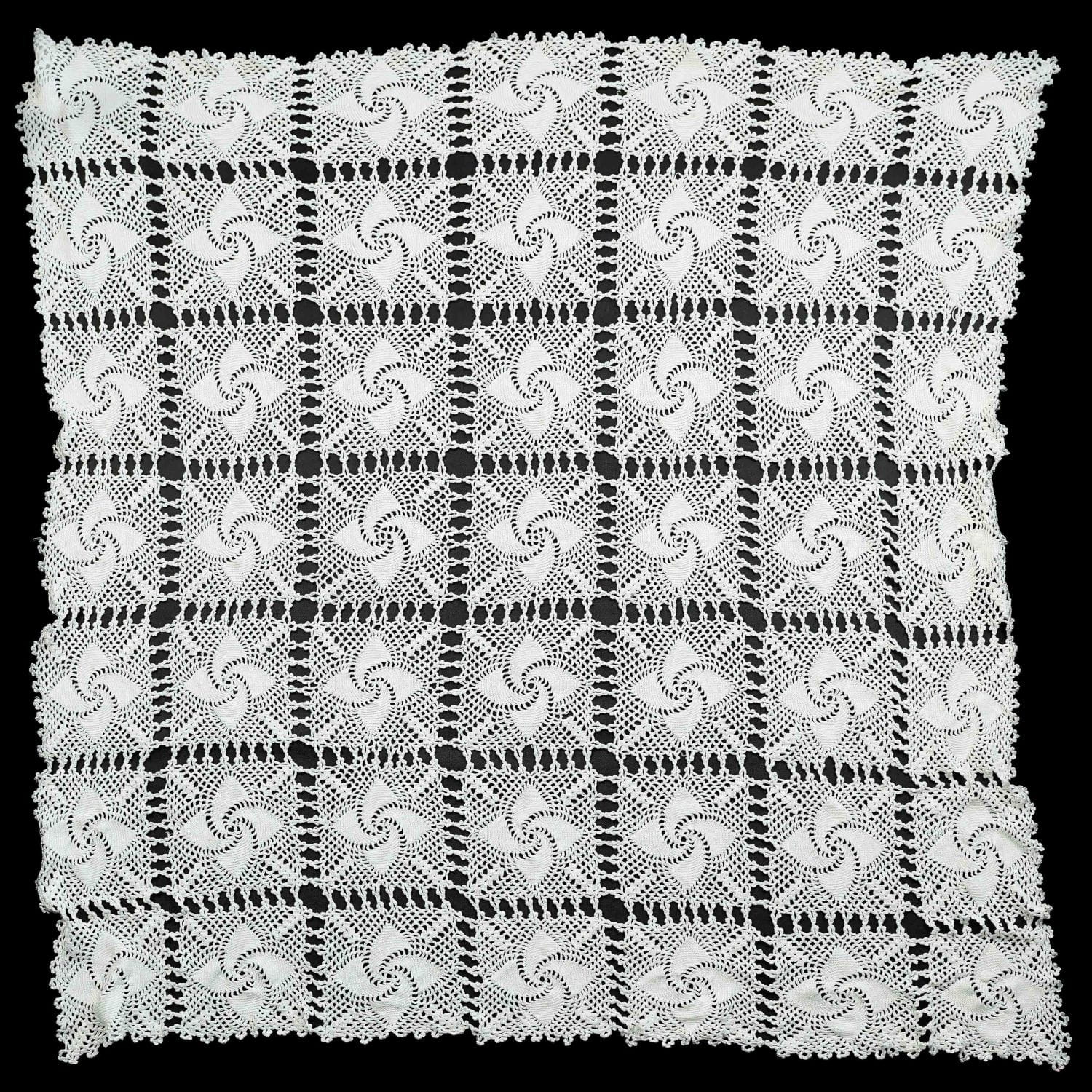 Sporej wielkości, szydełkowa robótka w odcieniu bieli.