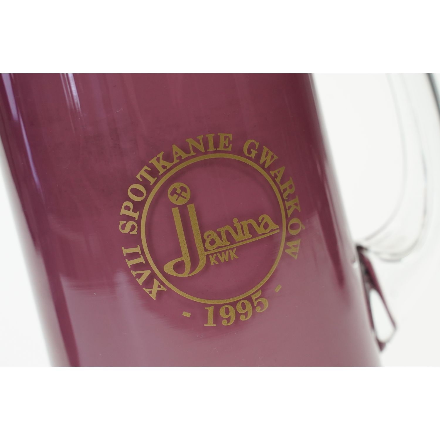Pochodzi z huty szkła Tarnowiec. Autorem projektu jest Pan Jerzy Słuczan-Orkusz. Na zewnątrz w kolorze cieniowanym, fioletowym wewnątrz biały z solidnym, bezbarwnym, zgrabnym uchem. Z szerszą podstawą i korpusem w kształcie prostej tuby z ozdobnym pierścieniem. Z okolicznościowymi napisami z obu stron.