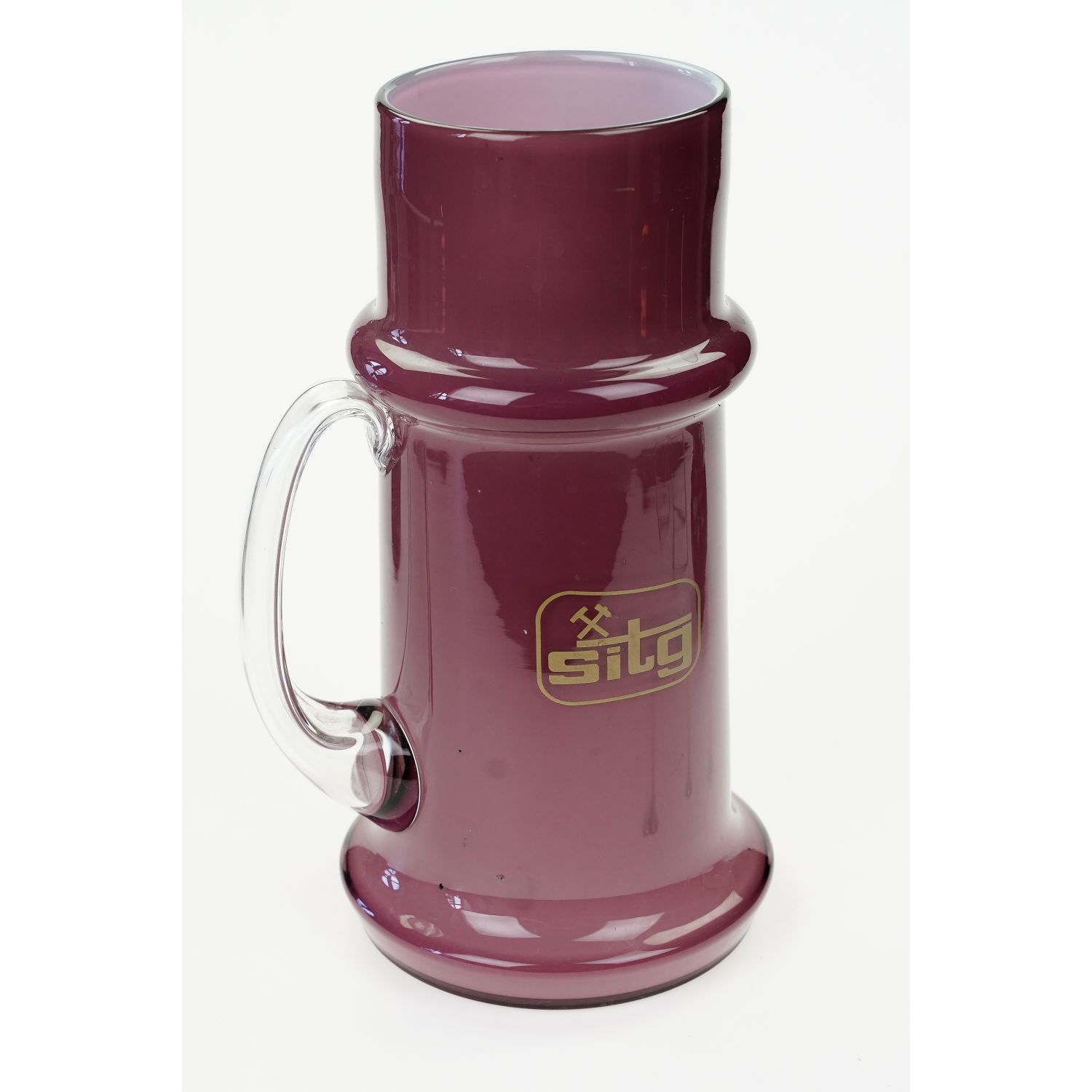 Uroczy dzban, wazon z uchem ze szkła w kolorze wrzosowym.