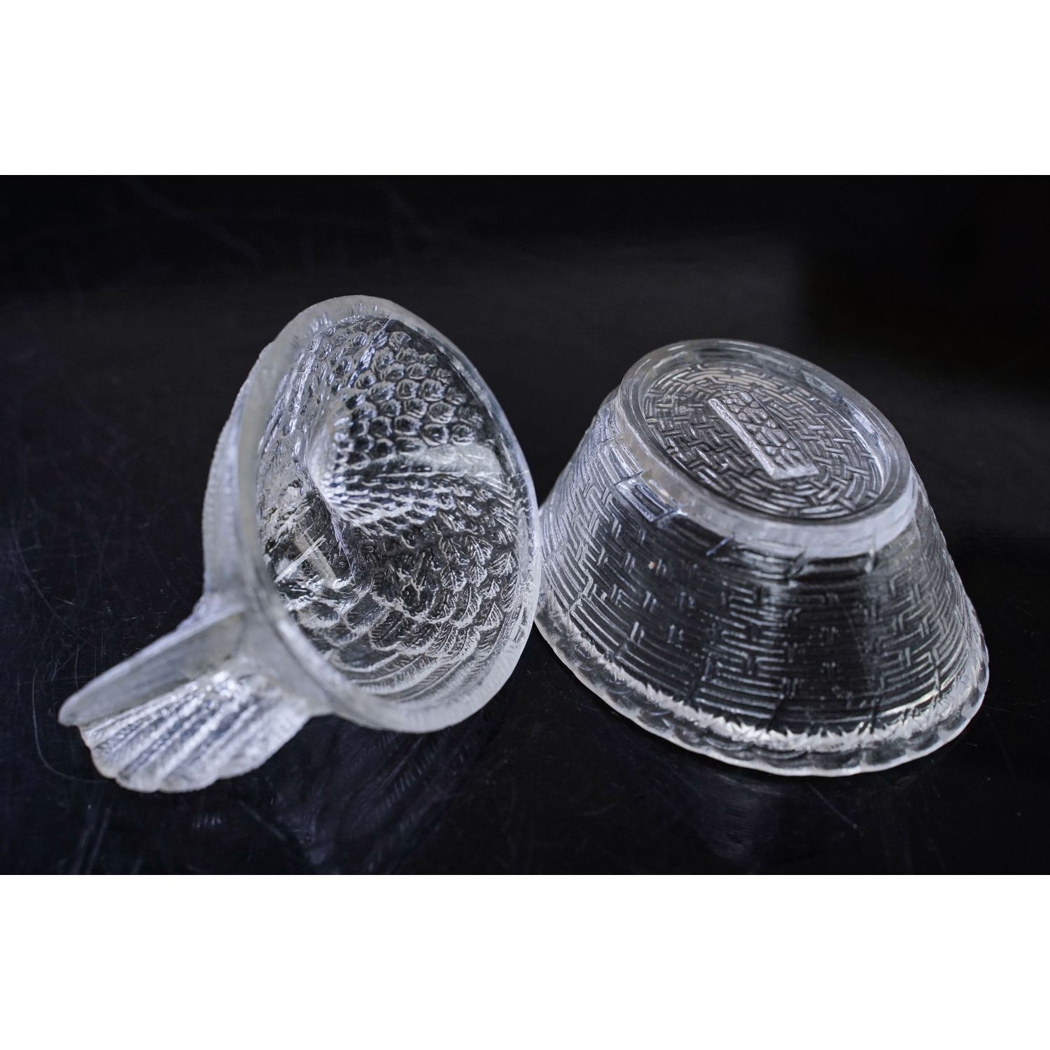 Mniejsza kurka- pojemnik, bomboniera lub maselniczka bezbarwna.