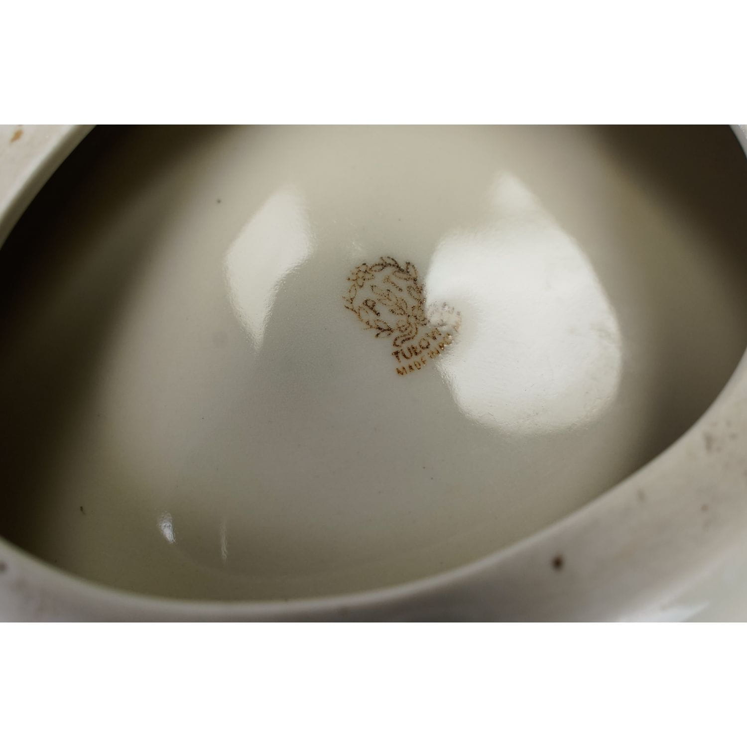 Barwna, porcelitowa popielniczka z Zakładu Porcelitu Stołowego Tułowice z lat 60-tych XX wieku.