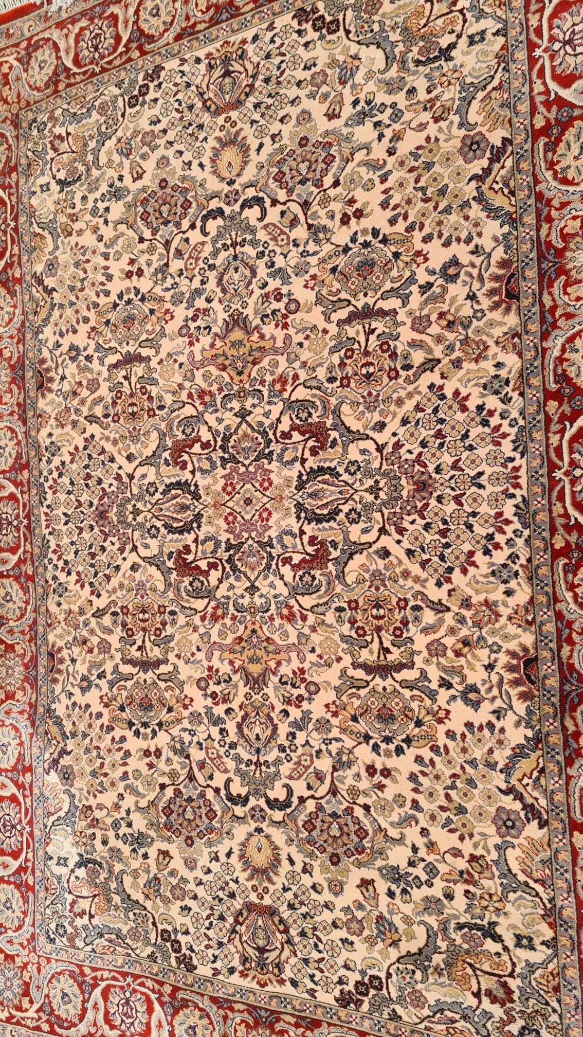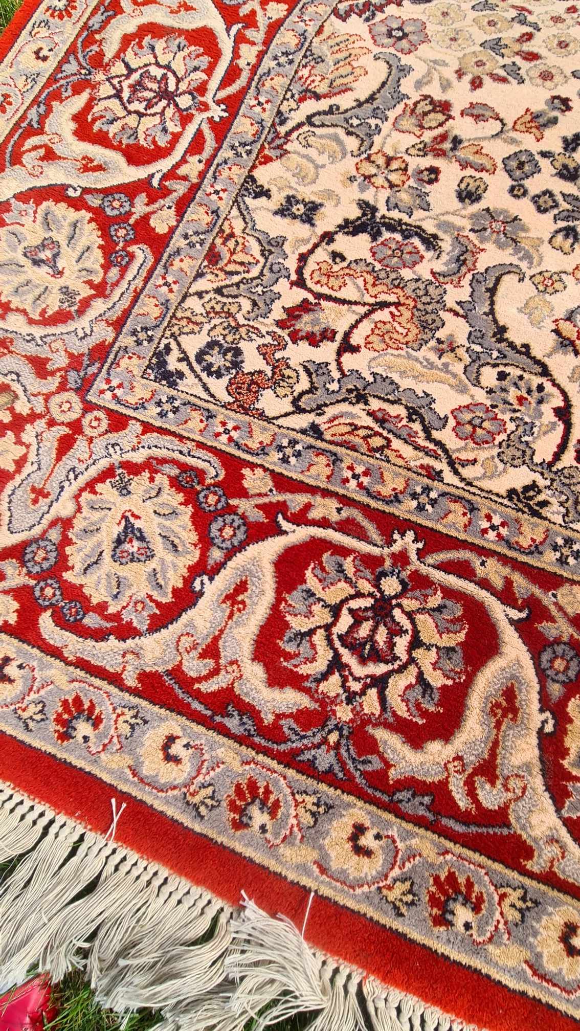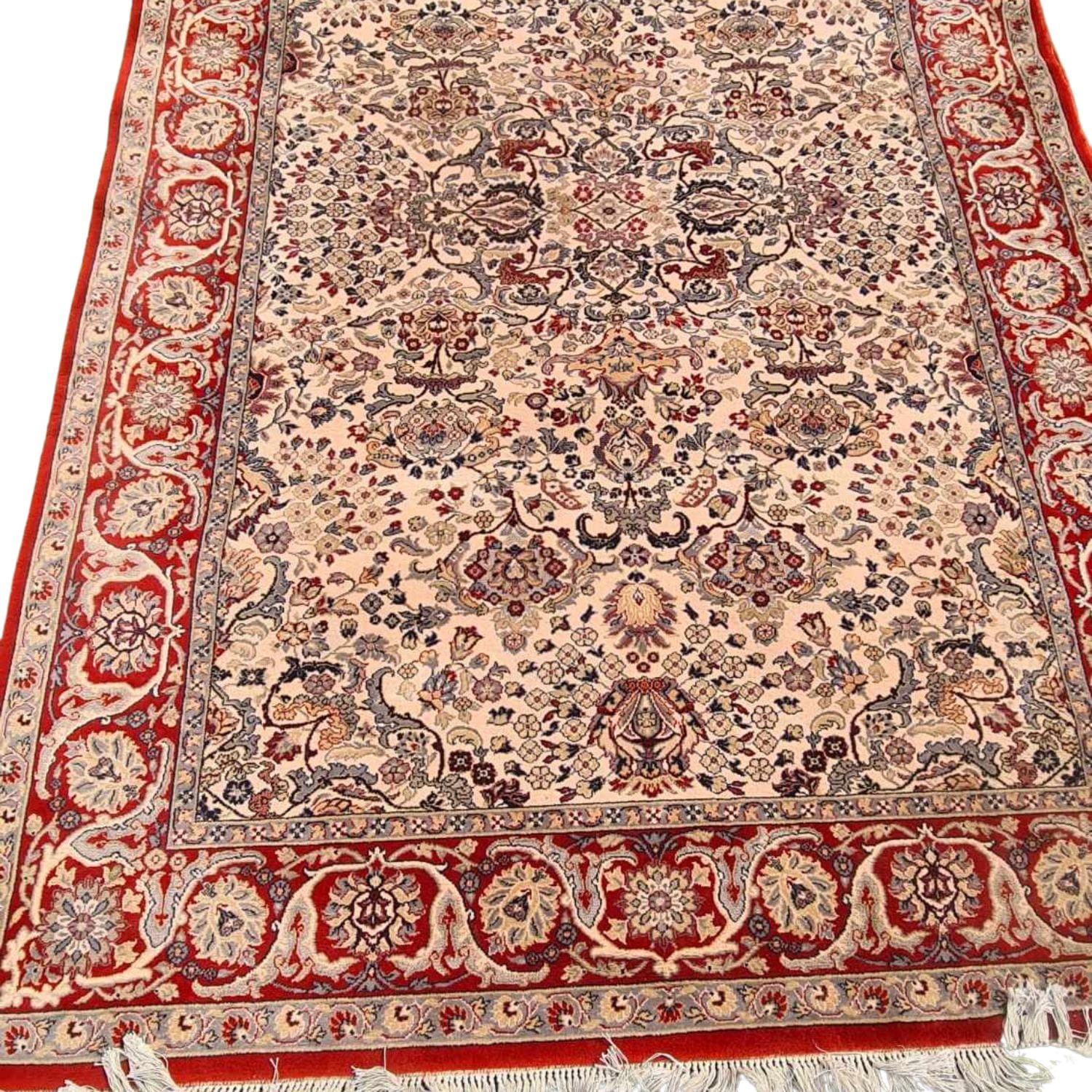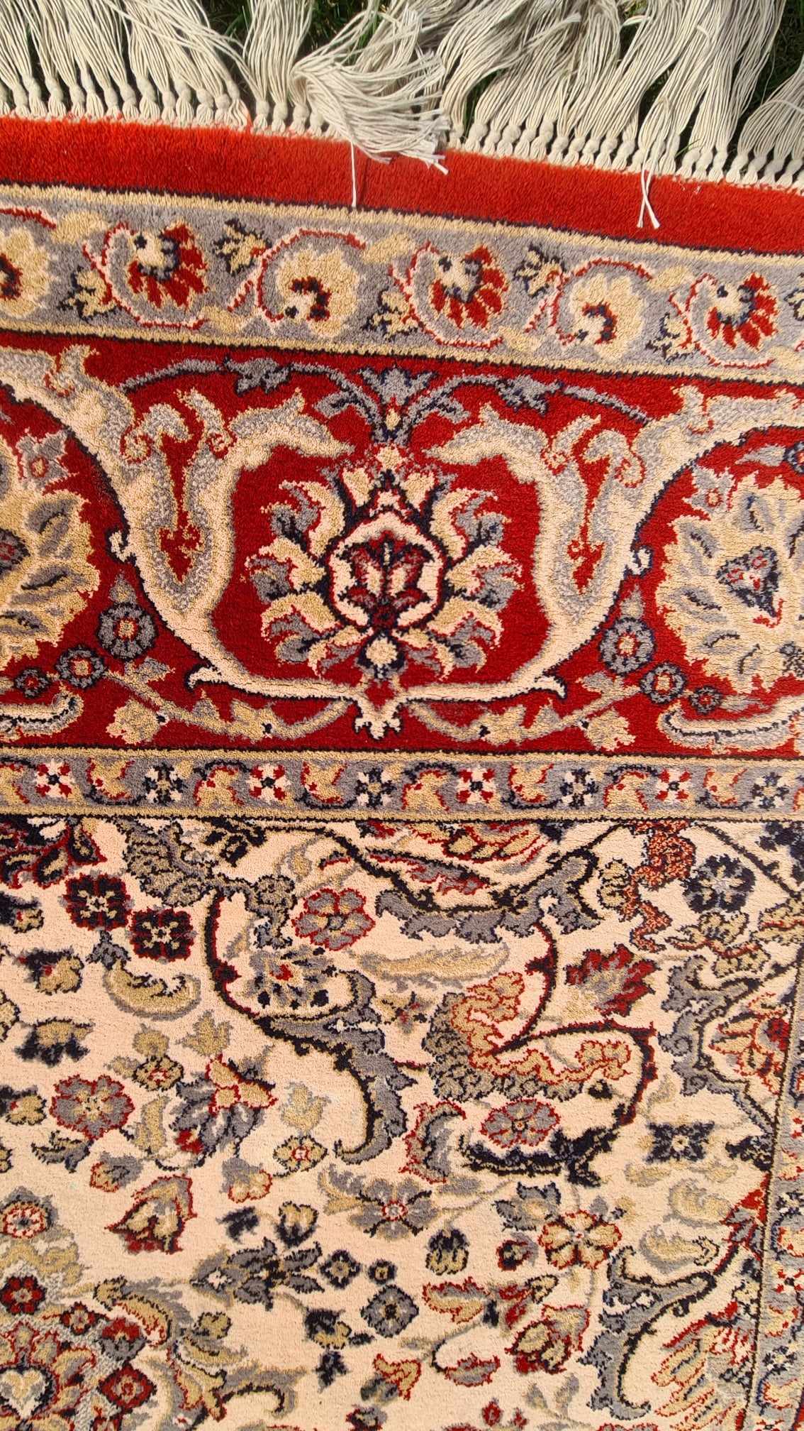 Delikatny w dotyku. Ciepłe i eleganckie kolory, w połączeniu z orientalnymi wzorami, gwarantują najwyższe doznania estetyczne. Na dwóch krawędziach kremowe frędzle. Tkany ręcznie z wysokiej jakości wełny. Charakteryzuje się zwartym, lśniącym runem, piękną kolorystyką i wzornictwem.