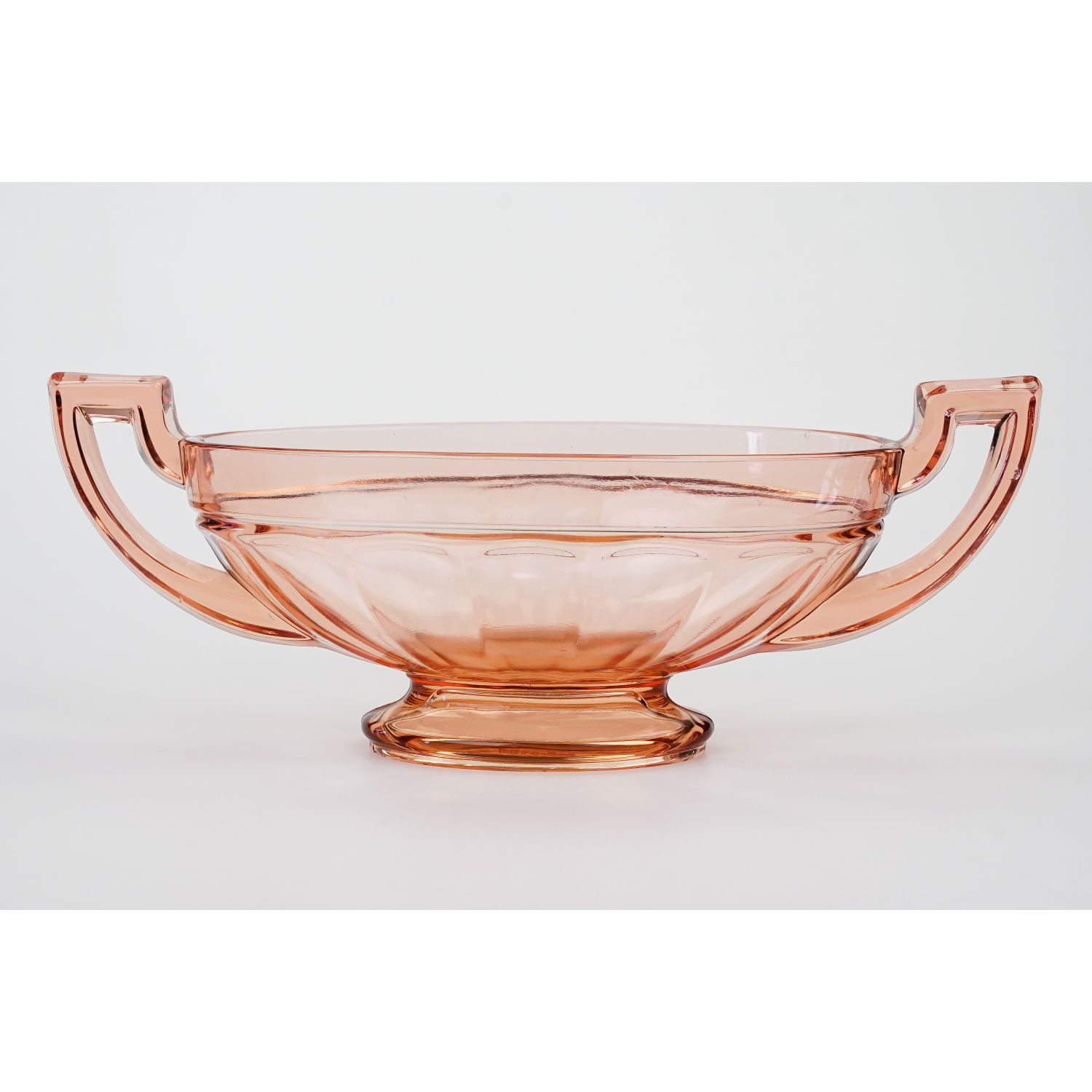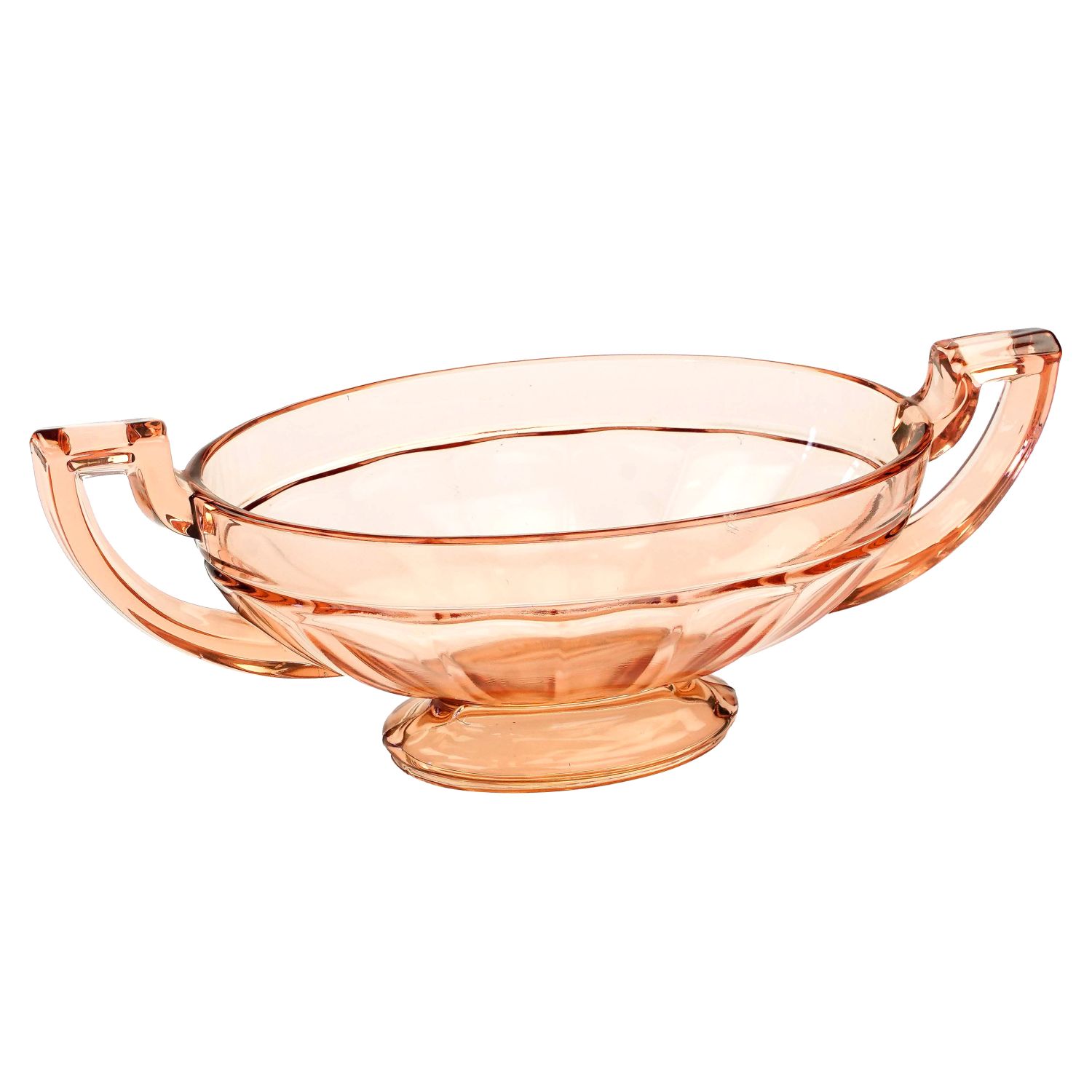Śliczna, łososiowa patera, owalna miska na stopie w stylu Art-Deco.