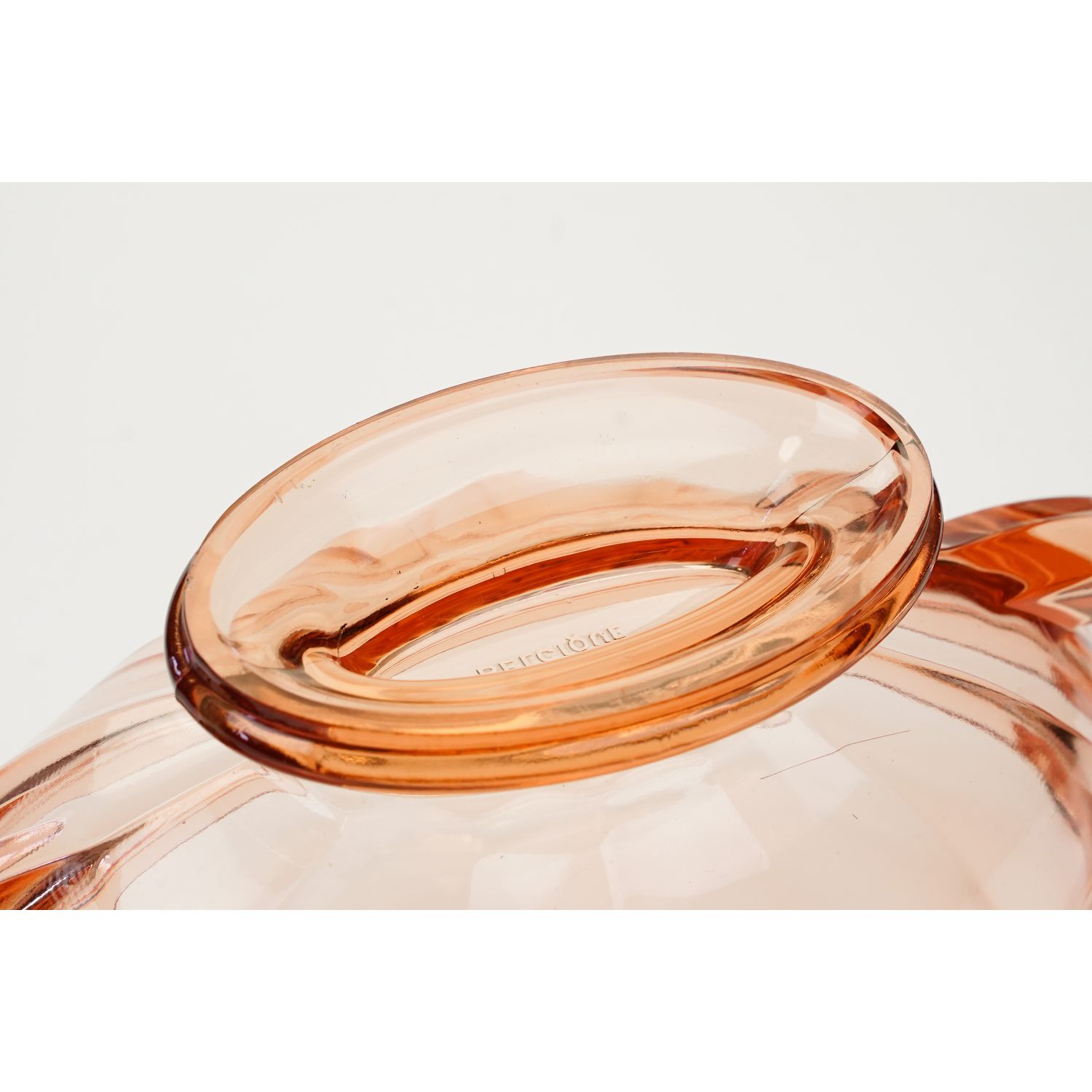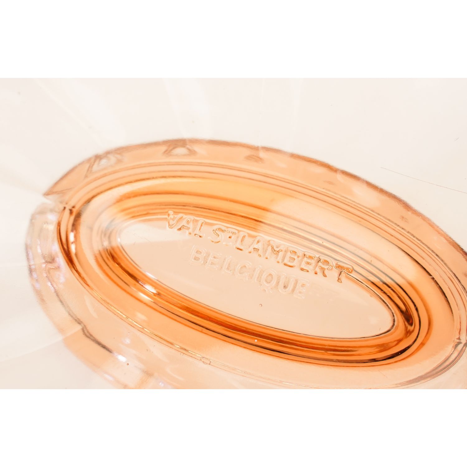 Pochodzi z Belgii z Val Saint Lambert (Luxval), z 1935 roku. Model Noémie, autorami projektu są: Charles Graffart i René Delvenne. Sygnowana na dnie naczynia "VAL ST LAMBERT BELGIQUE". Szkło prasowane. Kolor głęboko łososiowy. Zdobione prostym tłoczeniem, na kolistej stopie z pięknymi, prostymi, zgeometryzowanymi uszami.