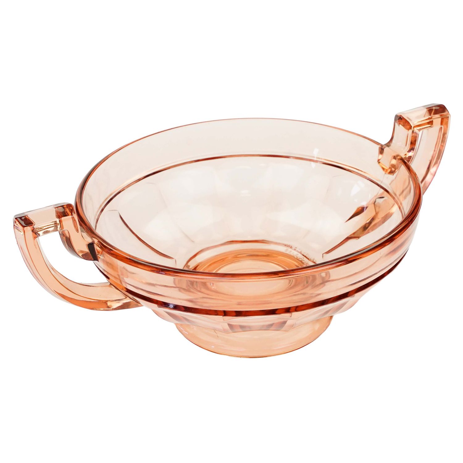 Śliczna, łososiowa patera, misa na stopie w stylu Art-Deco.