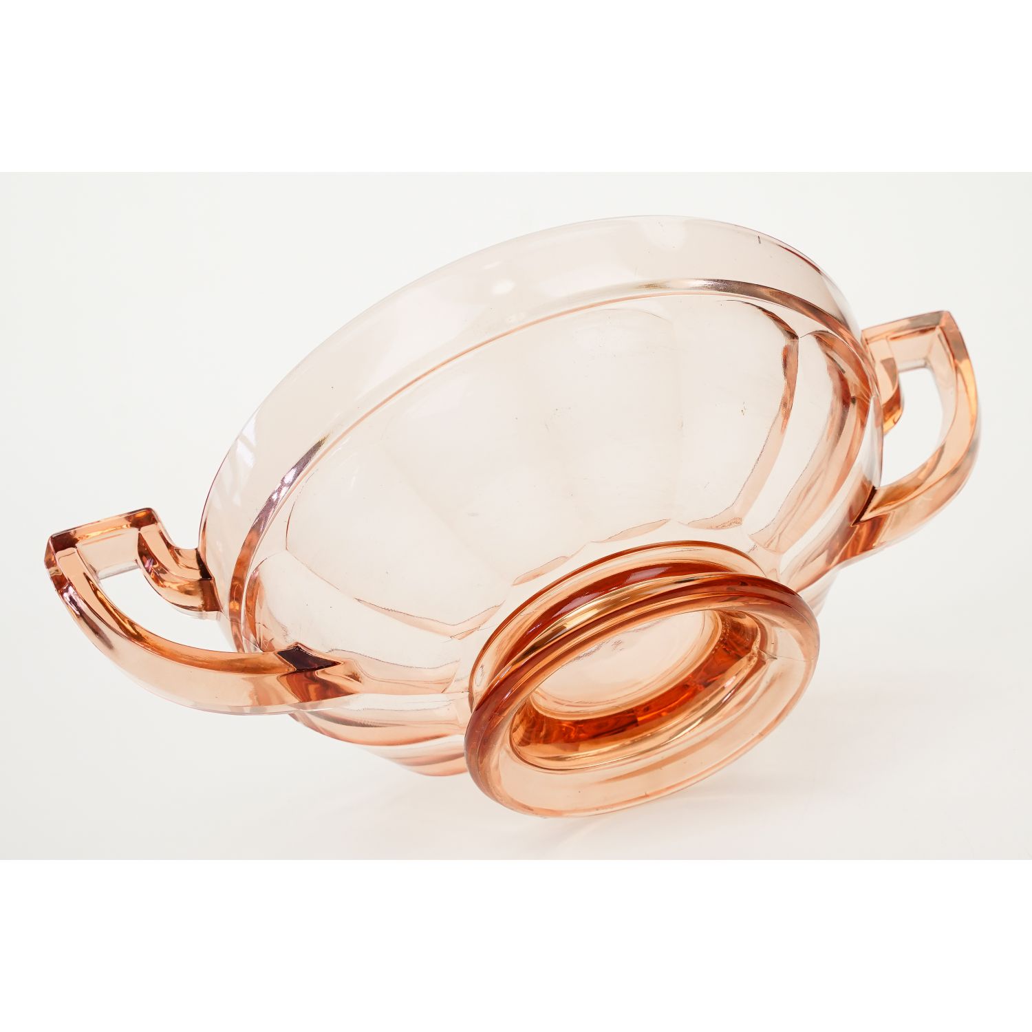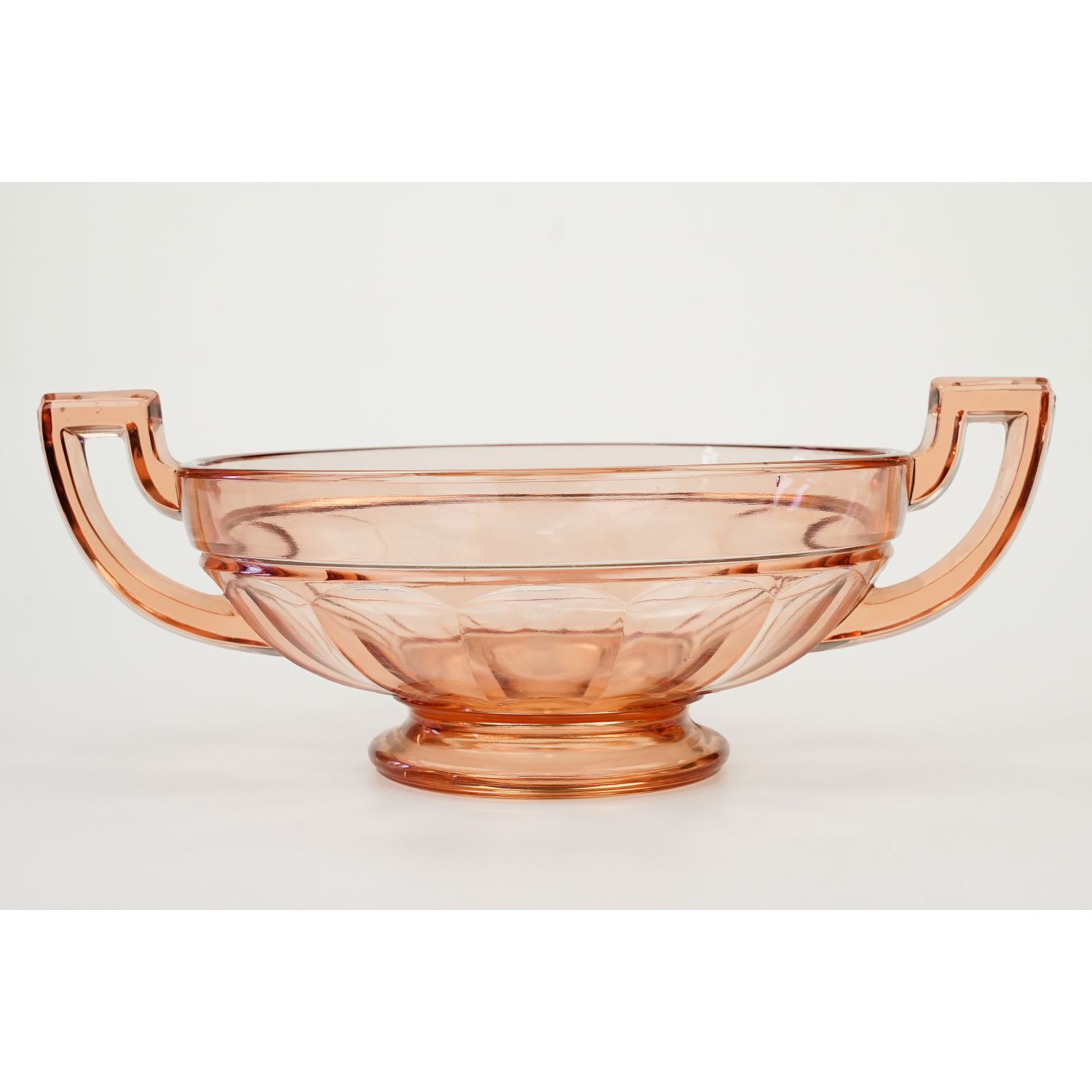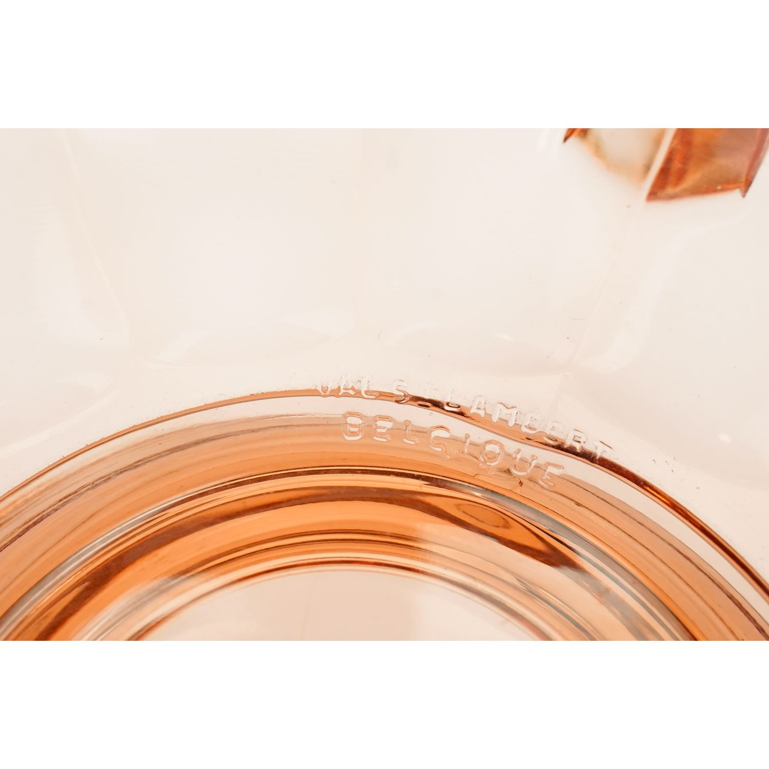 Pochodzi z Belgii z Val Saint Lambert (Luxval), z 1935 roku. Model Noémie, autorami projektu są: Charles Graffart i René Delvenne. Sygnowana na dnie naczynia "VAL ST LAMBERT BELGIQUE". Szkło prasowane. Kolor głęboko łososiowy. Zdobione prostym tłoczeniem, na kolistej stopie z pięknymi, prostymi, zgeometryzowanymi uszami.
