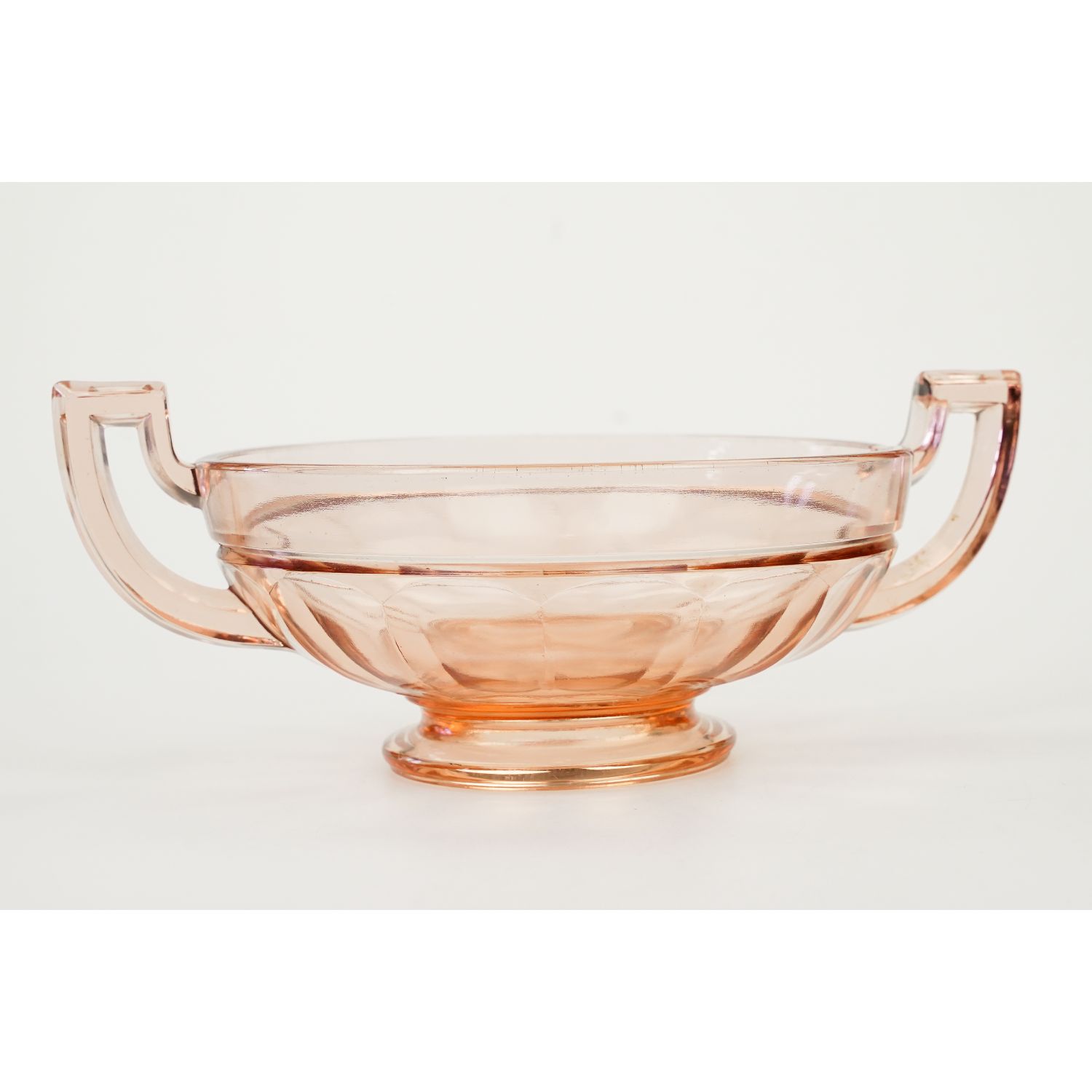 Pochodzi z Belgii z Val Saint Lambert (Luxval), z 1935 roku. Model Noémie, autorami projektu są: Charles Graffart i René Delvenne. Szkło prasowane. Kolor głęboko łososiowy. Zdobione prostym tłoczeniem, na kolistej stopie z pięknymi, prostymi, zgeometryzowanymi uszami.