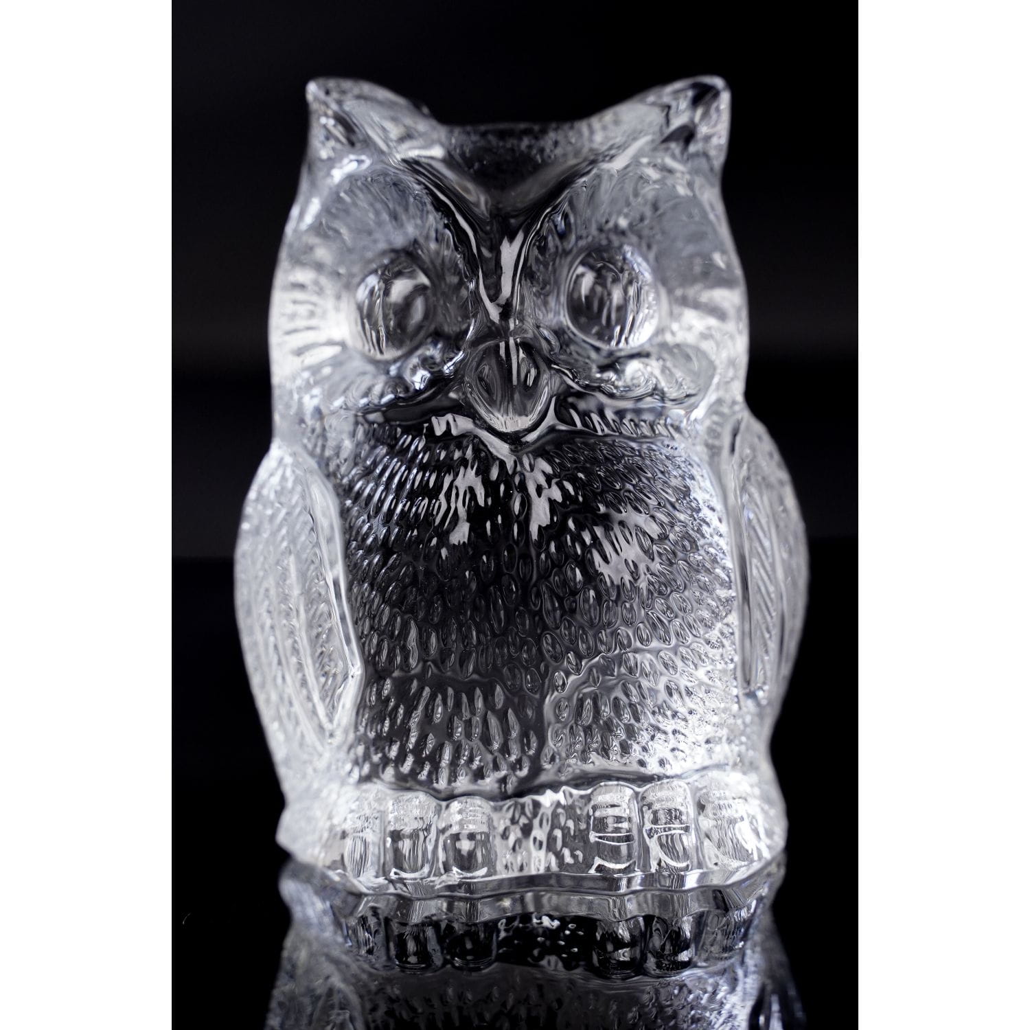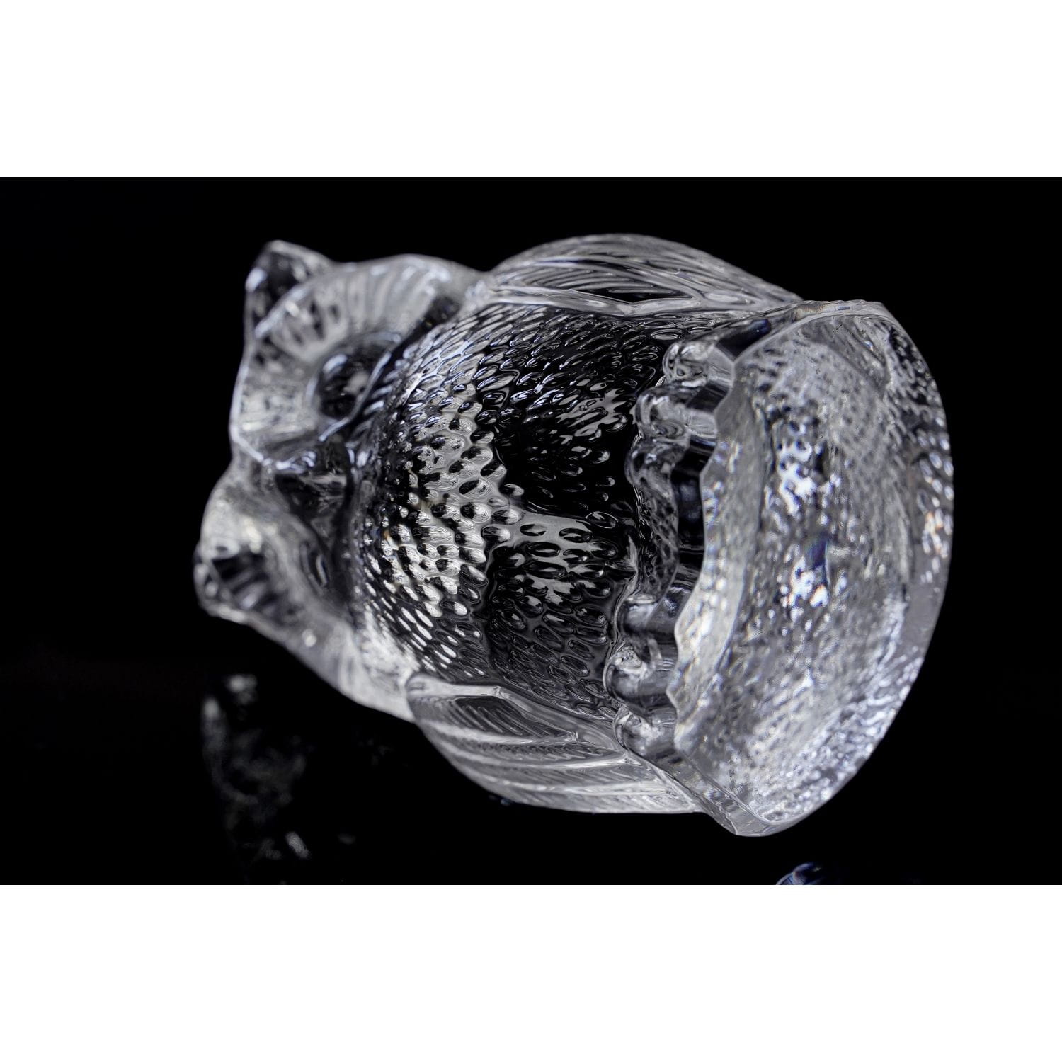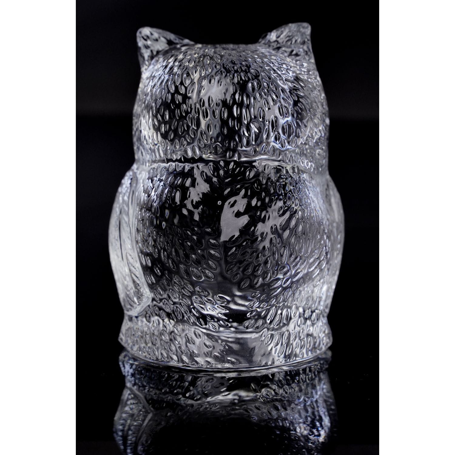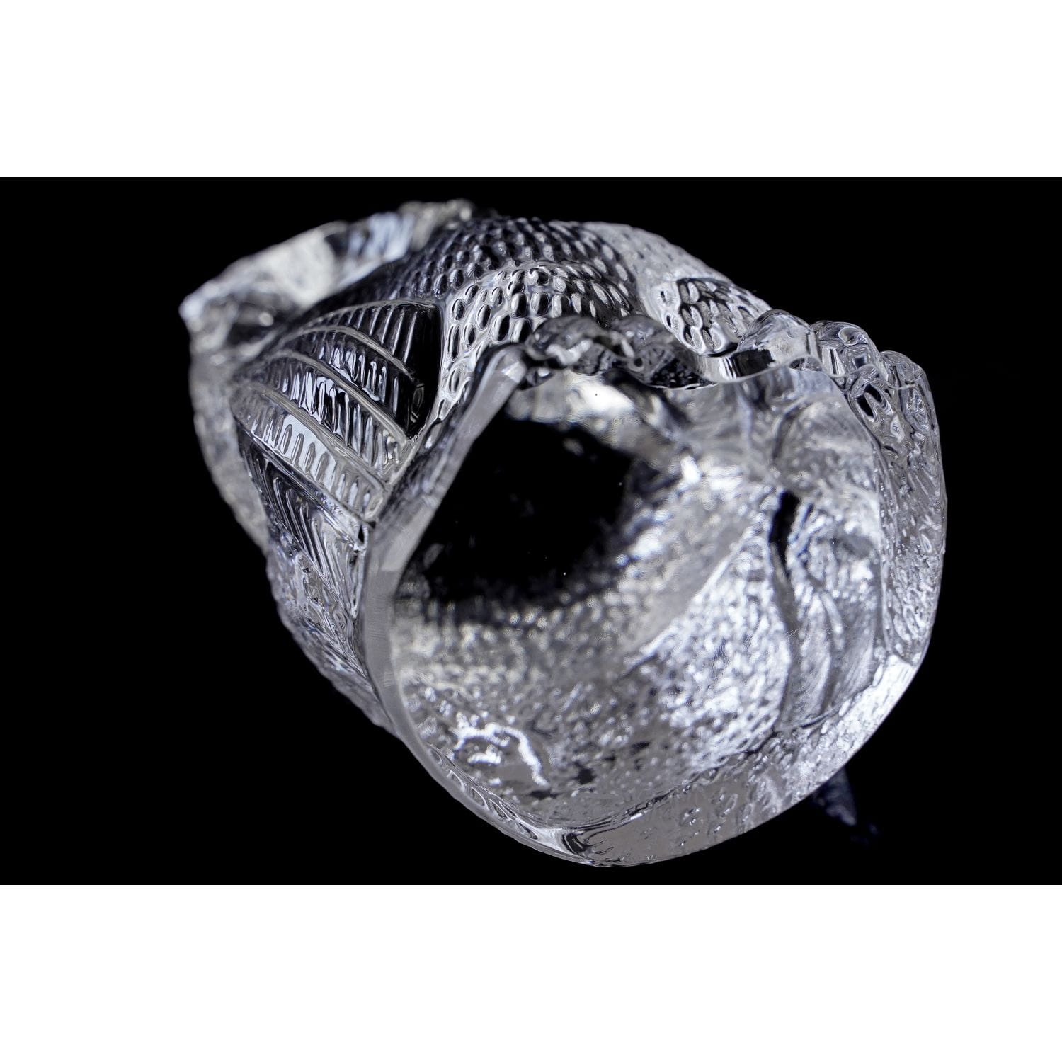Szkło ręcznie formowane, bezbarwne. Wykonane z dbałością o szczegóły anatomiczne ptaka. Szlifowana podstawa.