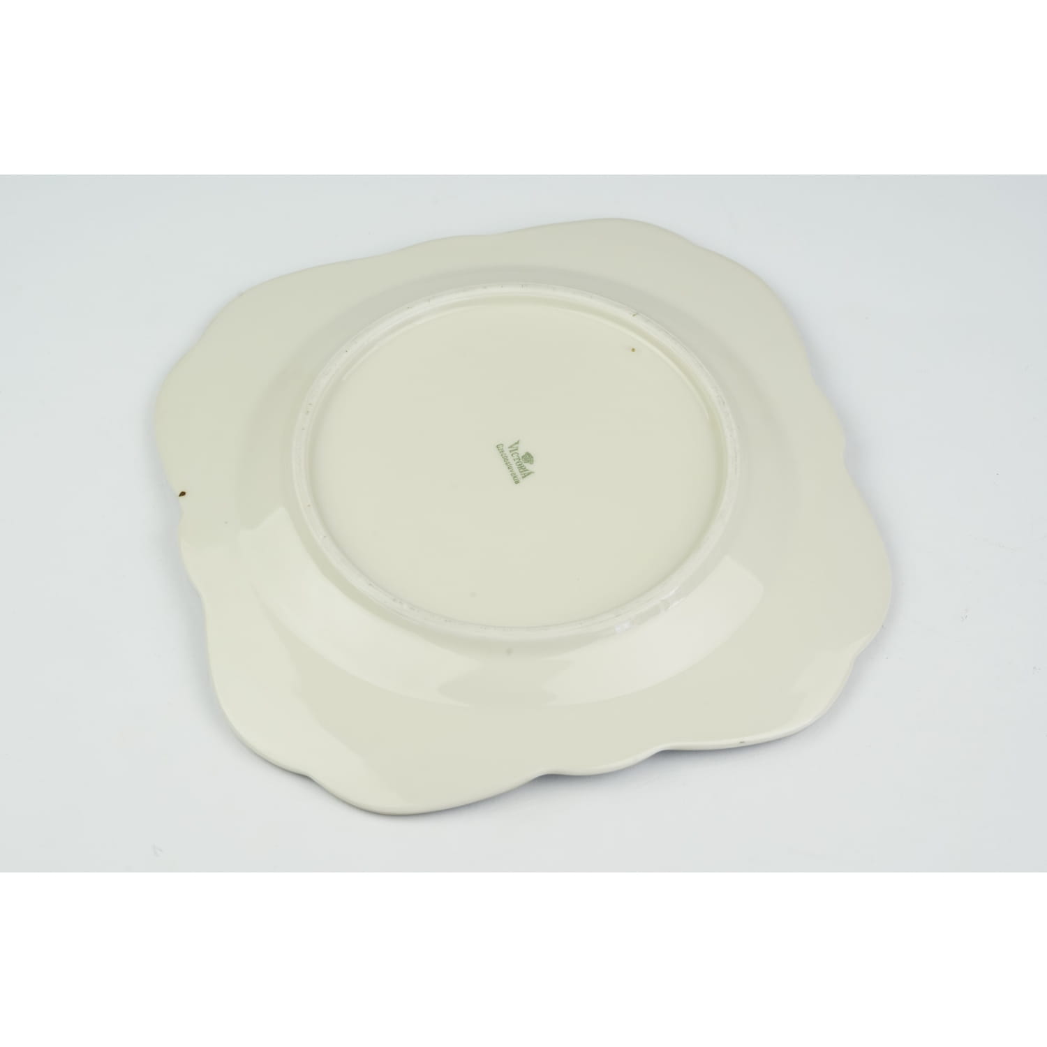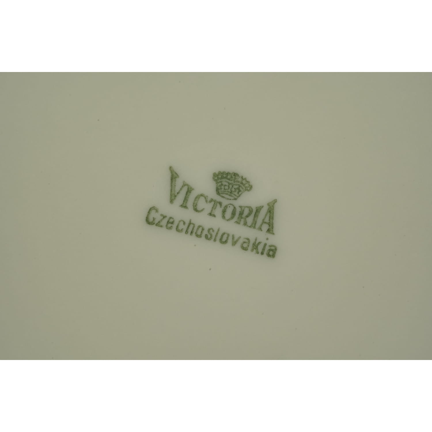 Pochodzi z Bohemii z miejscowości Stará Role (niem. Altrohlau) z Porzellanfabrik Victoria Schmidt & Co. Sygnowany znakiem stosowanym od 1927 roku. Porcelana w odcieniu bieli o graniastym, wymyślnym kształcie z błękitną malaturą na kołnierzu i owocową dekoracją na lustrze. Rant w złotych obwódkach.