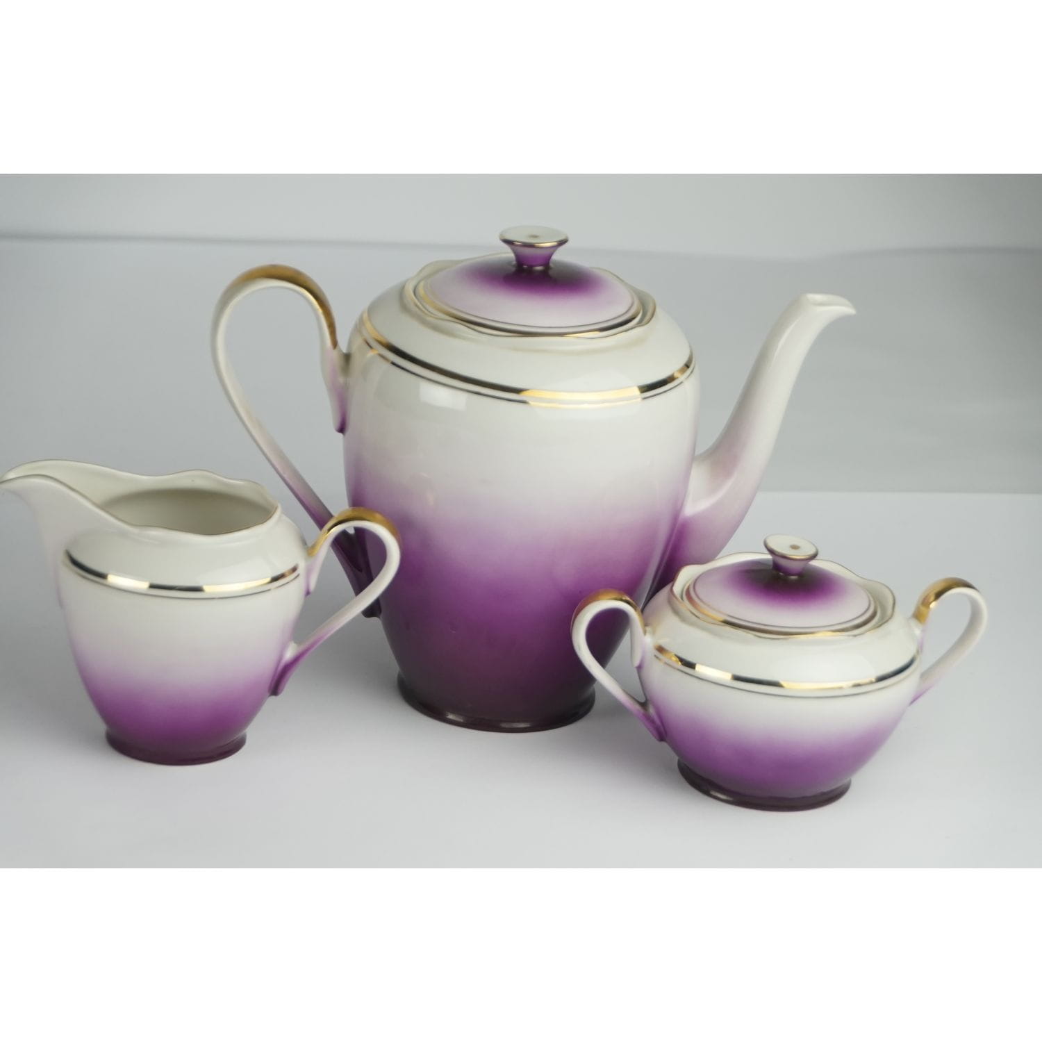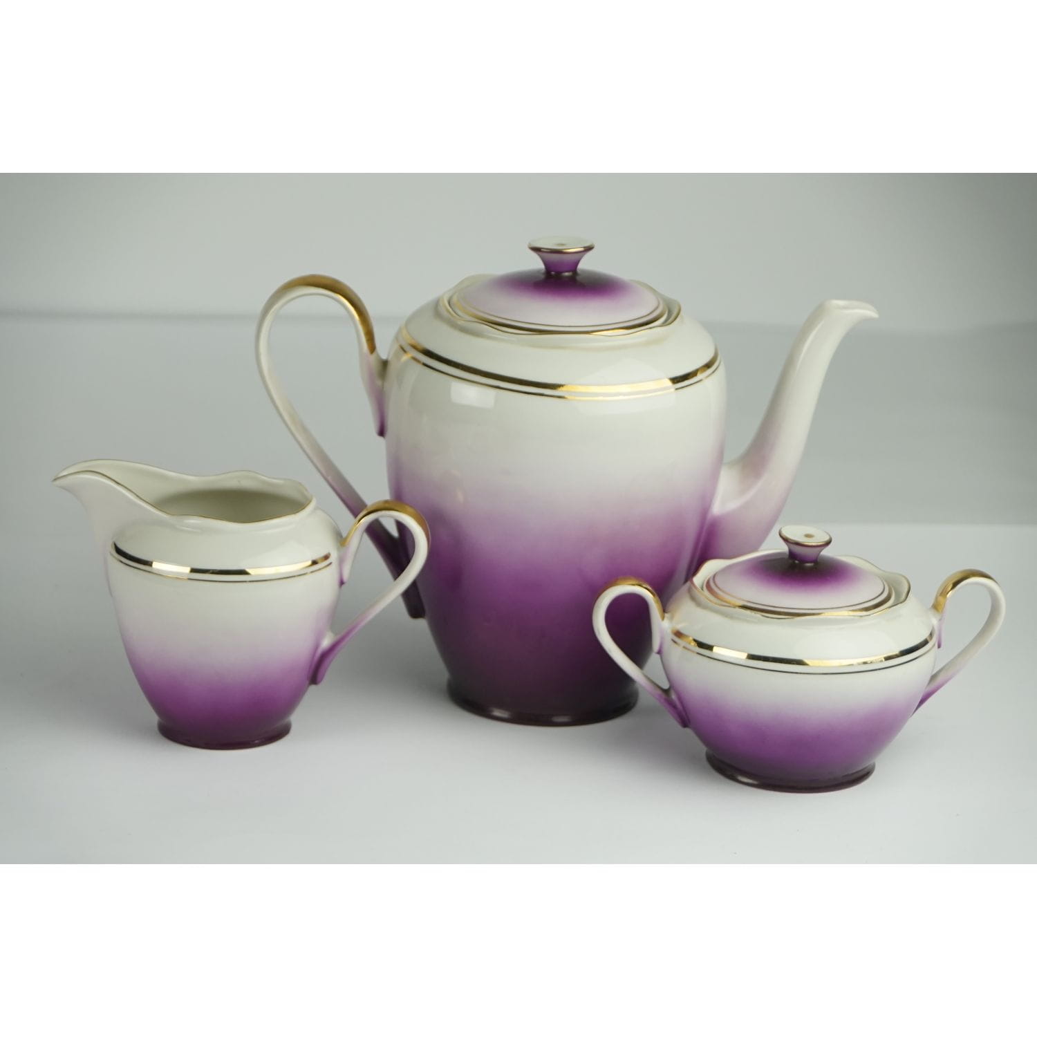 WAŁBRZYCH GARNITUR DO KAWY CIENIOWANY FIOLET LATA 60-TE