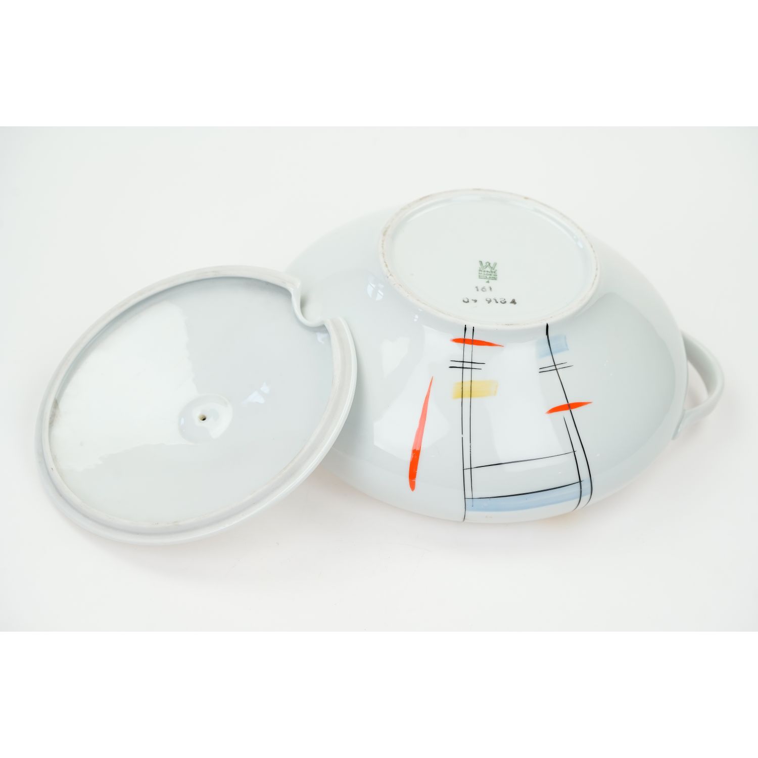 Pochodzi z Wałbrzycha z serwisu Julita, wykonanego według projektu Edwarda Ruszczyńskiego z 1957 roku. Zakłady Porcelany „Wawel”, sygnowany: „Wawel | MADE IN | POLAND | Ręcznie malowane”. Porcelana w odcieniu bieli z naszkliwną zgeometryzowaną, abstrakcyjną malaturą w w typie malarstwa Joan Miro. Zdobienia najprawdopodobniej autorstwa Czesława Pszczółkowskiego.