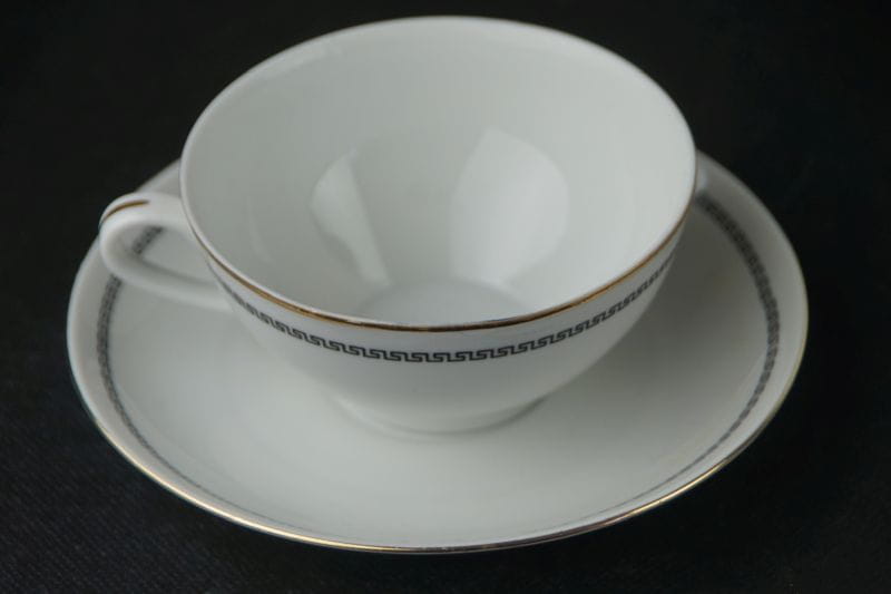 WAWEL KLASYCZNA ELEGANCKA FILIŻANKA ZE SPODKIEM Z WZOREM W MEANDRY