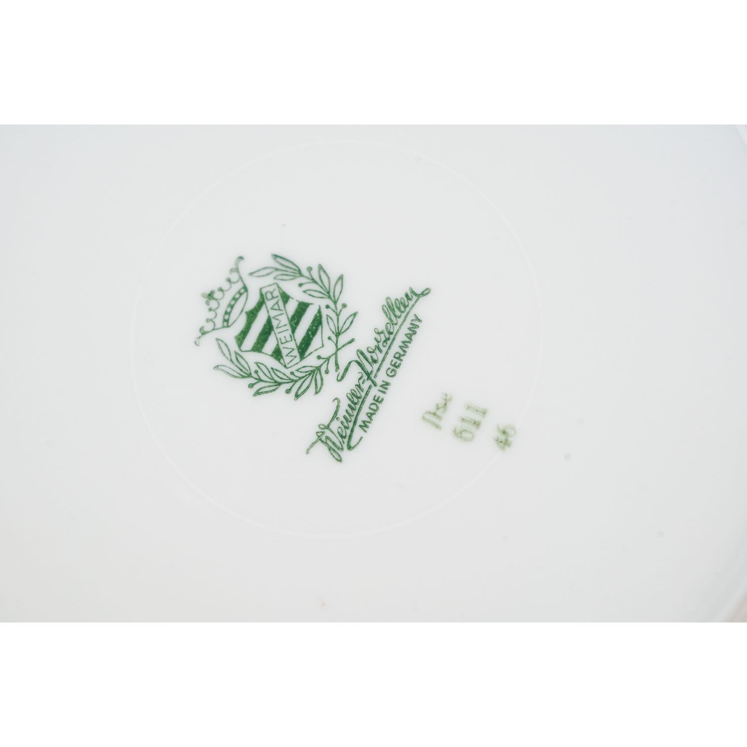 Pochodzi z Blankenhain, VEB Weimar Porzellan, sygnowana znakiem stosowanym od 1933 roku do 1945 roku. Fason Jlse/Ilse.