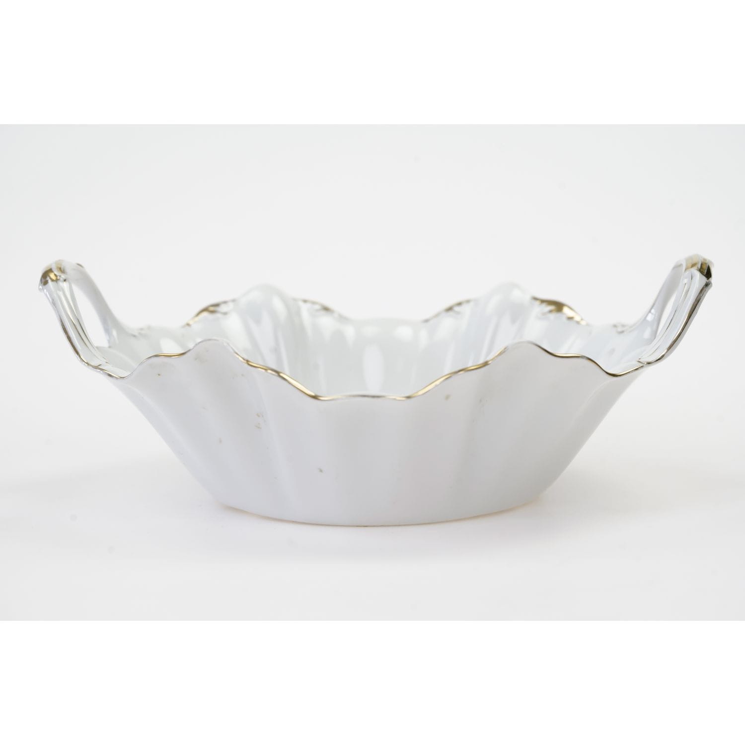 Piękna misa, głębsza patera z uszami i bukietem owoców.