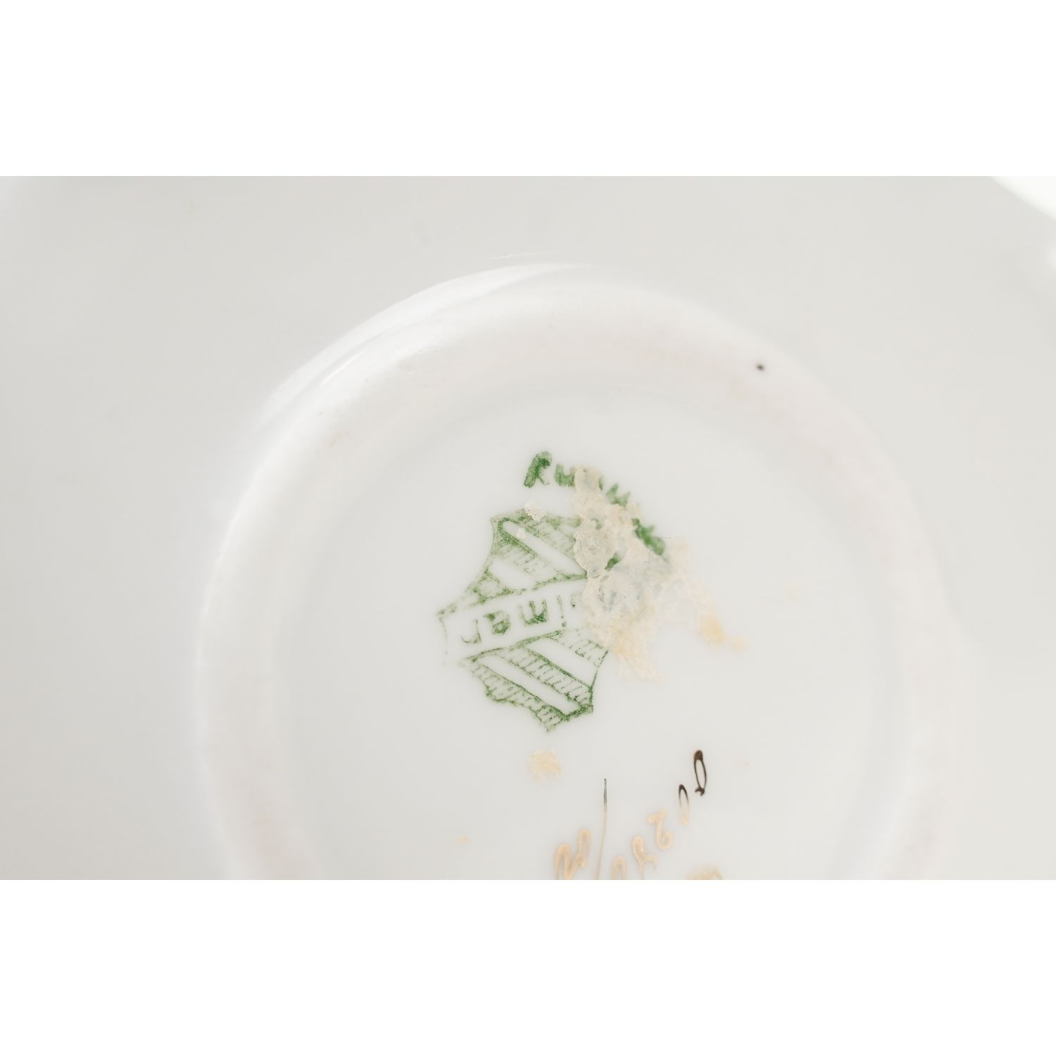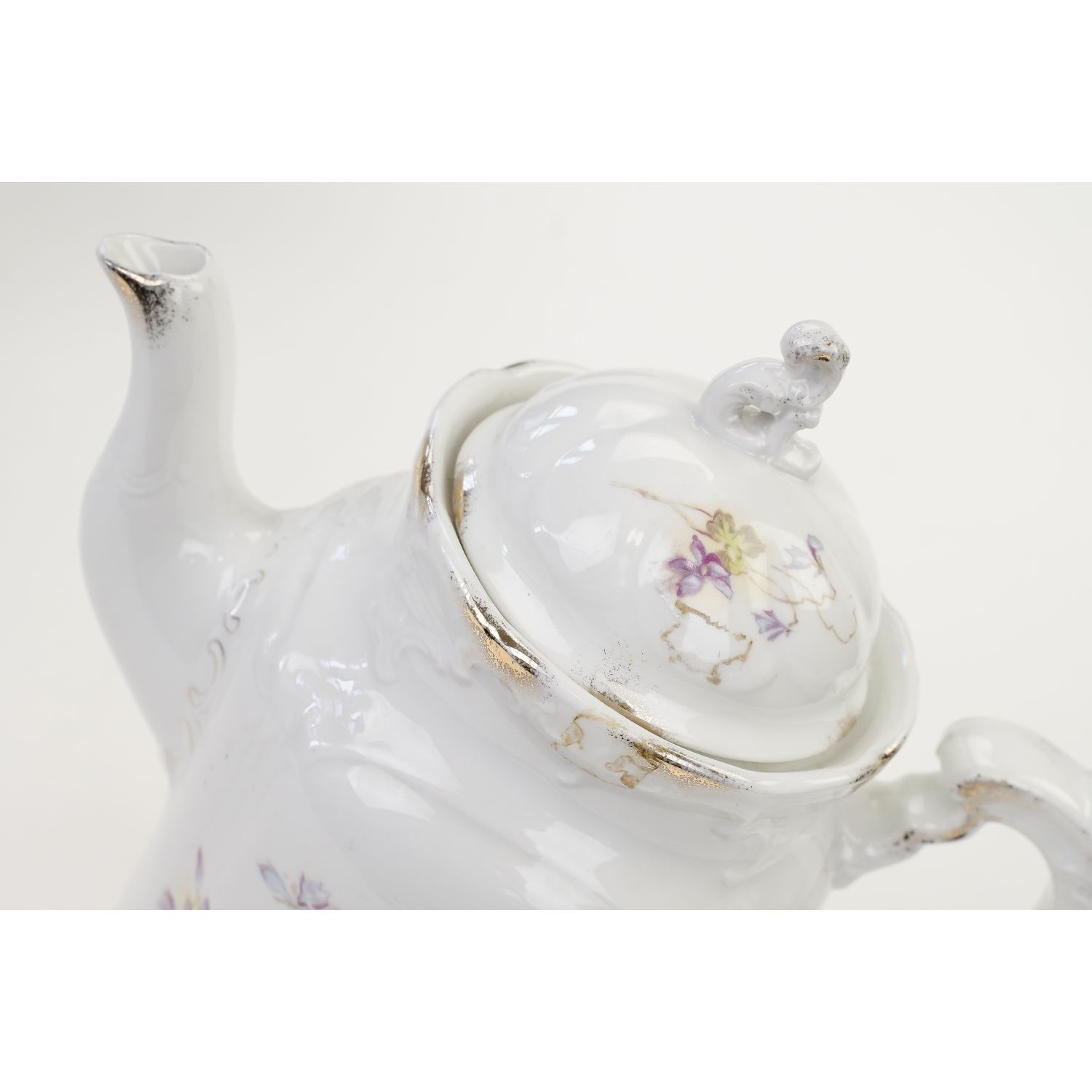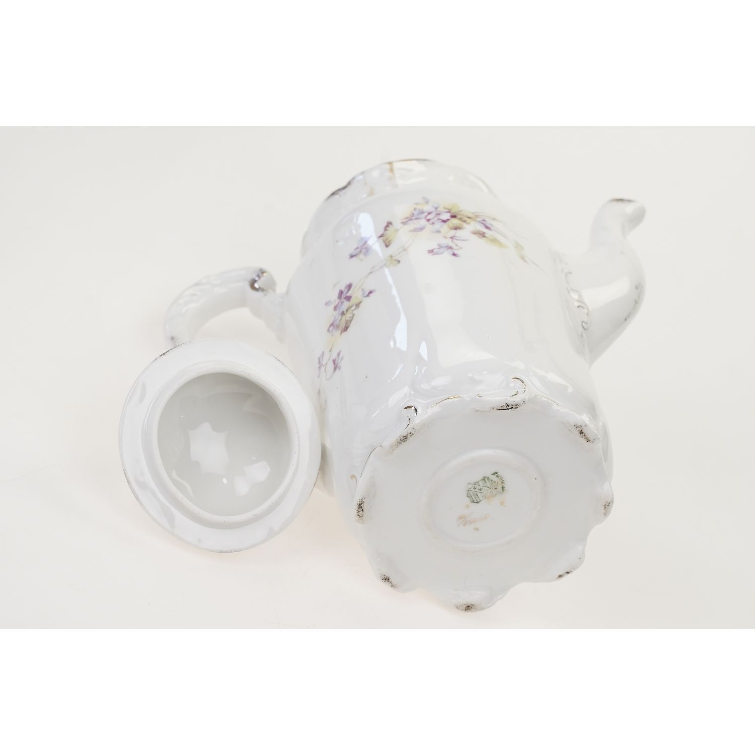 Wyrób oryginalny, secesyjny. Pochodzi z Blankenhain z Porzellanfabrik Fasolt & Eichel / później: Eduard Eichler później Duxer Porzellan Manufaktur vorm. Eduard Eichler. Sygnowana znakiem stosowanym od 1848 do 1933 roku. Do tego odręczny znak dekoratora. Porcelana w odcieniu bieli zdobiona przepięknymi reliefami w stylu epoki o motywie roślinnym. Na brzuścu dekoracje przedstawiające zachwycające, fiołeczki. Urocza forma, perfekcyjne wymodelowane ucho i sterczynka w kształcie płomienia. Krawędzie i kontury oprószone złotem.
