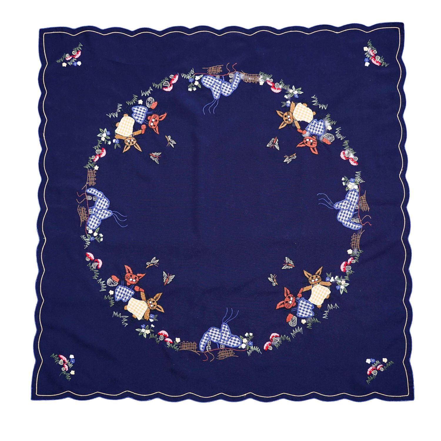 WIELKANOC GRANATOWY OBRUS Z BARWNYMI DEKORACJAMI 85 X 85 CM