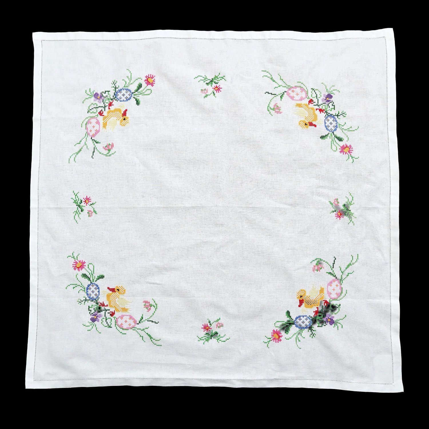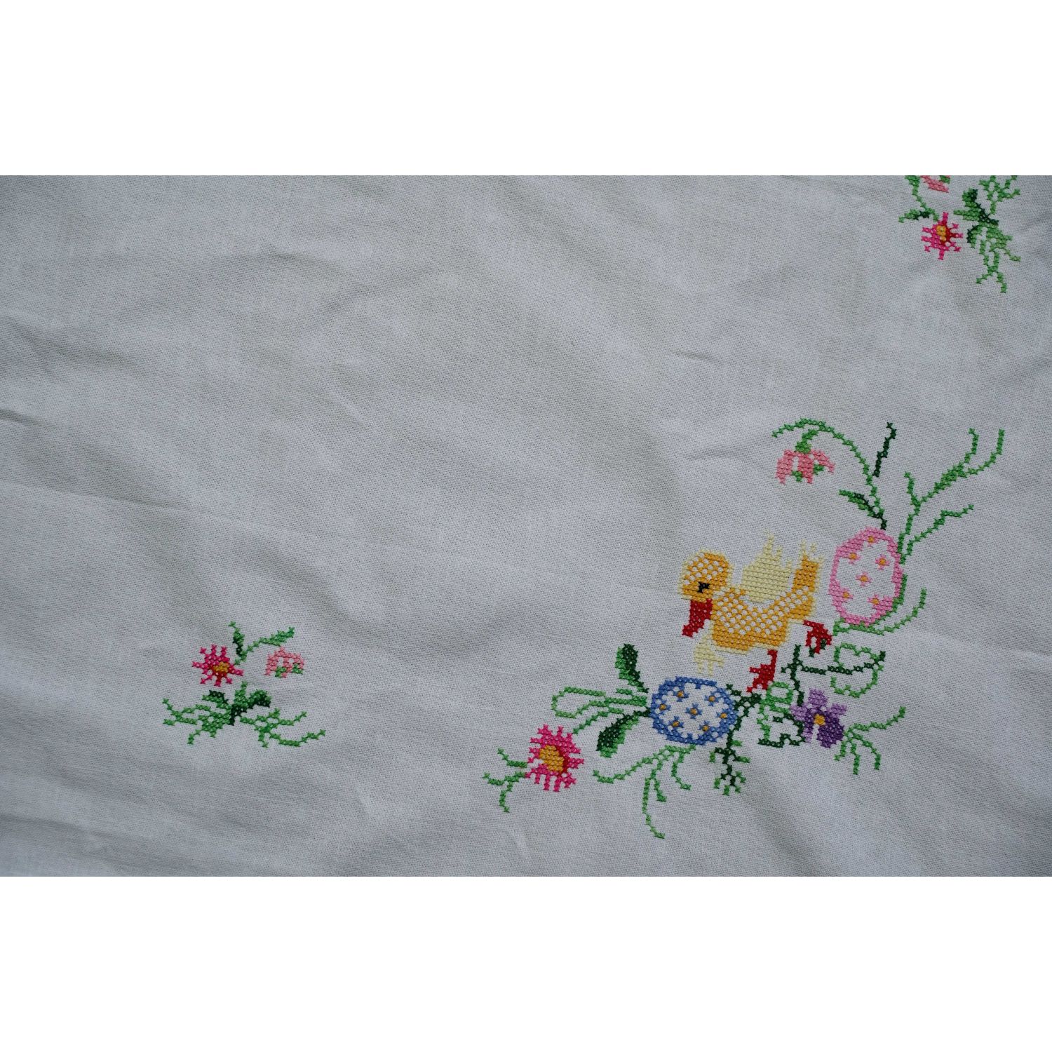 WIELKANOC HAFT KRZYŻYKOWY PISKLAKI JAJKA I KWIATY 80 X 80 CM