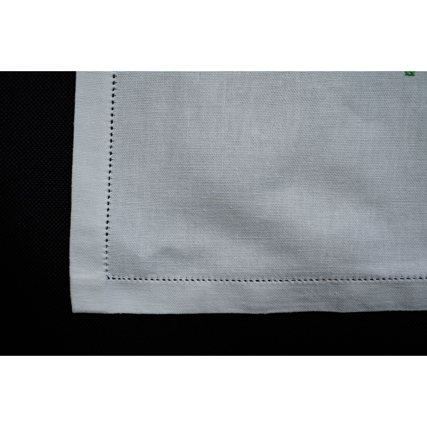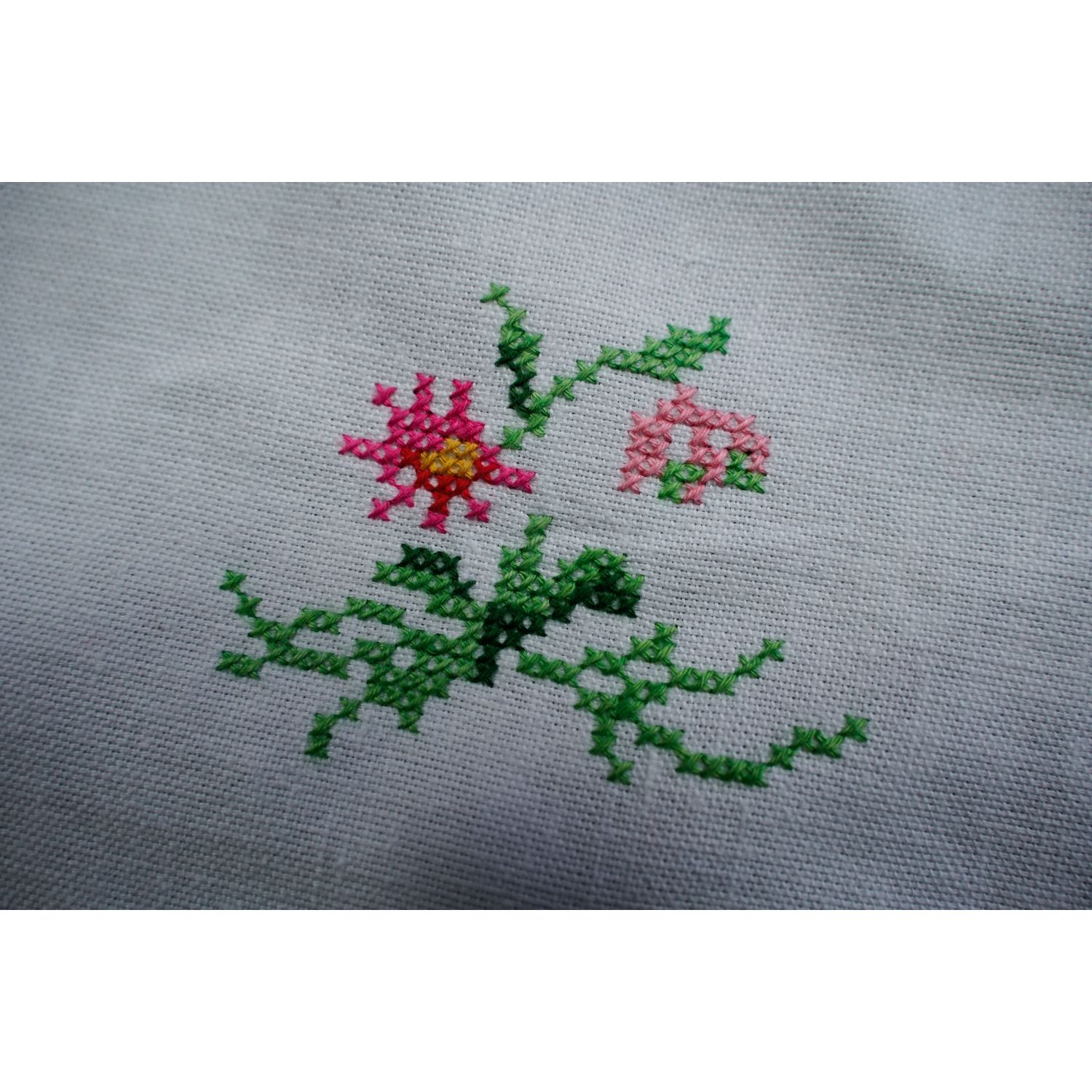 Wykonana z dość grubej, białej, bawełnianej tkaniny. Na niej haft krzyżykowy przedstawiający pisklaki, kwiatki i pisanki.