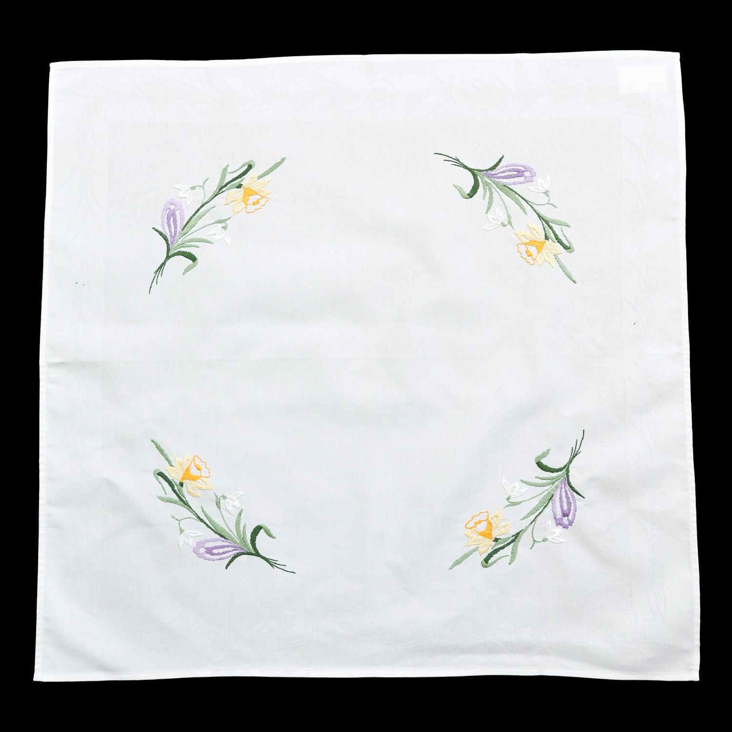 WIELKANOC WIOSENNY OBRUS RĘCZNIE WYSZYWANE KWIATY 80 X 80 CM