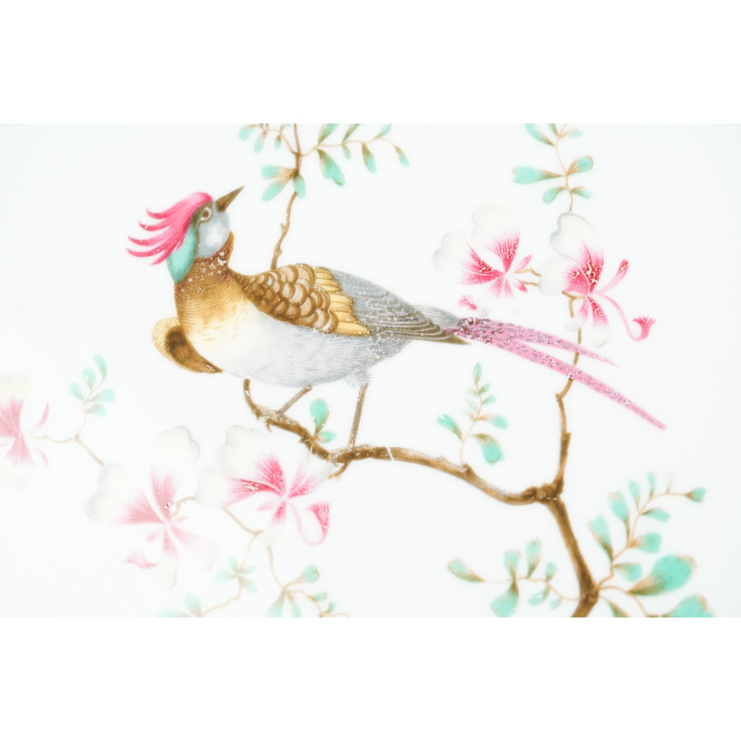 Pochodzi z wytwórni porcelany Porzellanfabrik Retsch GmbH & Co. KG Z Wunsiedel. Sygnowana znakiem stosowanym od 1953 roku. Jest wykonana z najwyższej jakości, ekskluzywnej, grubo szkliwionej, lśniącej porcelany w kolorze złamanej bieli o pięknej, miękkiej linii. Kontury obwiedzione są złotem. Dekorowana kwitnącymi gałązkami w stylu orientalnym i rajskim ptakiem.