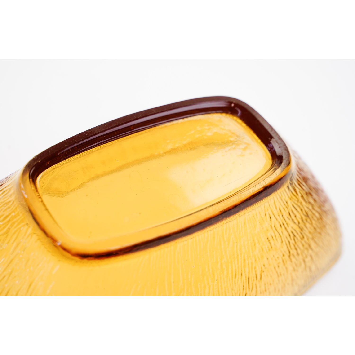 Pochodzi z huty szkła z Ząbkowic, wykonana według projektu Pani Eryki Trzewik-Drost z lat 70-tych. Potocznie przez kolekcjonerów wzór zdobiący naczynie nazywany "Futerkiem". Szkło prasowane, barwione w masie na odcień miodowy. Podstawa podszlifowana.