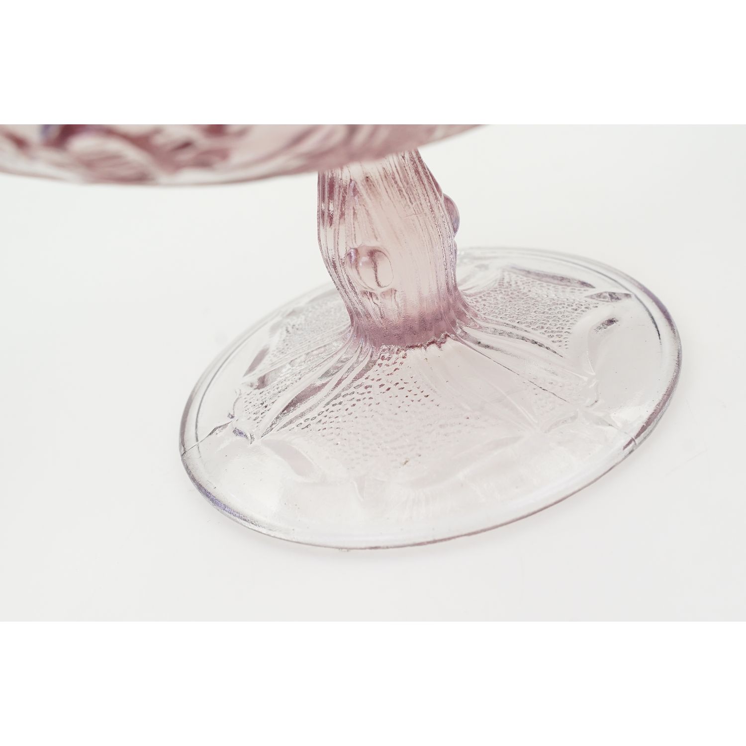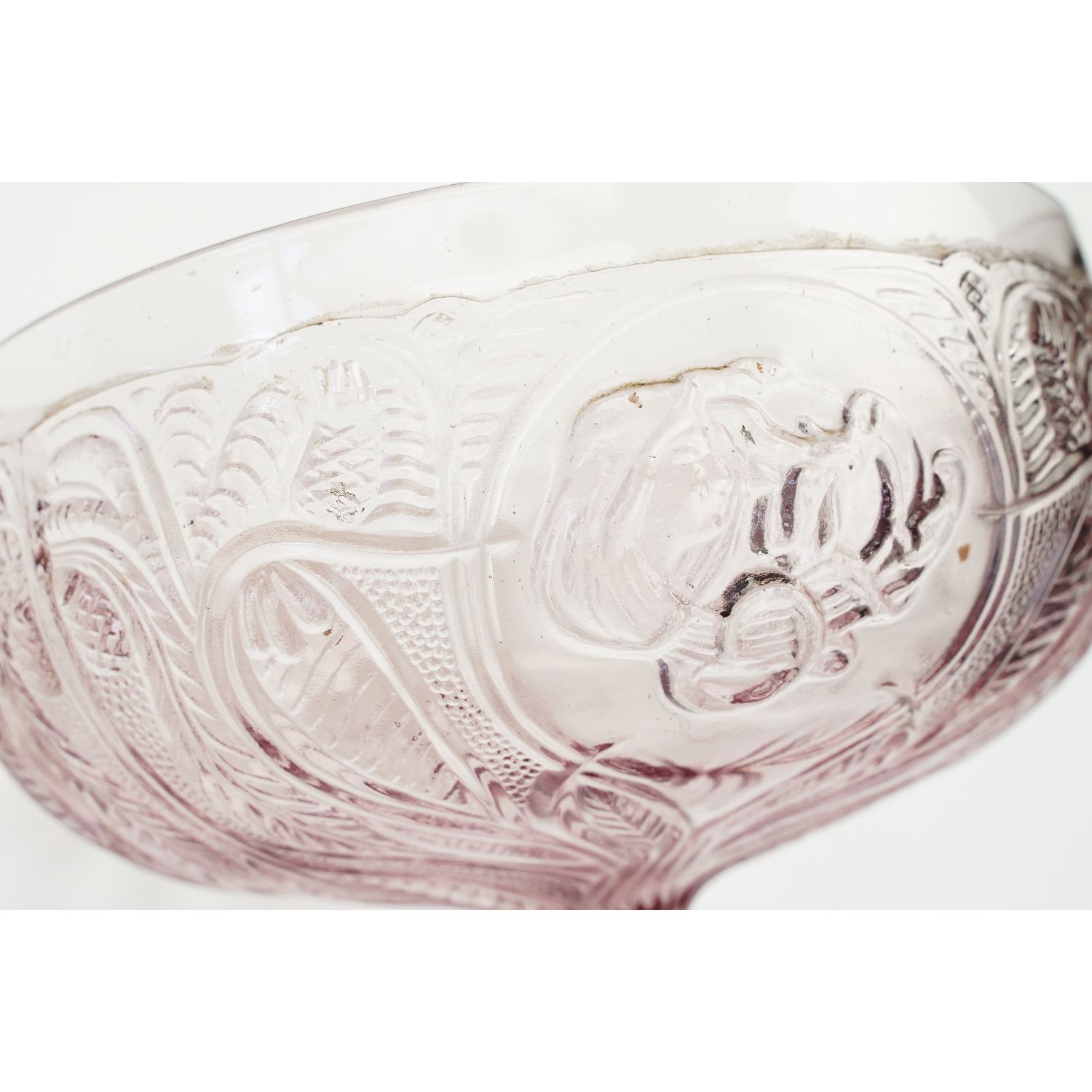 Pochodzi z huty szkła Ząbkowice. Wykonana według projektu Jana Sylwestra Drosta. Inspirowana stylem secesyjnym. Czaszę zdobią medaliony z tworzą kobiety, a wokół wijące się gałązki. Dekoracje przywodzą na myśl dzieła Alfonsa Muchy. Tłoczenia bardzo bogate, również stopa i nóżka są nimi pokryte. Szkoda, że moje zdjęcia nie oddają urody tego szkiełka.