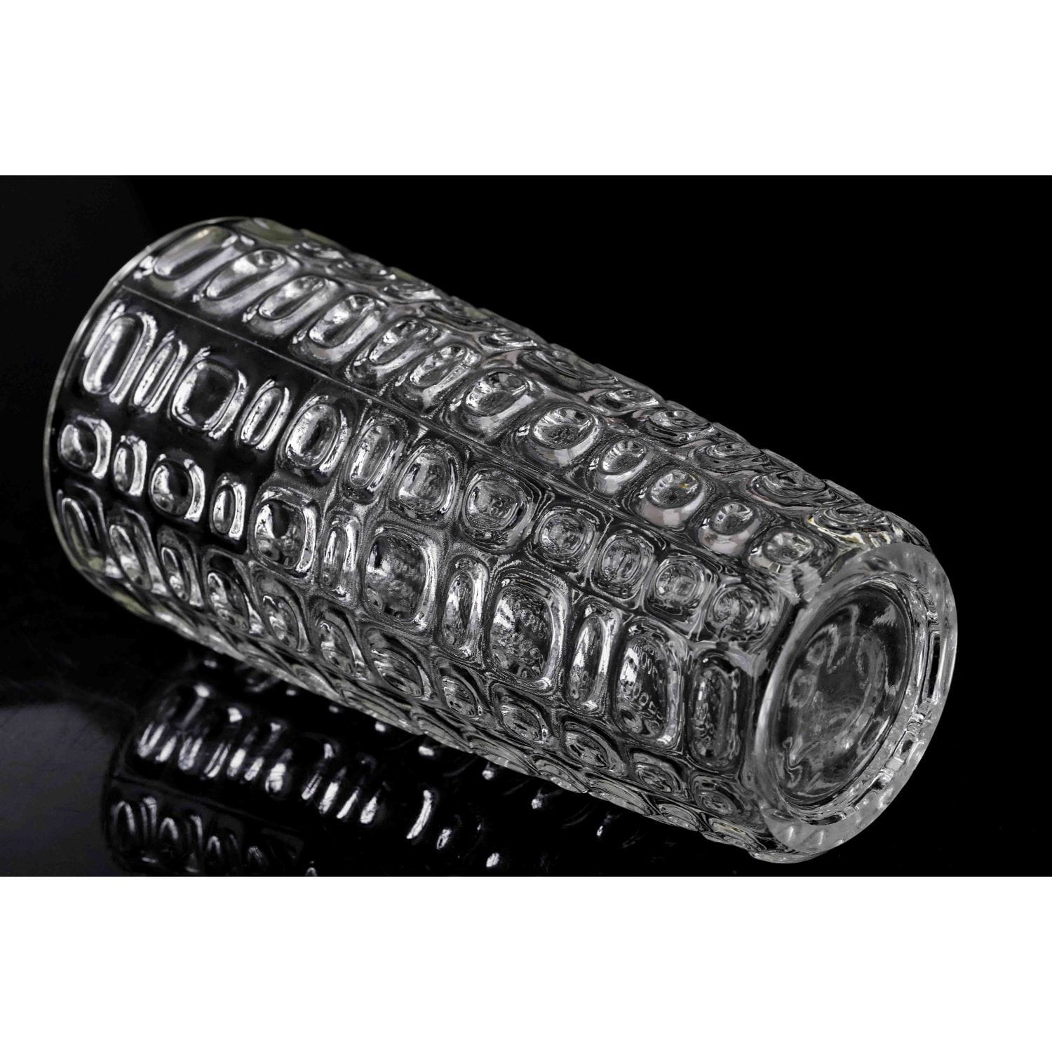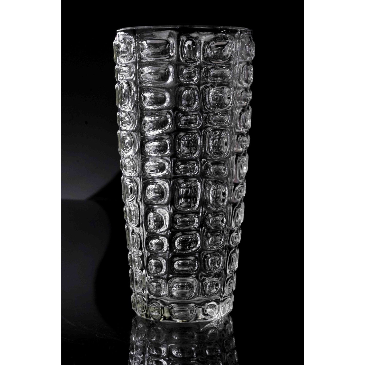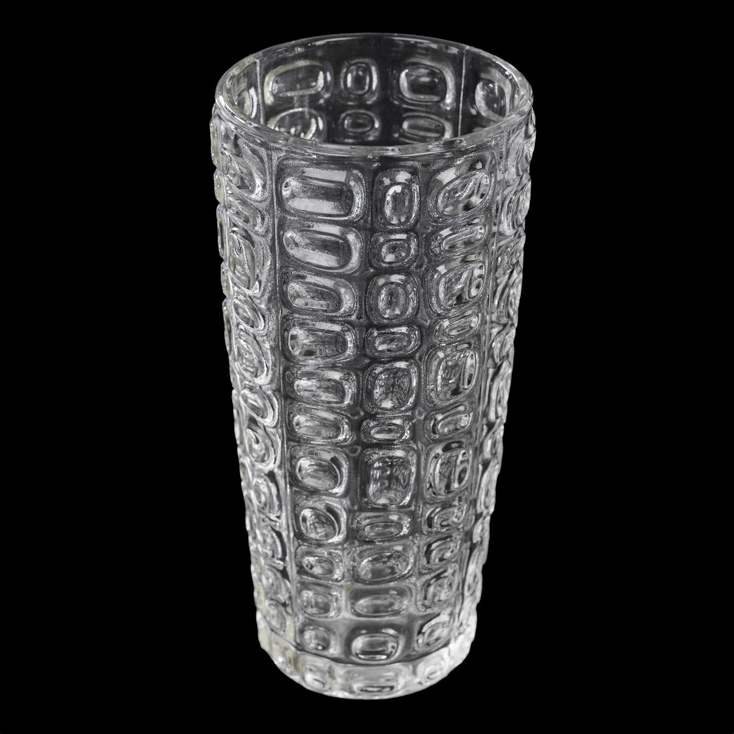Pochodzi z huty szkła Ząbkowice, w katalogu z 1971 roku ten model nosi nazwę Wulkan. Wykonany według projektu Pana Jana Sylwestra Drosta. Szkło prasowane, bezbarwne. Forma prosta, dekorowana tłoczeniami w nieregularną kostkę.
