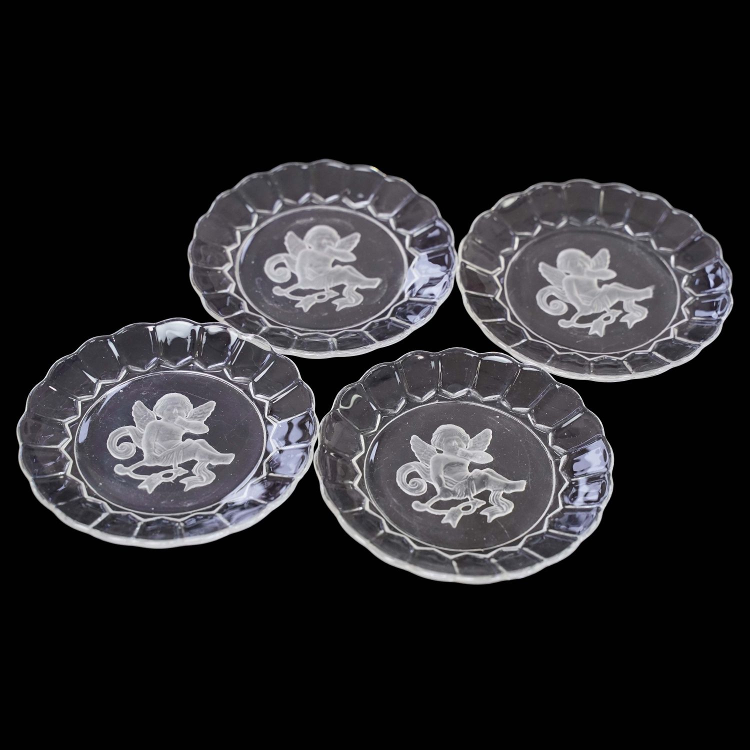 Niesamowity komplet czterech talerzyków z kupidynami.