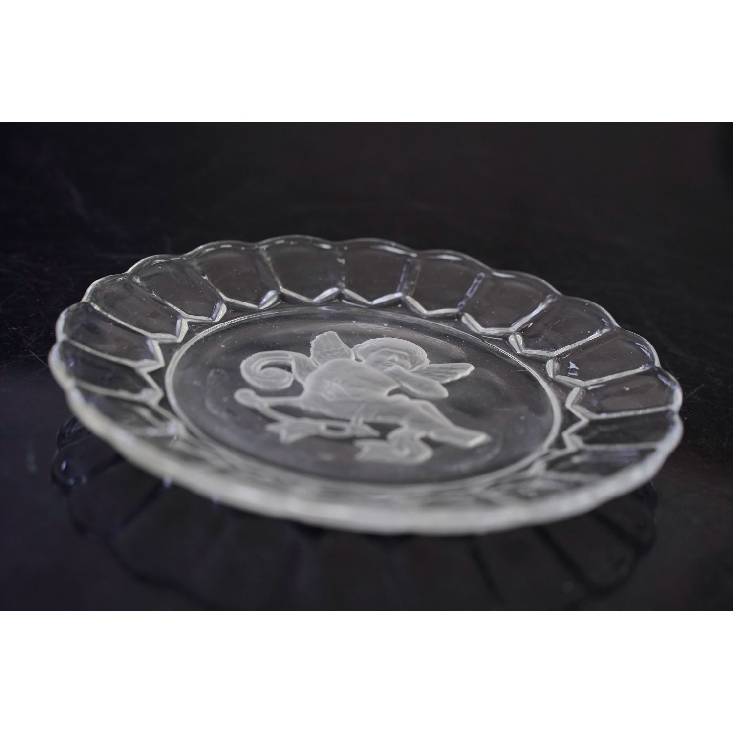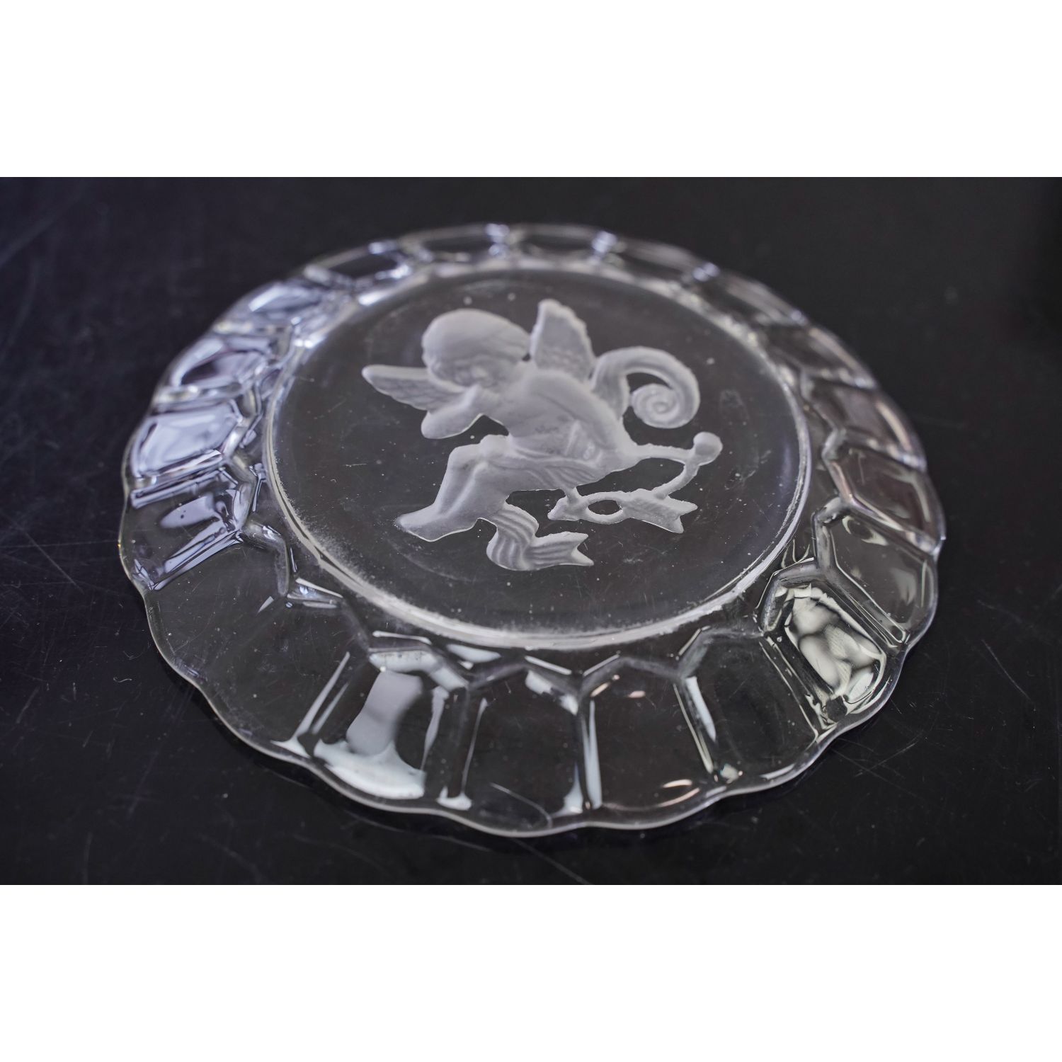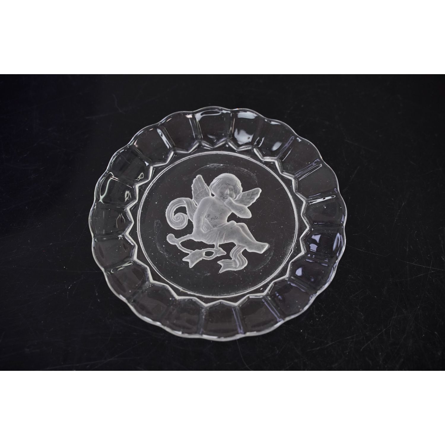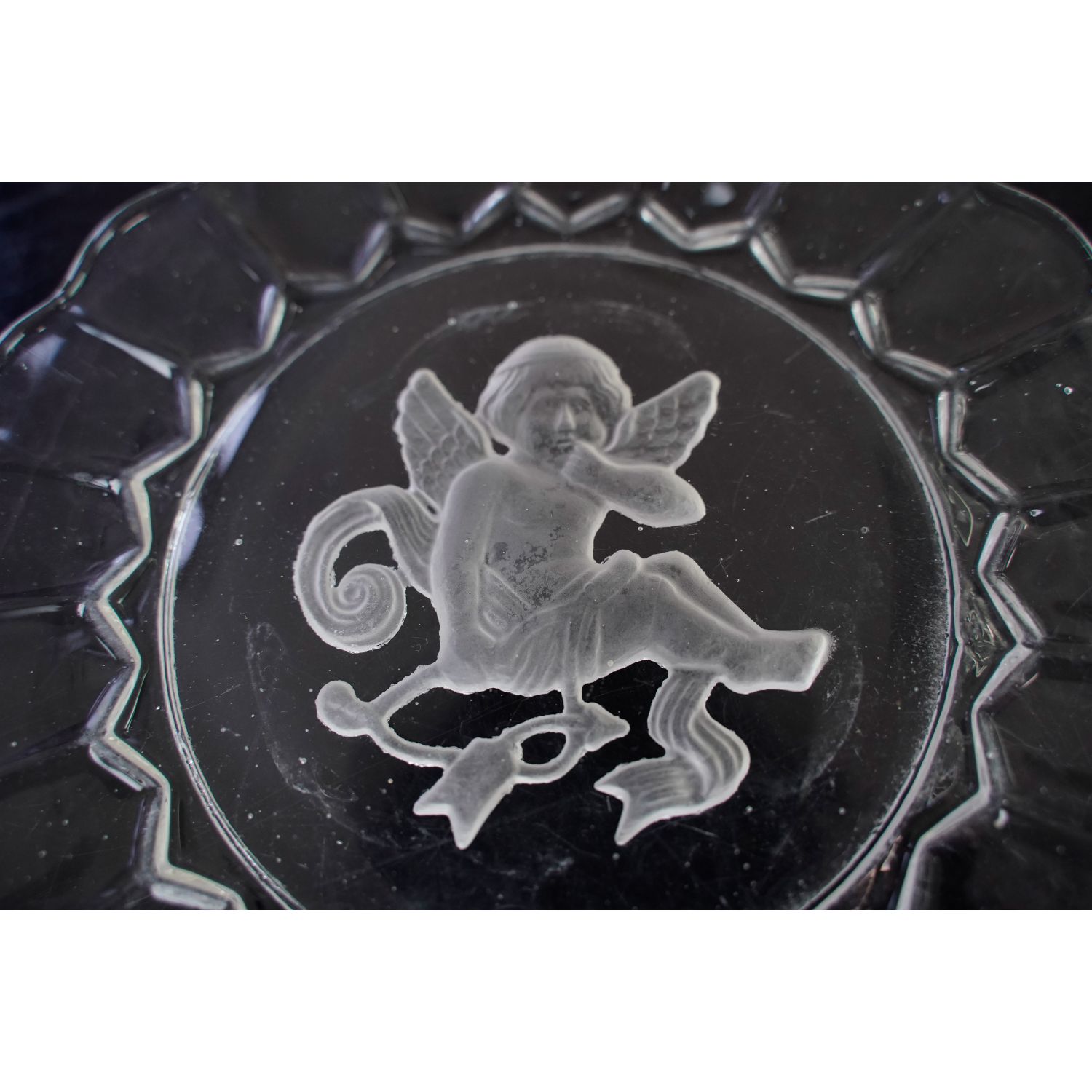 Szkło bezbarwne, na dnie piękny wytłoczony, matowy rysunek skrzydlatego amorka z łukiem. Historia tego modelu jest bardzo ciekawa. Długo pochodzenie naczyń z tym wzorem było nieznane. Dopiero wieloletnie badania Państwa Glen & Steve Thistlewood, autorów książek o szkle karnawałowym, między innymi "A Century of Carnival Glass", na okładce której widzimy wzór z Dianą, dowiedli, że Fason przedstawiający Dianę był wzorem z Ząbkowic i był jednym z elementów serwisu. Do niego pasują idealnie talerzyki i miseczki z kupidynami, amorkami ze strzałami, które miały towarzyszyć Dianie na polowaniu...
