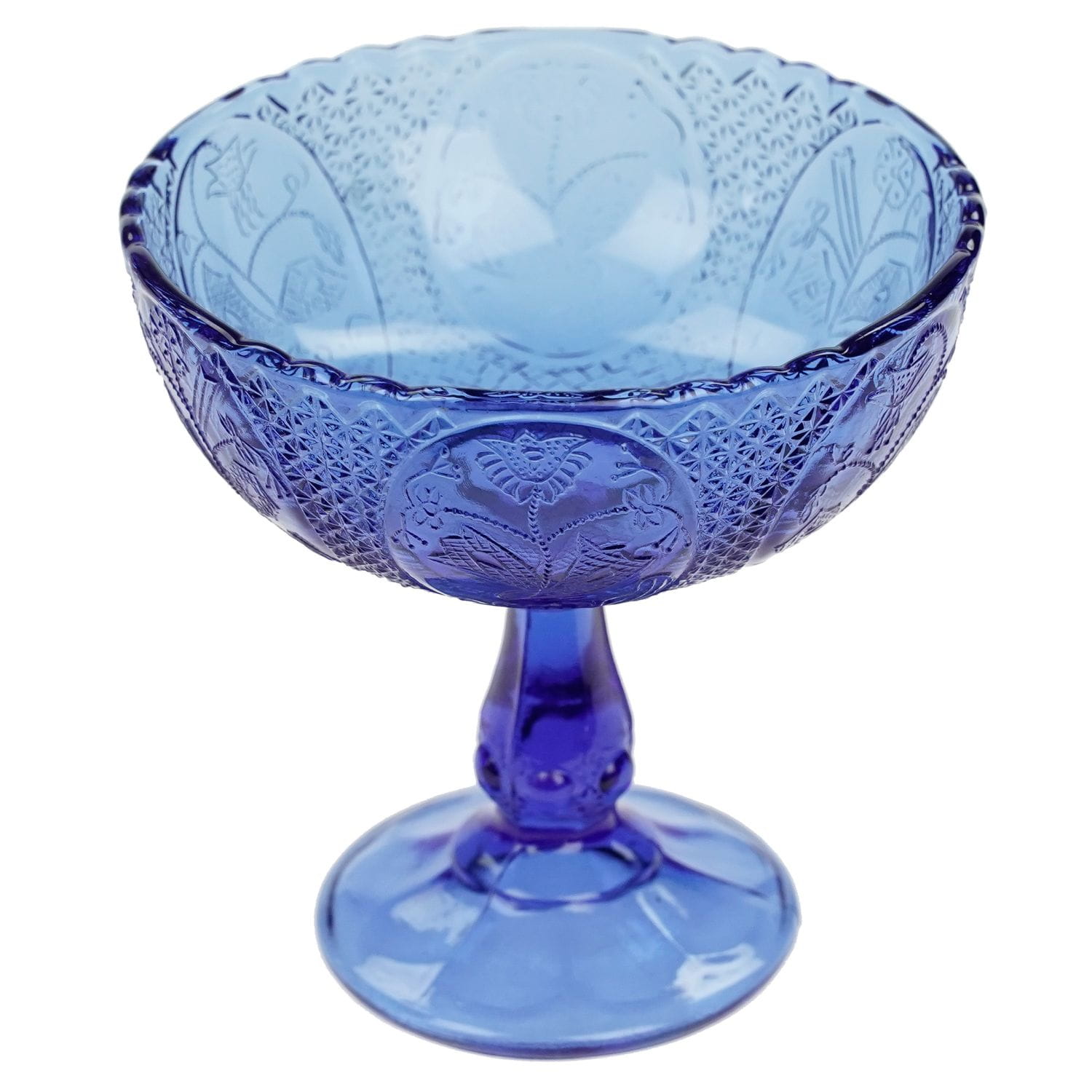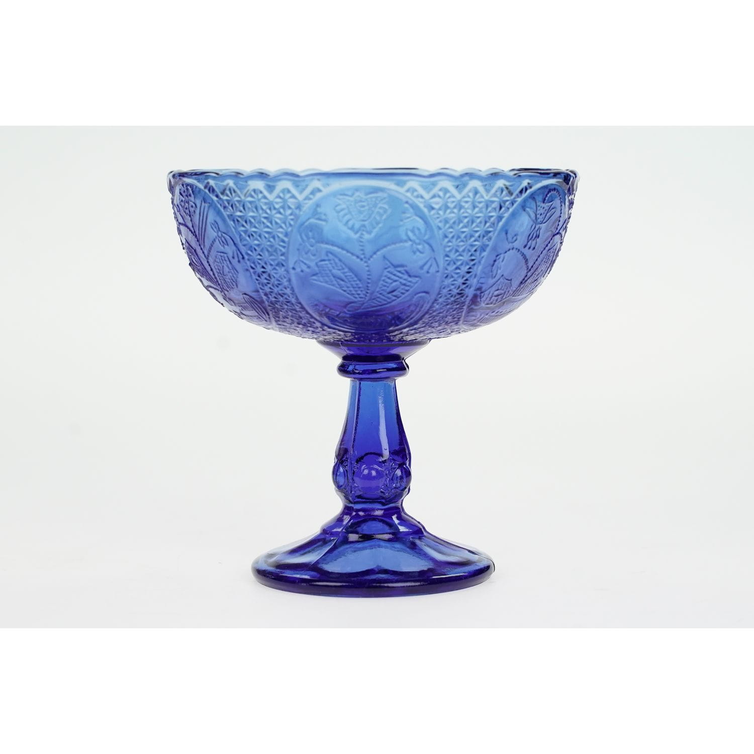 ZĄBKOWICE SECESYJNY PUCHAREK W MEDALIONY CUKIERNICA NA NODZE W KOBALTOWYM KOLORZE