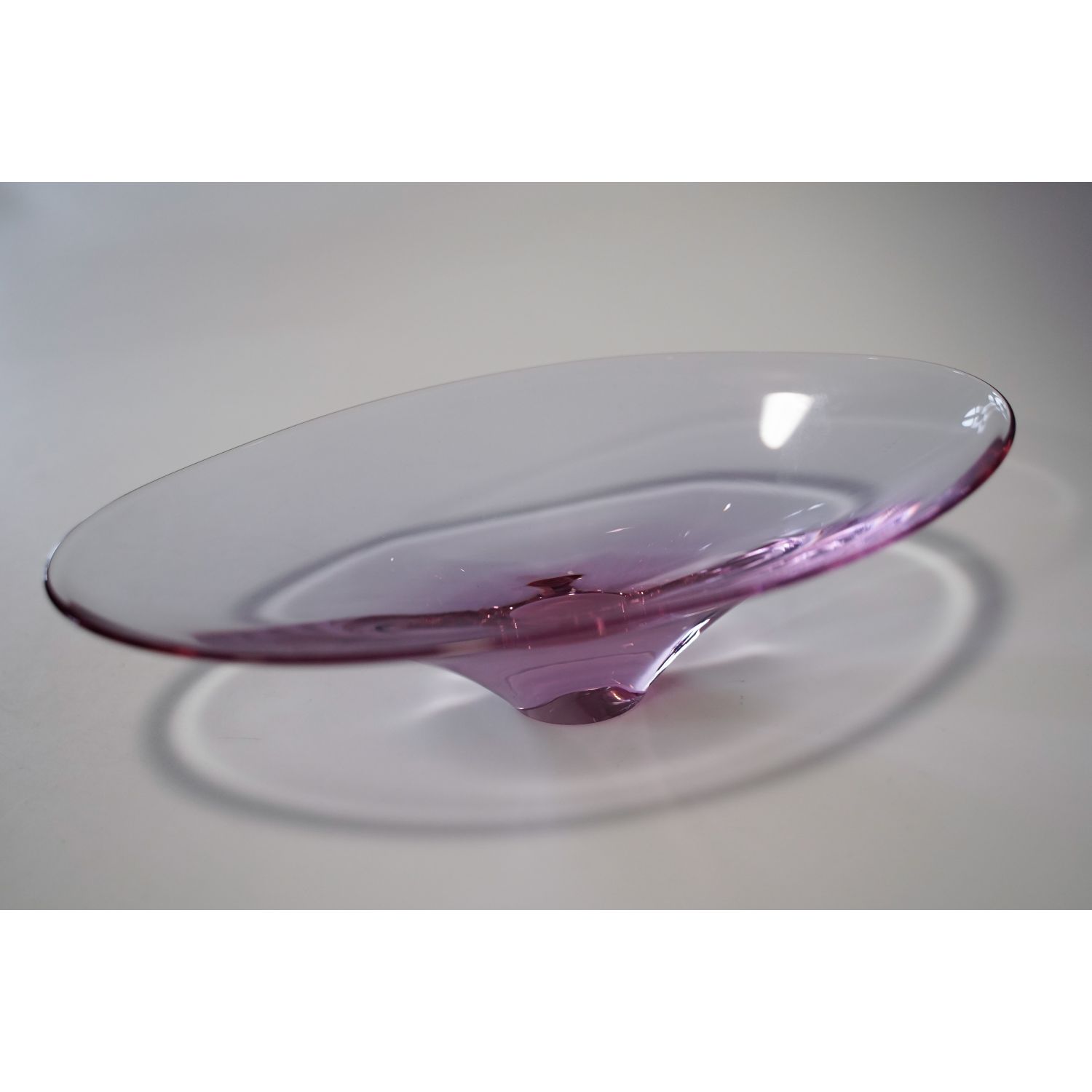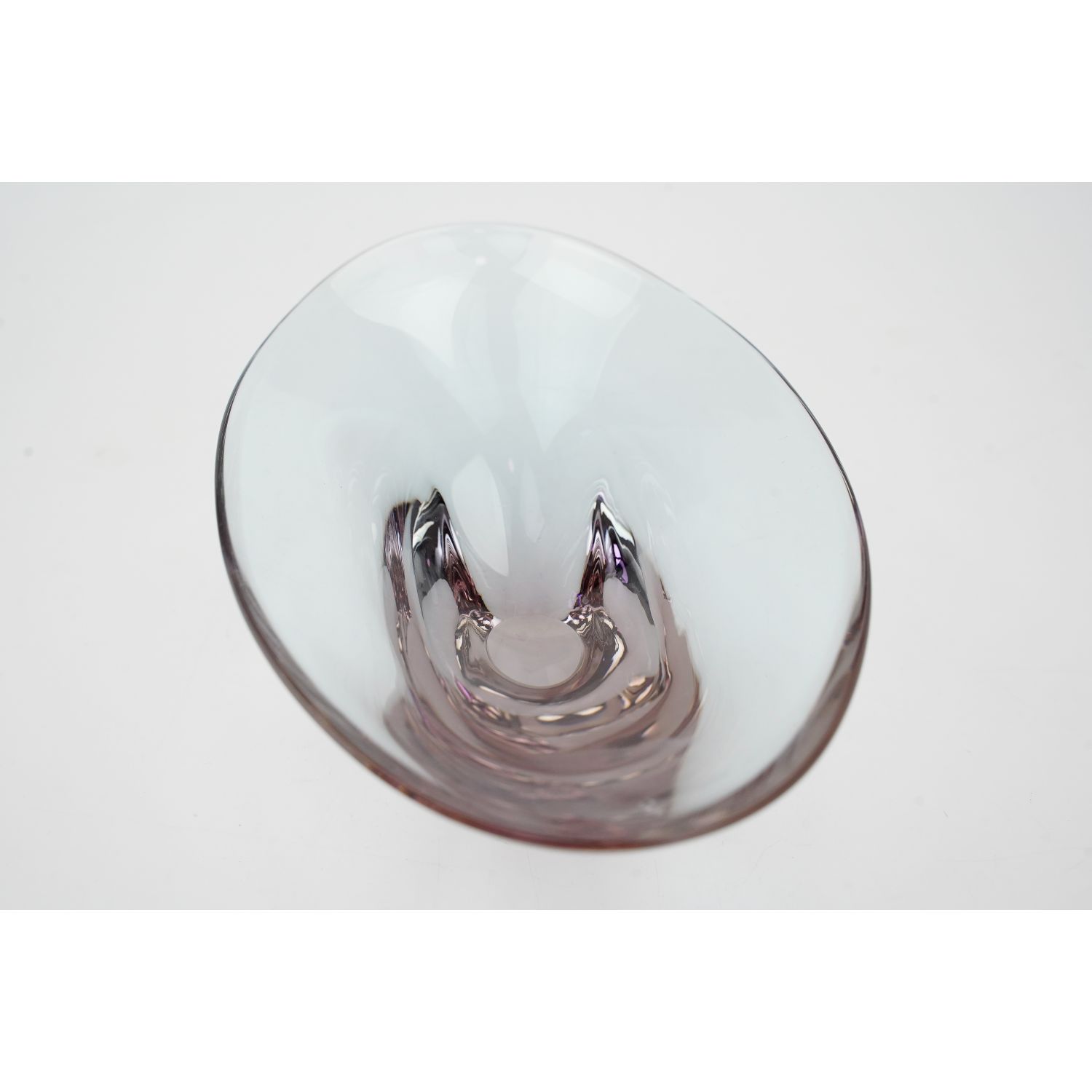 Pochodzi z Železnego Brodu (ZBS), prawdopodobnie zaprojektowany przez Miloslava Klingera w latach 60-tych XX wieku. Szkło niebieskie/liliowe neodymowe/aleksandrytowe. Spód szlifowany. Oryginalny, organiczny kształt i zmieniająca się barwa szkła w zależności od rodzaju światła i temperatury (od błękitu, po wrzosowy odcień).