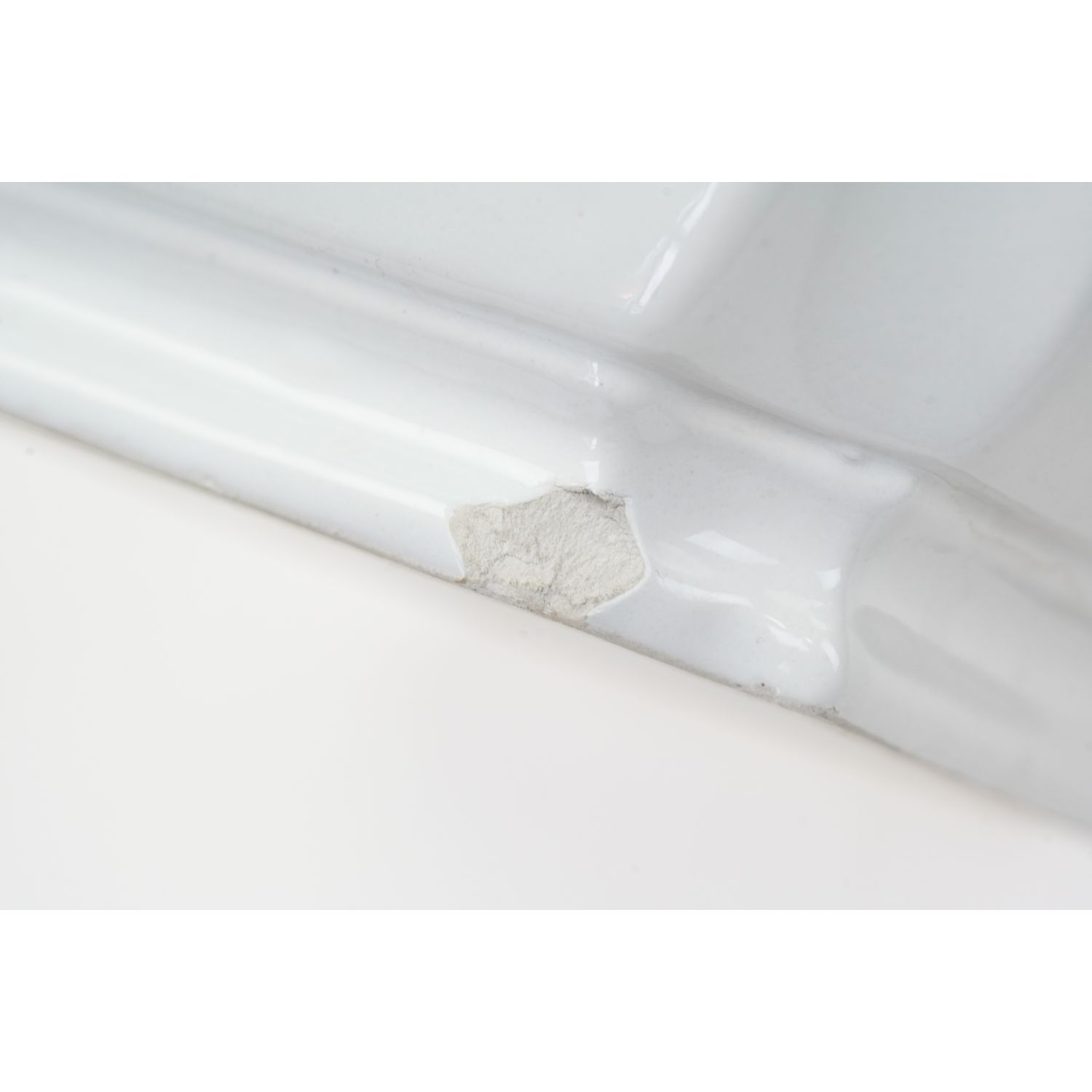 Stan zaledwie dobry-, na dolnym narożniku przy podstawie spory ubytek.